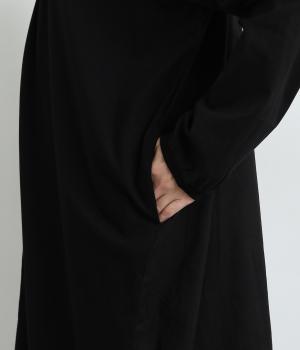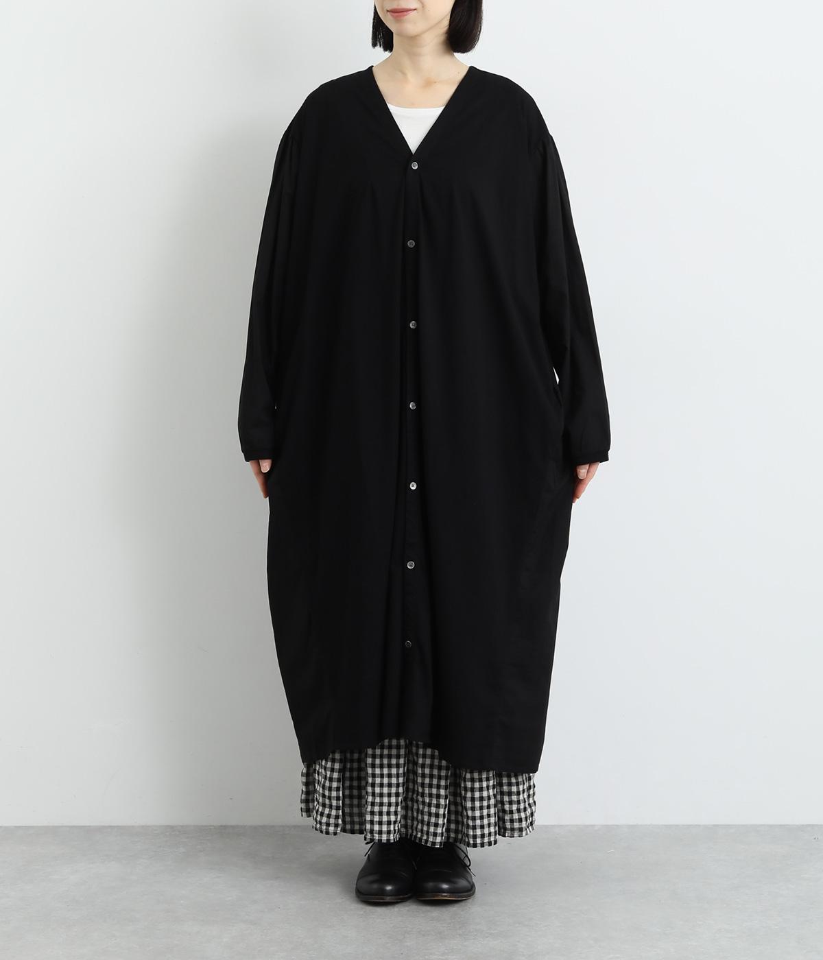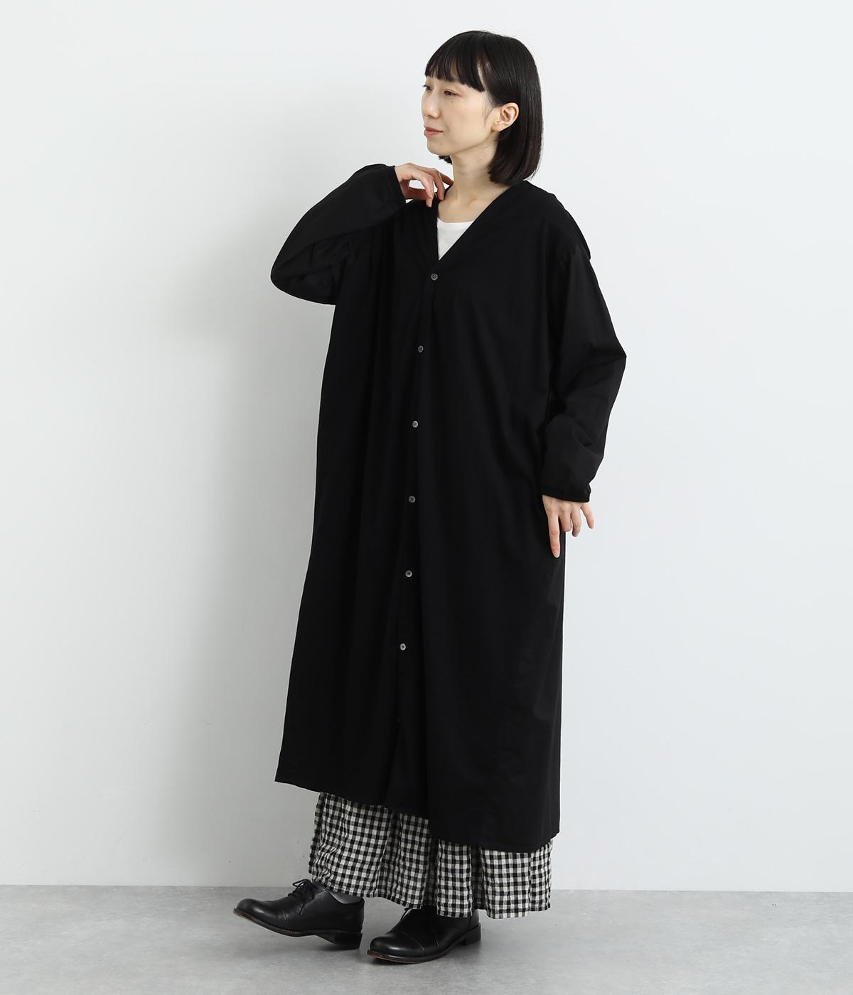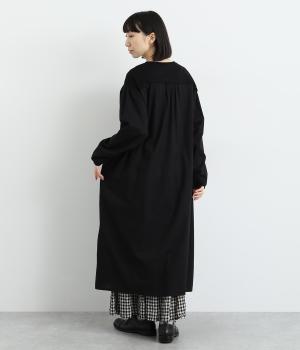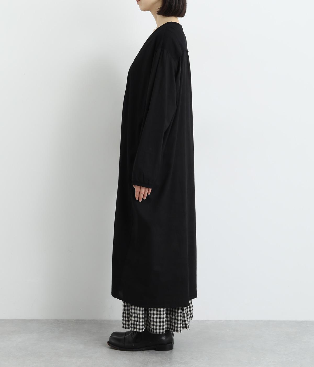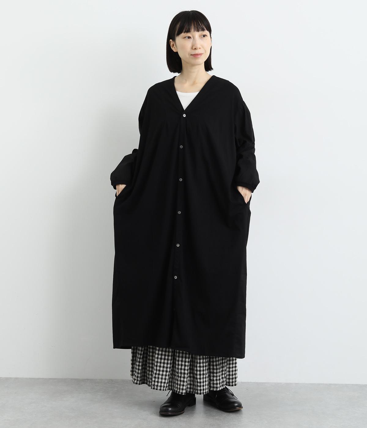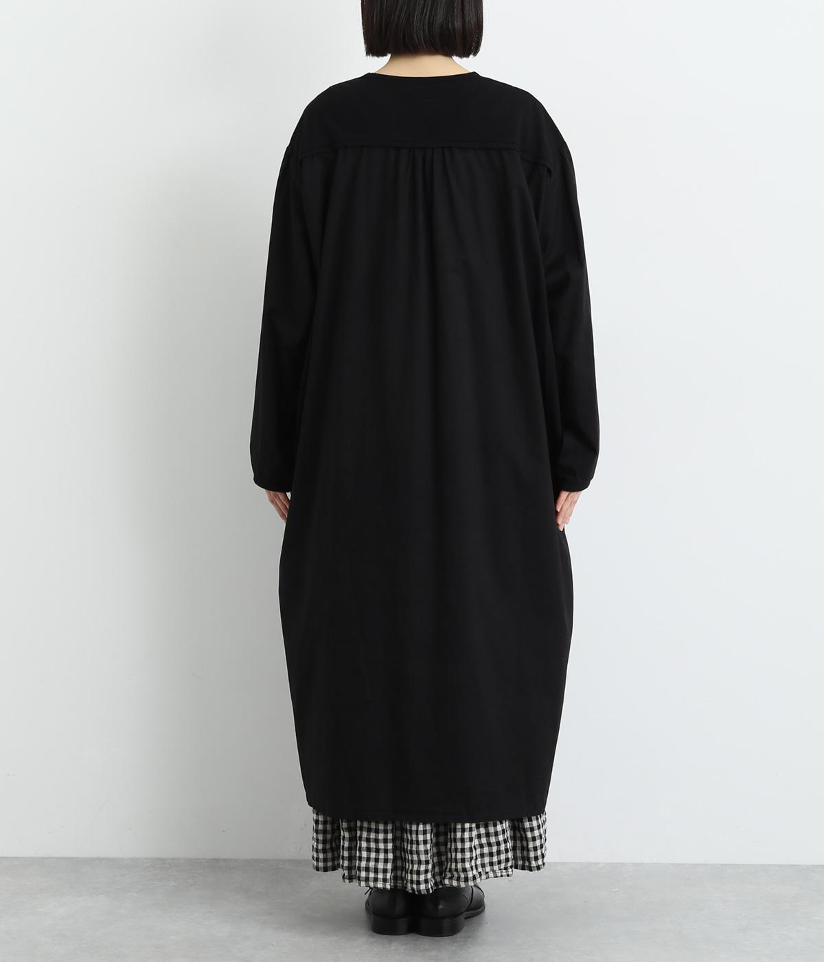 ジャージーと布帛生地をドッキングさせた技ありデザインのワンピース。同系色でまとめ、異素材使いをさりげなくたのしめるのが魅力です。体が泳ぐゆとりのあるシルエットでリラックスした着心地に。羽織りとしてもワンピースとしてもサマ見えし、おしゃれの幅が広がります。