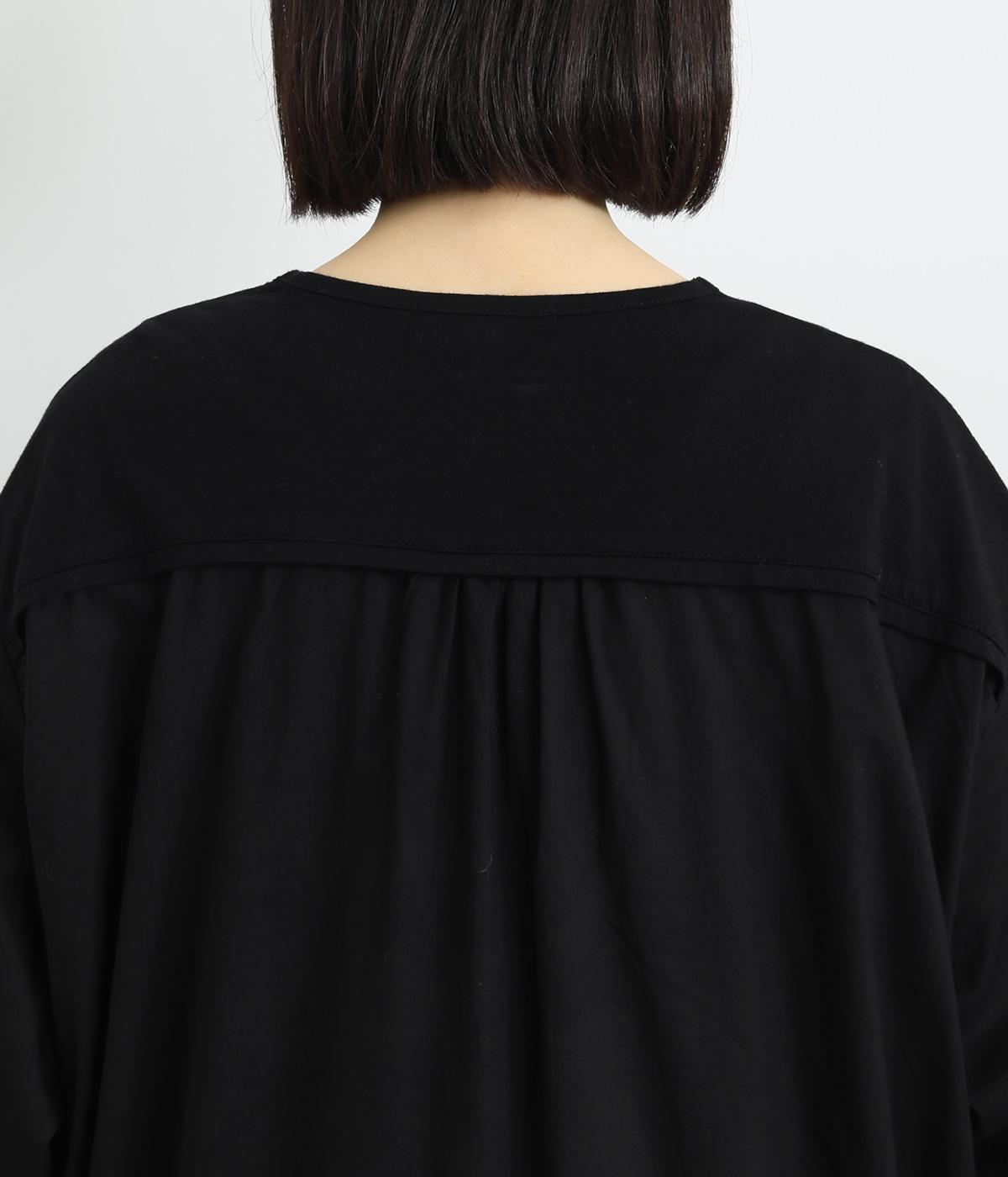 しっとりと柔らかく肌に心地よくなじむ薄手のコットン天竺生地。袖や後ろヨーク下にさらりとしたソフトな質感のローン生地を組み合わせ、表情豊かに仕上げました。