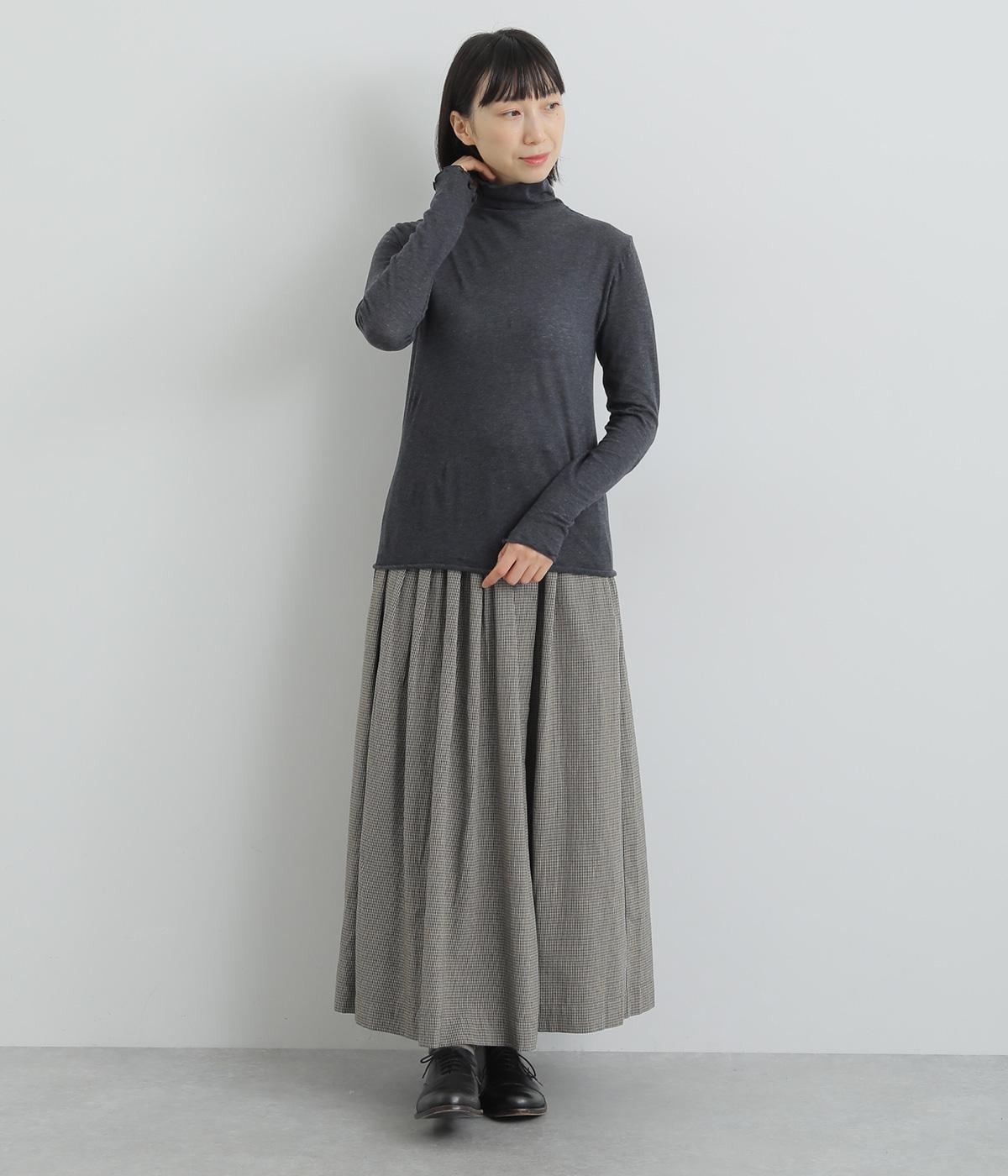 レイヤードスタイルにぴったりな薄手のタートルネックプルオーバー。とても伸びのよい生地が体に心地よくフィットします。自然にクシュっとさせたネックでお洒落な印象に。さりげなくフェミニンなムードを添える波打つような縁取りもポイントです。