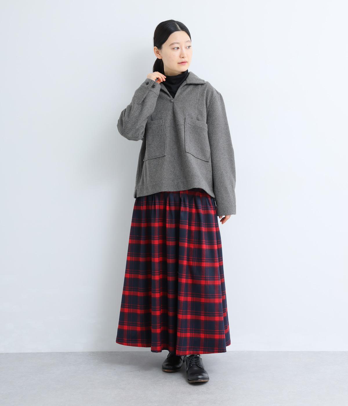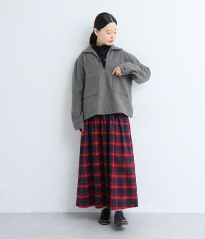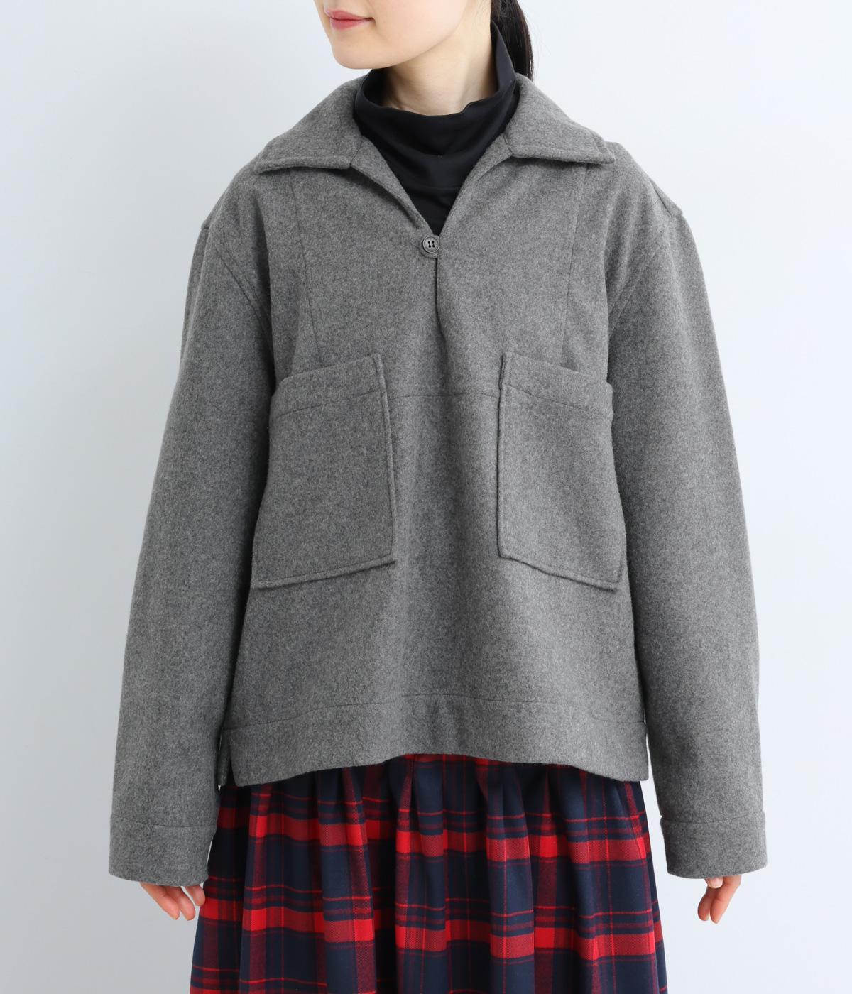 フロントの大きなポケットがクラシカルな印象を与えるプルオーバー。抜け感のあるスキッパーカラーが顔まわりをすっきりと見せ、インナーとのレイヤードもサマ見えします。袖口はボタンによって開き具合を調整可能です。