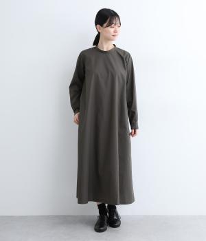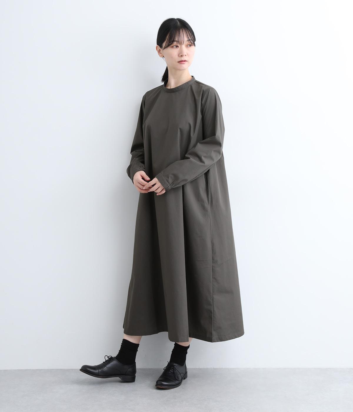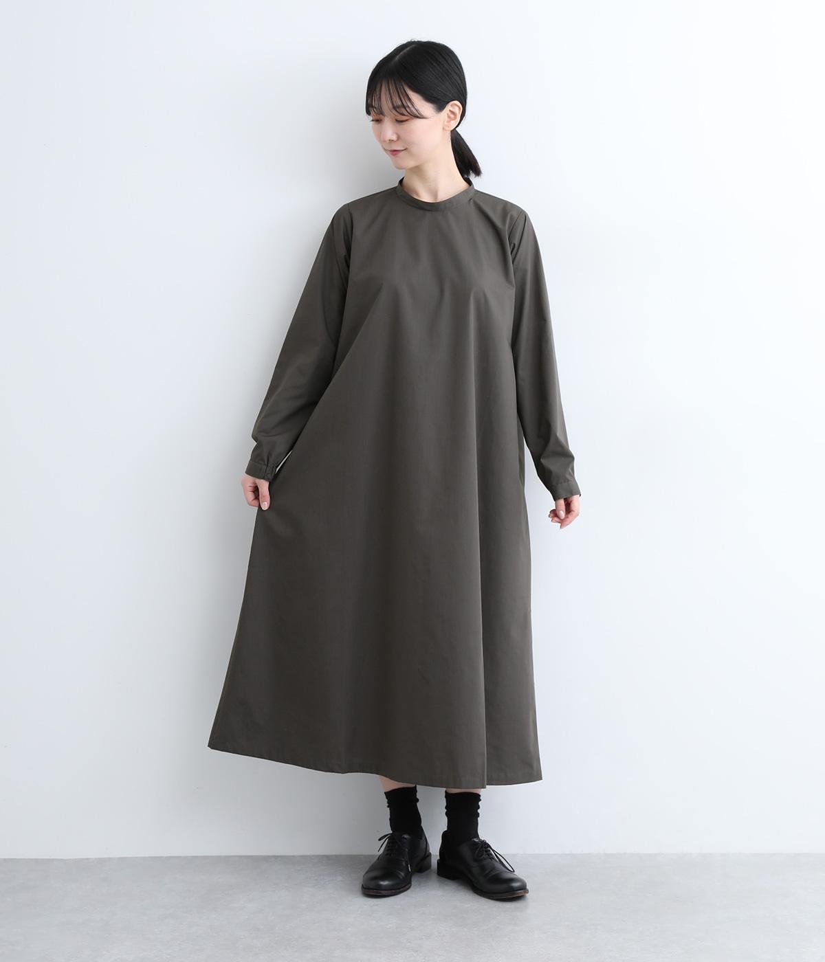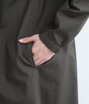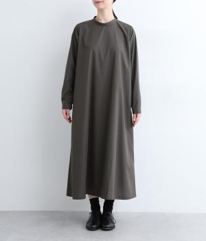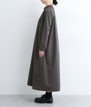 裾に向かって広がるフレア感を出しつつすっきりとした印象に仕上げたテントワンピースです。顔まわりはスタンドカラーで品よくまとめ、後ろ涙開きで着脱をアシスト。袖口は部分的にゴムを入れているのでたくし上げのアレンジもたのしめます。