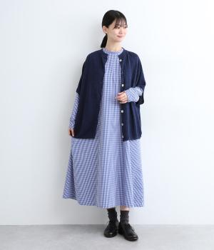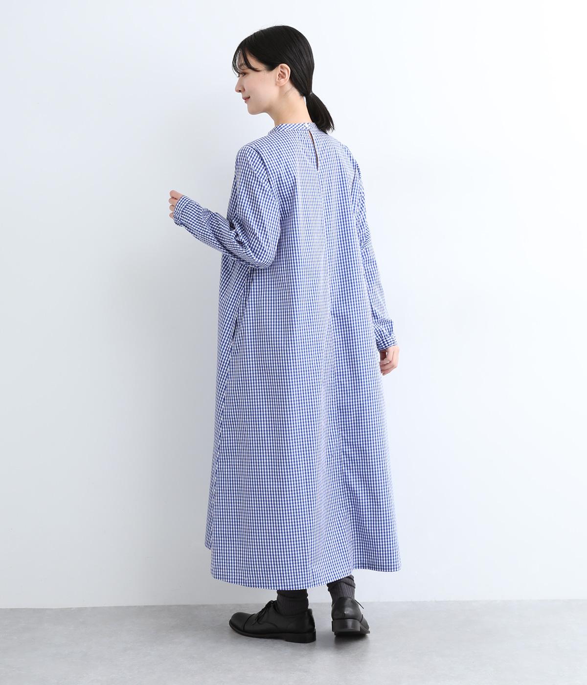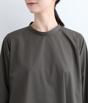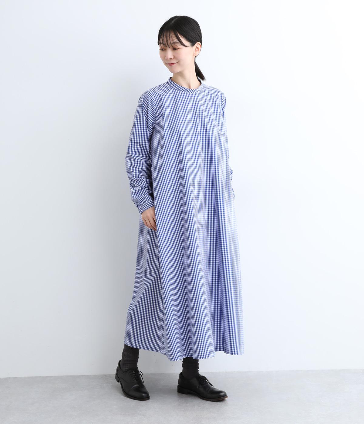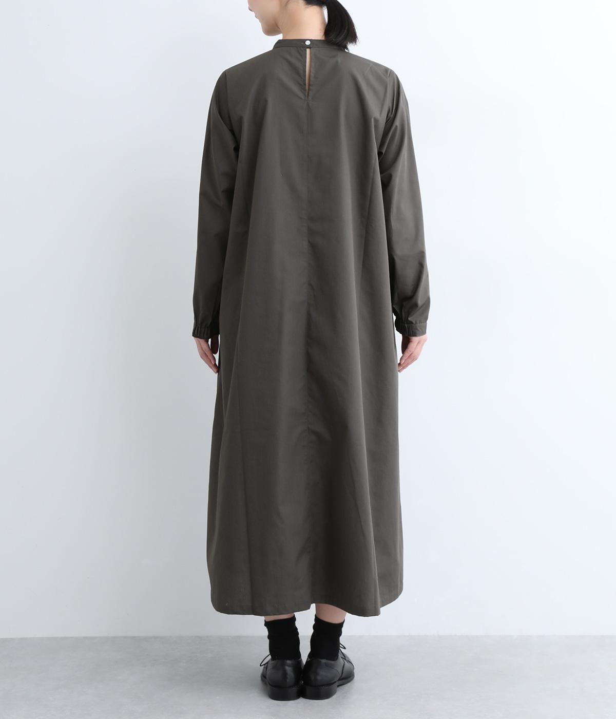 裾に向かって広がるフレア感を出しつつすっきりとした印象に仕上げたテントワンピースです。顔まわりはスタンドカラーで品よくまとめ、後ろ涙開きで着脱をアシスト。袖口は部分的にゴムを入れているのでたくし上げのアレンジもたのしめます。