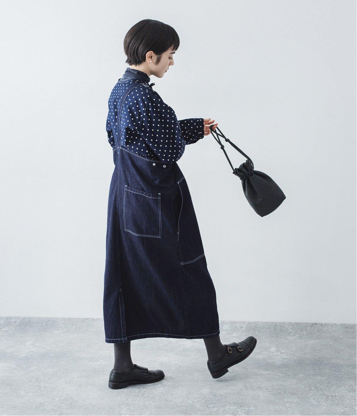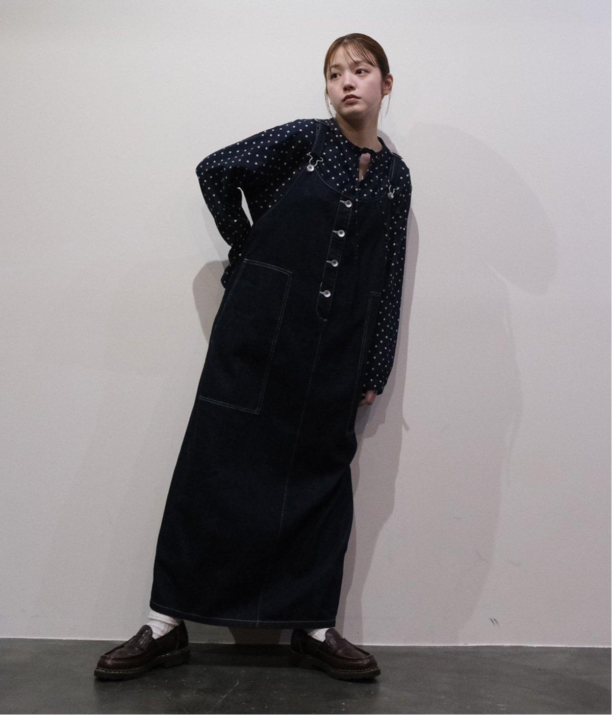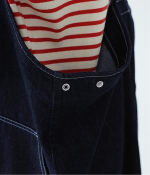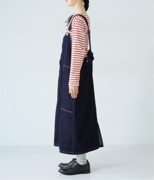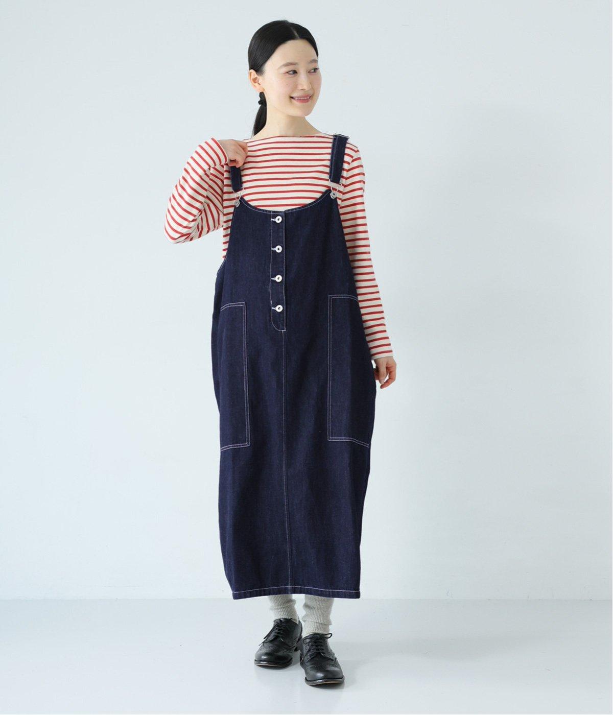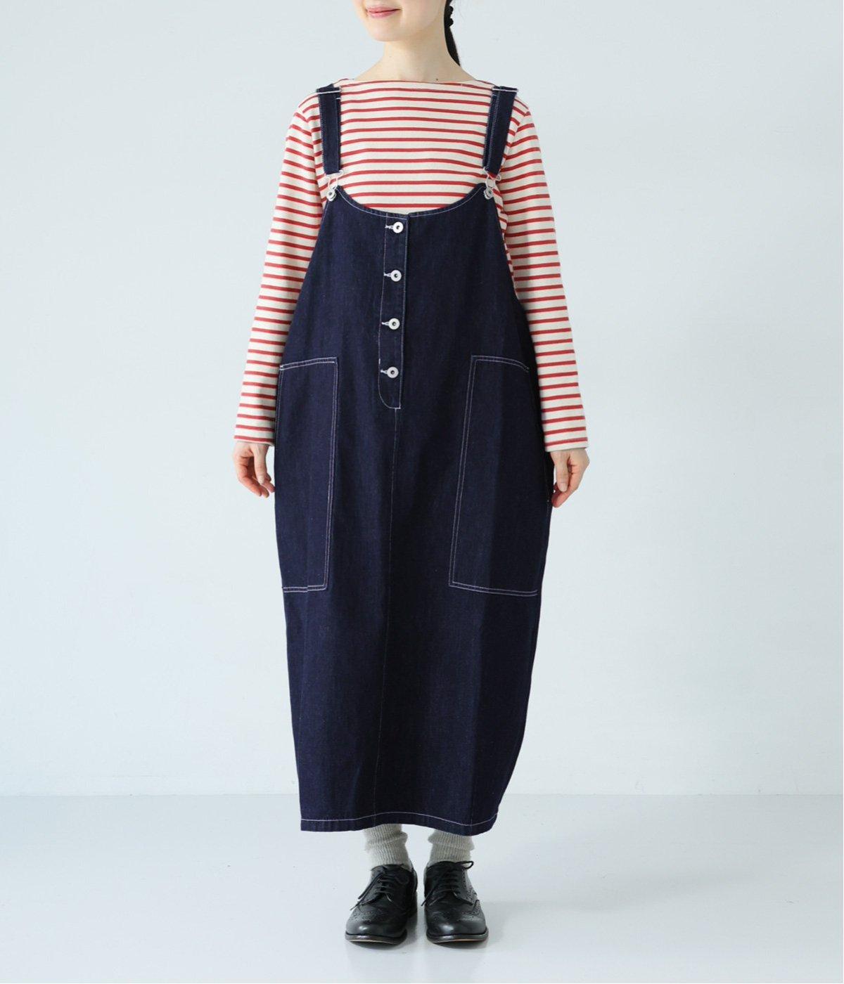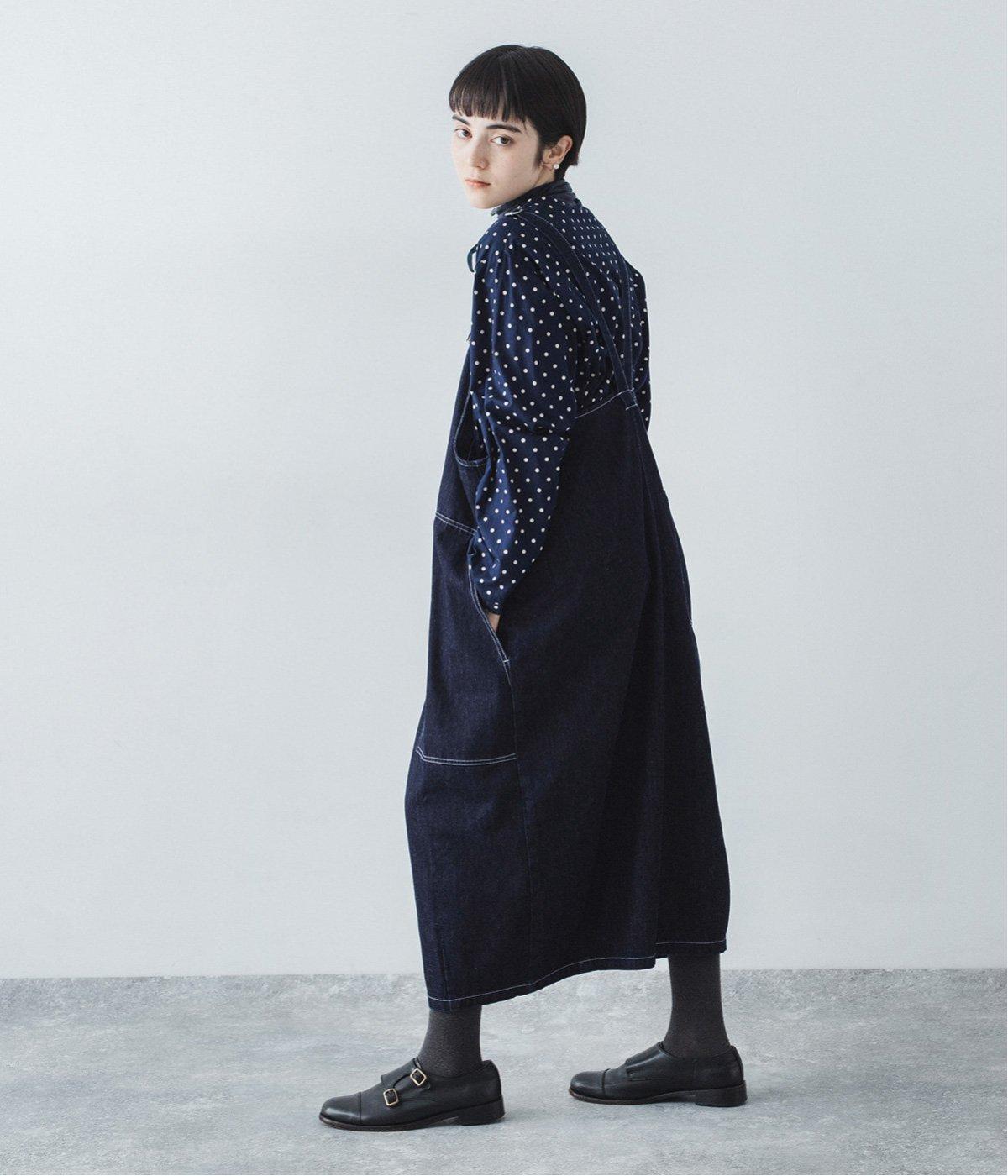 裾の広がりをおさえ丸みを持たせたコクーンシルエットが大人らしいジャンパースカート。前後の大きめのポケットやステッチでワークテイストを取り入れました。ウエスト位置両サイドのドットボタンでシルエット調節が可能。肩紐もバックルで長さをアレンジできます。