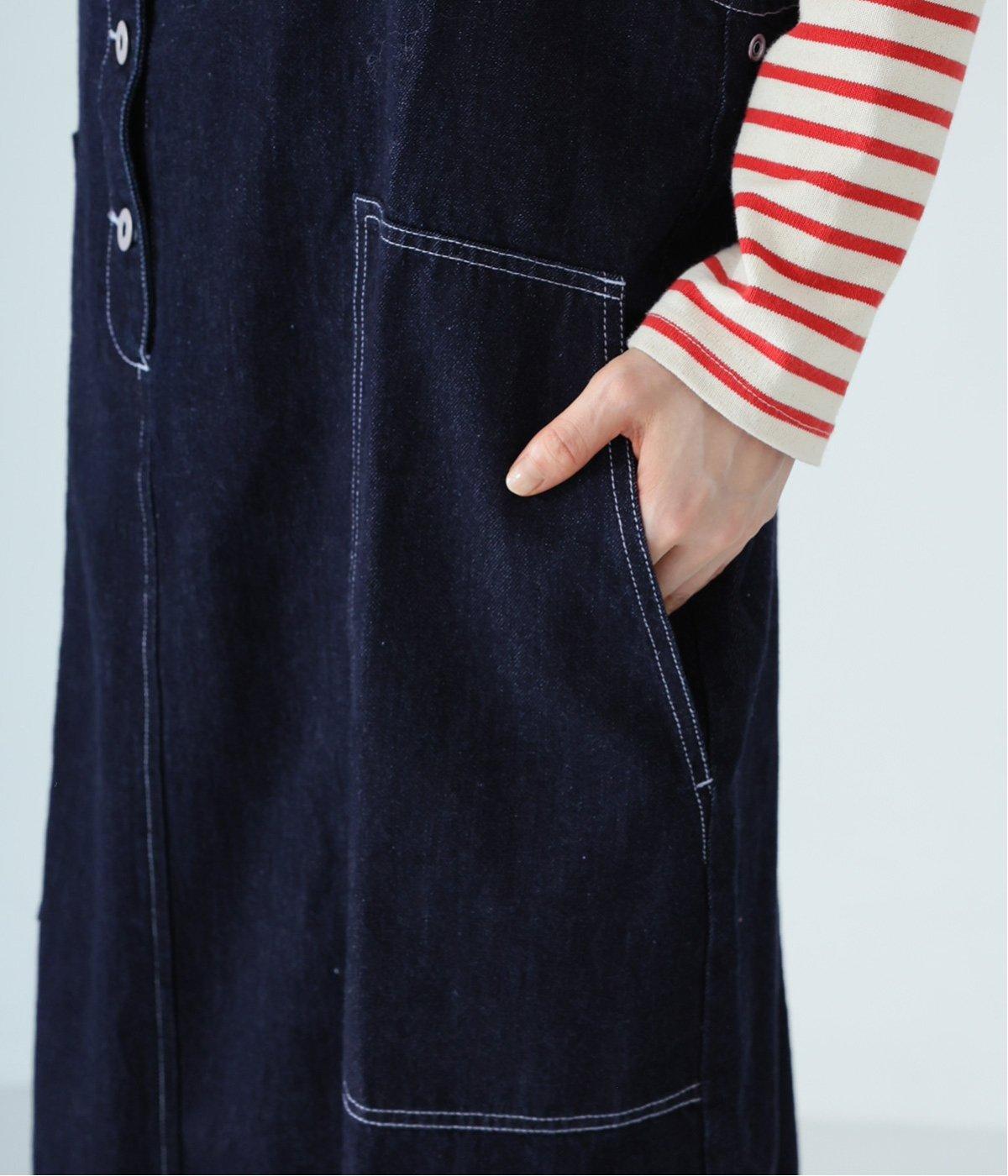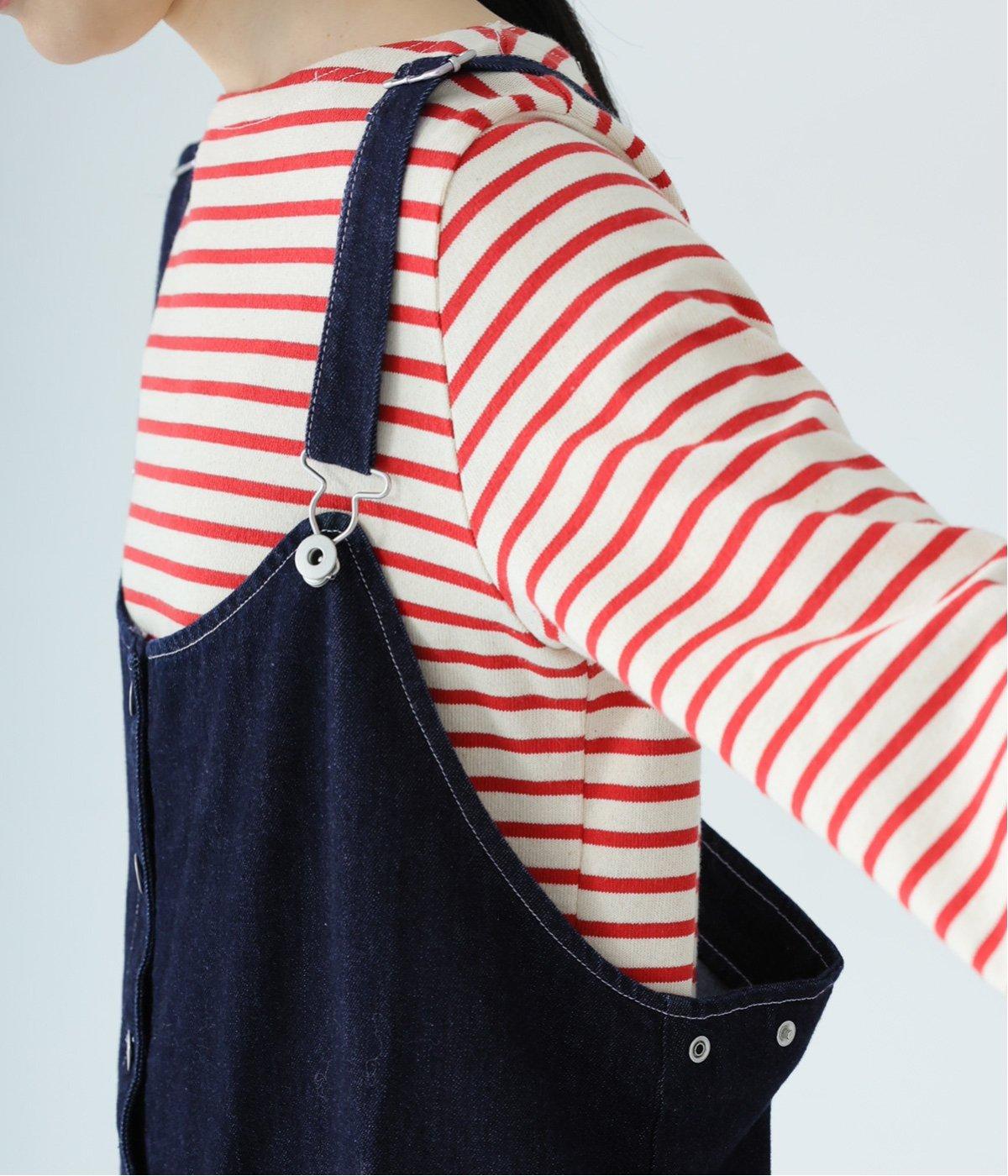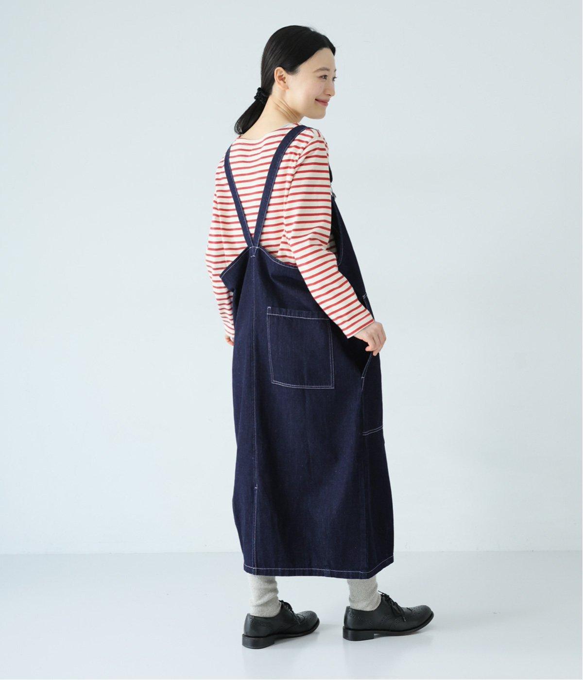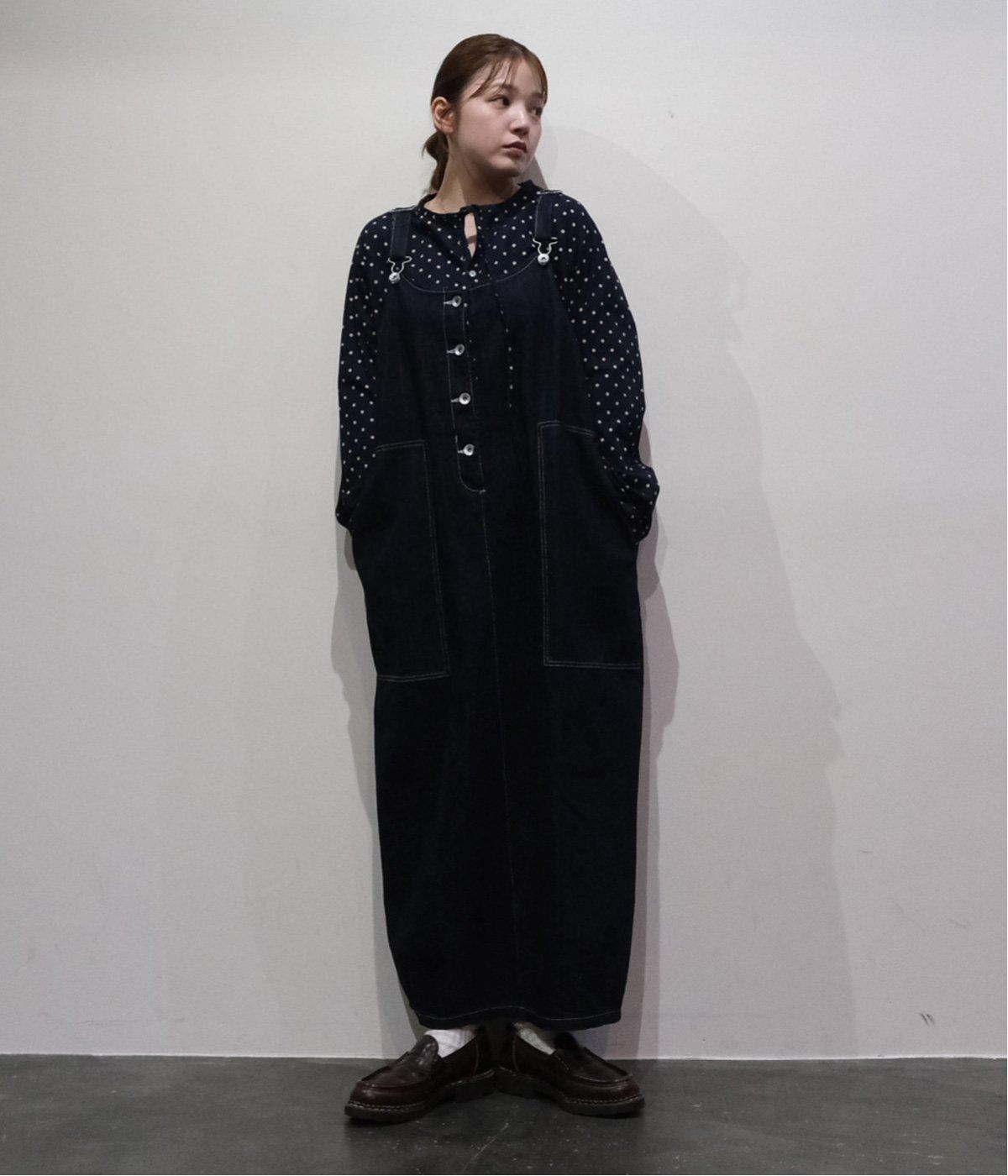 裾の広がりをおさえ丸みを持たせたコクーンシルエットが大人らしいジャンパースカート。前後の大きめのポケットやステッチでワークテイストを取り入れました。ウエスト位置両サイドのドットボタンでシルエット調節が可能。肩紐もバックルで長さをアレンジできます。