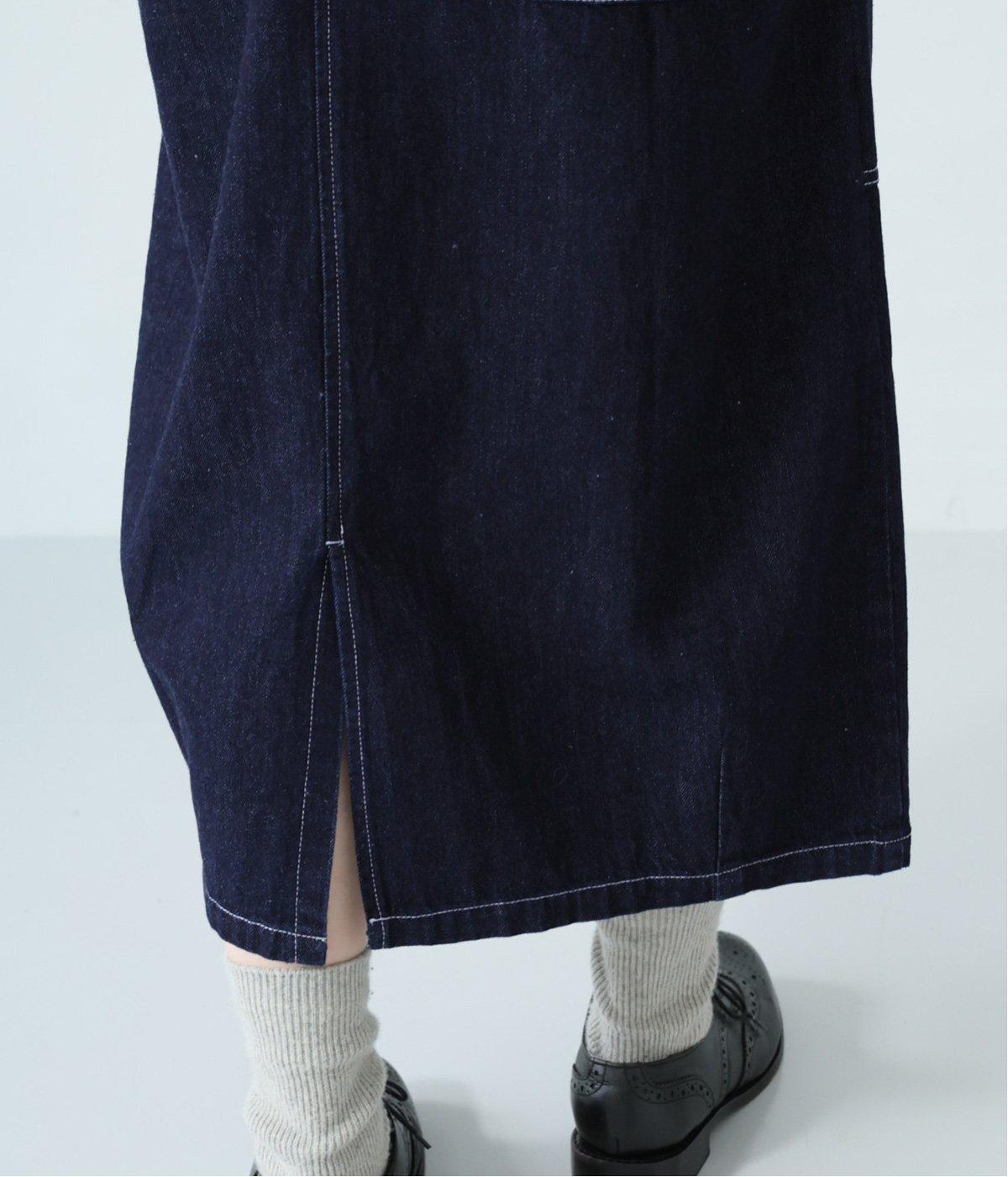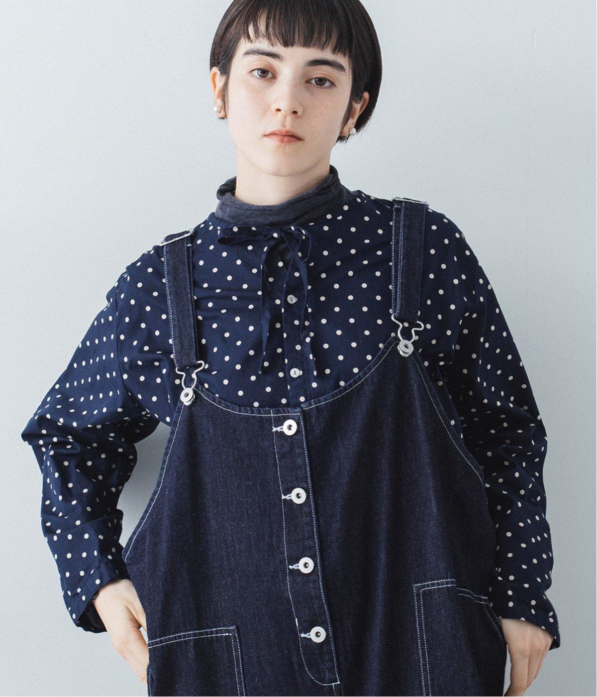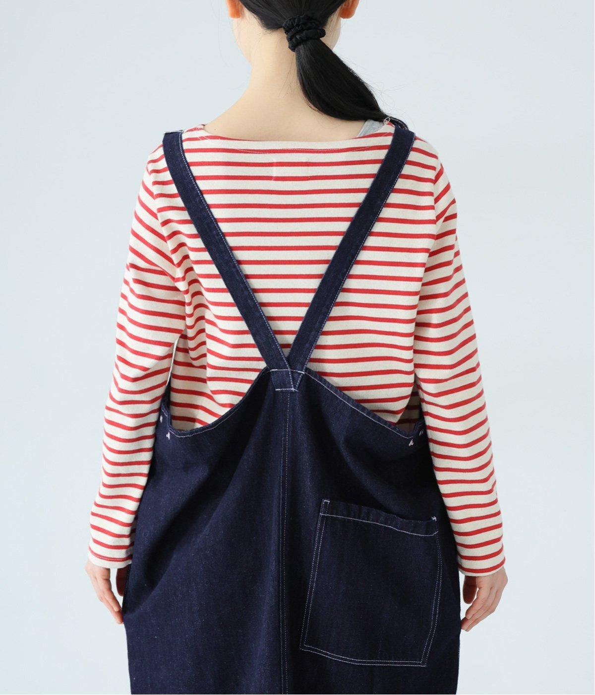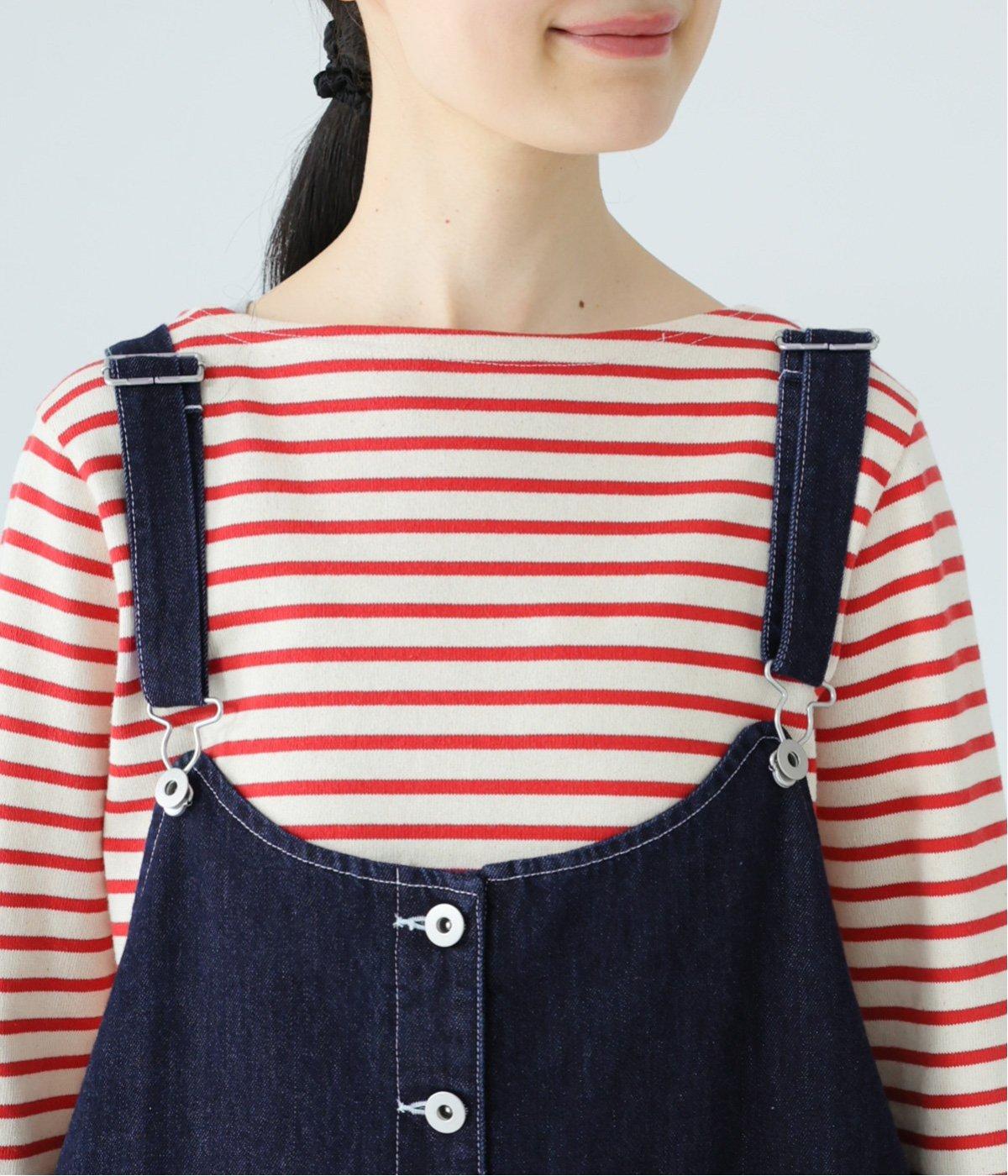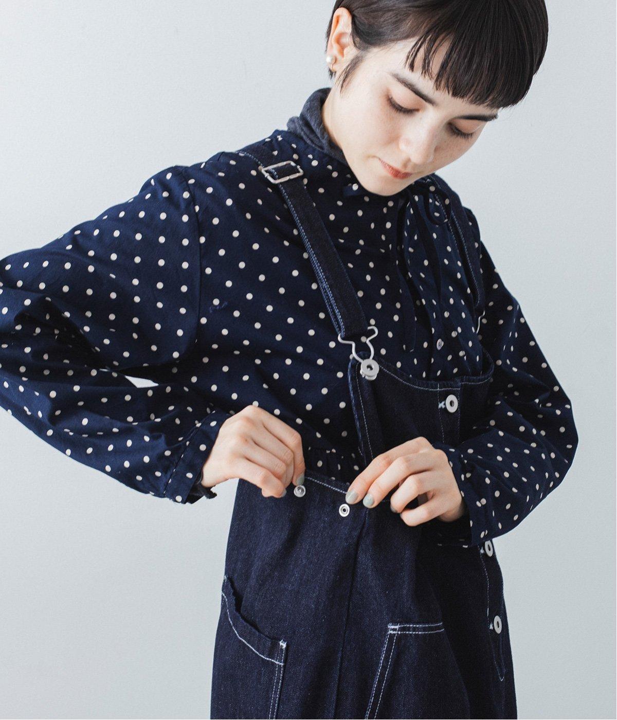 裾の広がりをおさえ丸みを持たせたコクーンシルエットが大人らしいジャンパースカート。前後の大きめのポケットやステッチでワークテイストを取り入れました。ウエスト位置両サイドのドットボタンでシルエット調節が可能。肩紐もバックルで長さをアレンジできます。