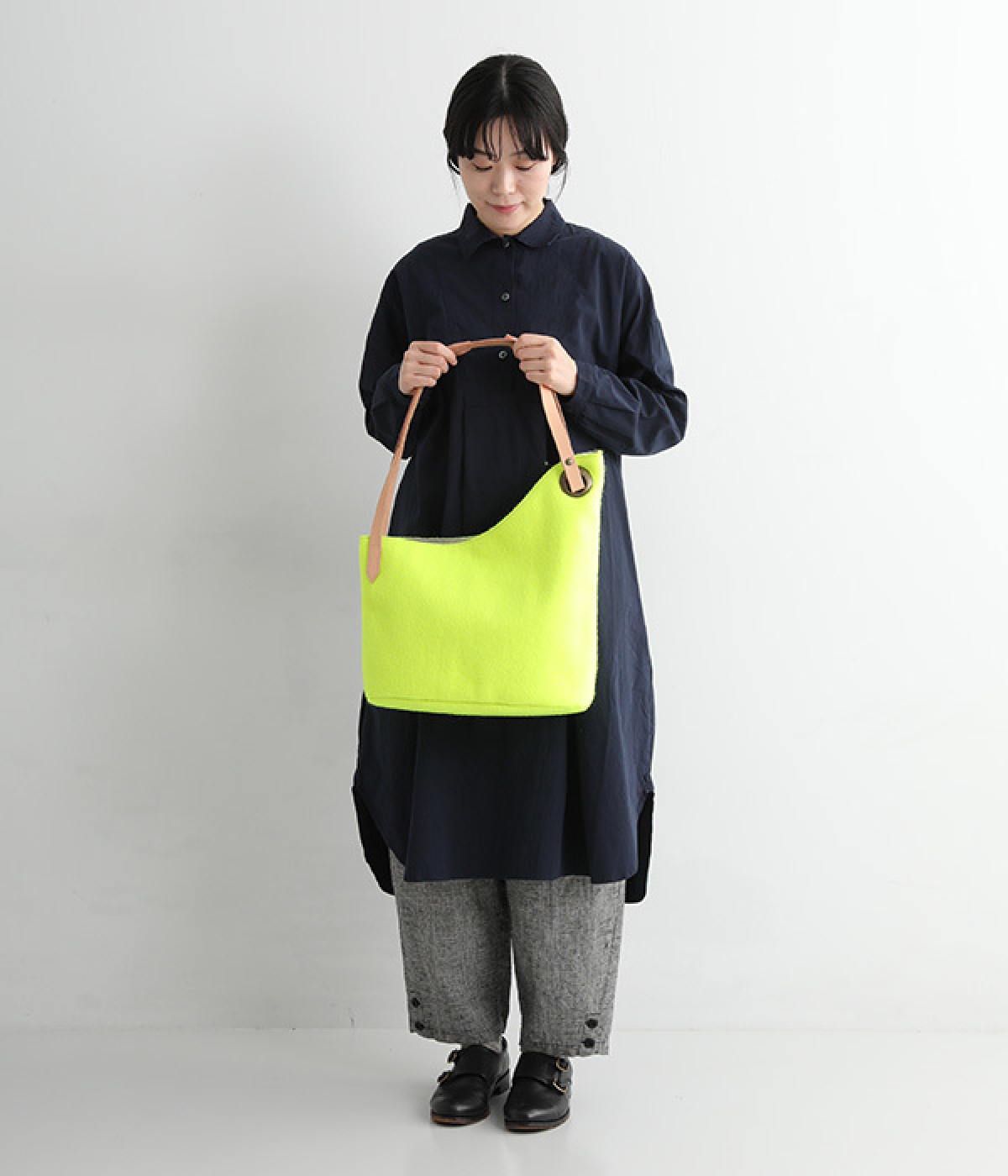 大人向きのレザーハンドルは肩掛けするのに十分な長さ
