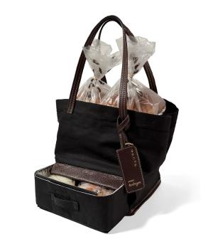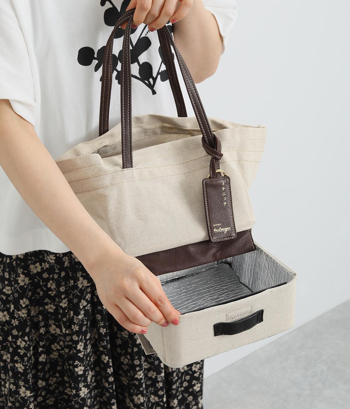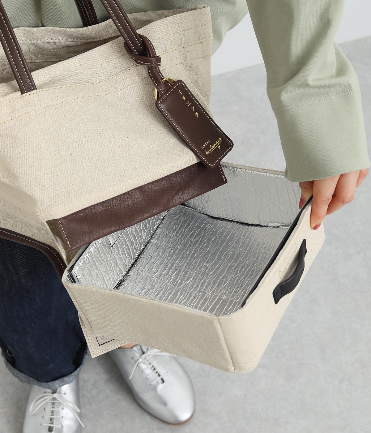パン好きさんにぴったりなショクパンバッグ。上段は食パンをはじめ常温のものを、引き出し式の下段は保冷したいものを入れることができます。下段の上部には保冷剤ポケットつき。ちょっとしたお出かけや、お弁当用のバッグとしても活用できそうです。