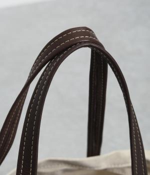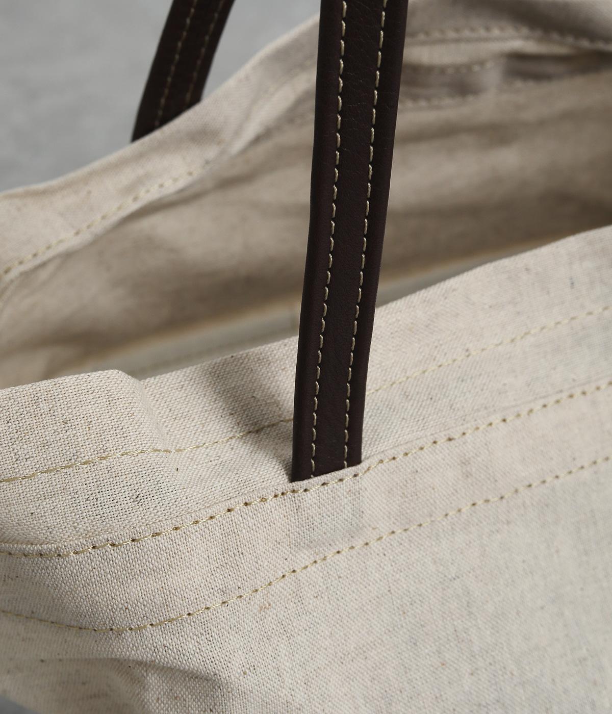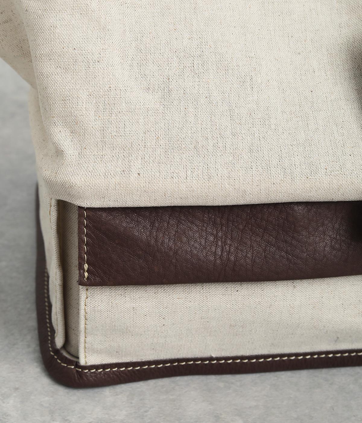 ナチュラルな風合いの綿麻生地で仕立てています。付属品には洗える本革を採用して上品な雰囲気をプラス。手洗い可能なので、清潔を保ちながら安心して普段使いできます。
