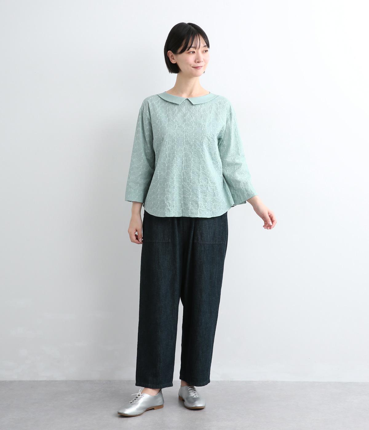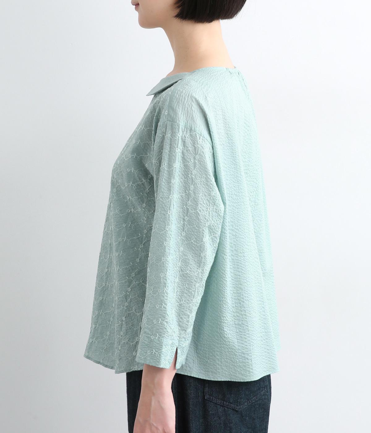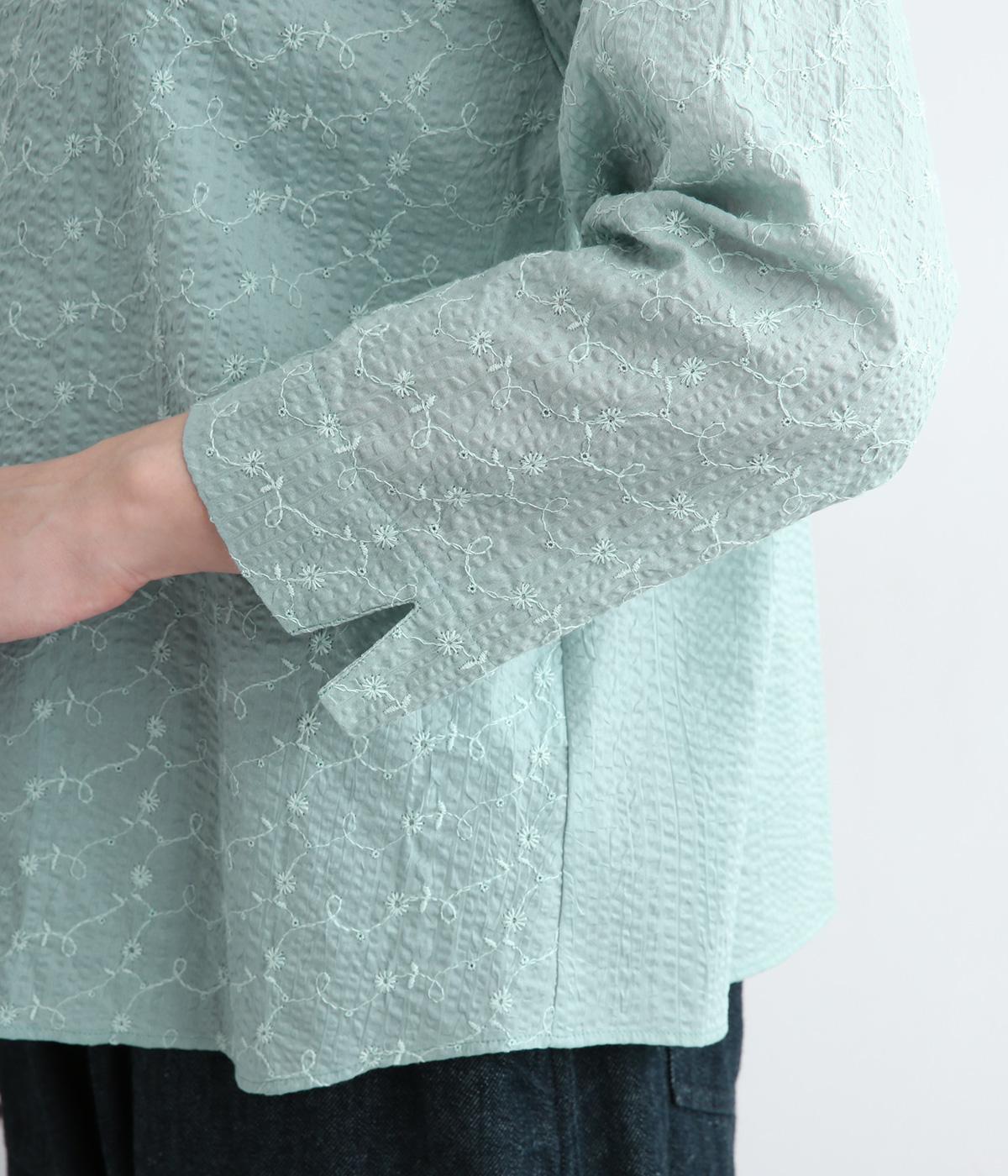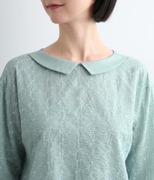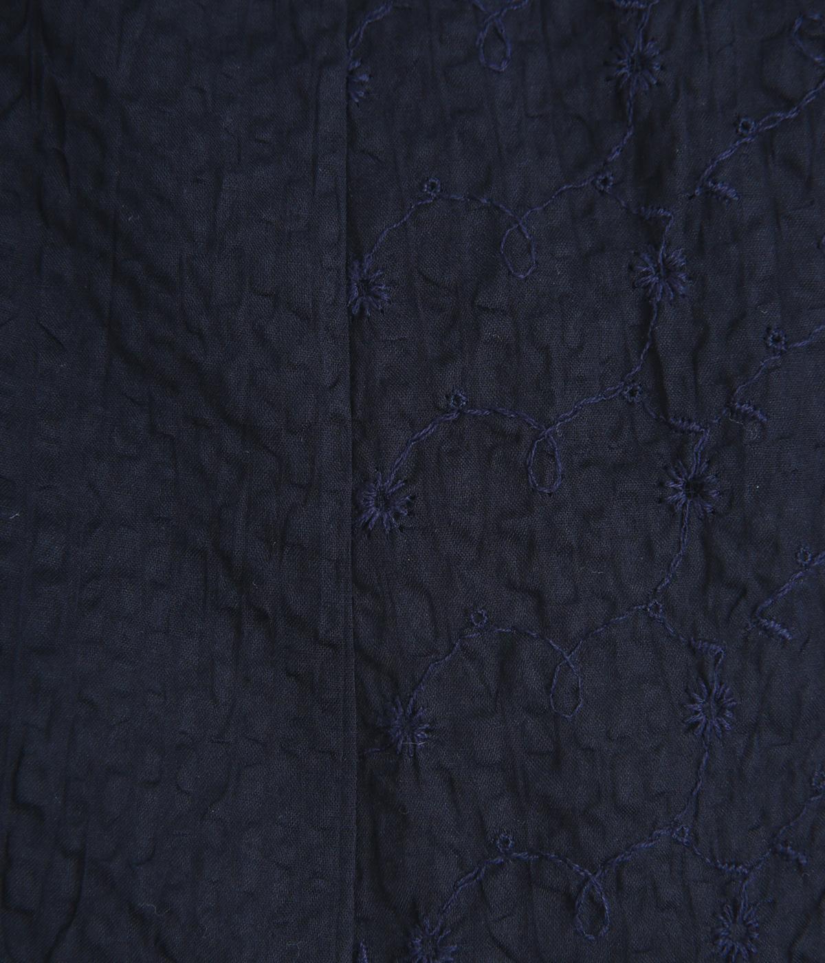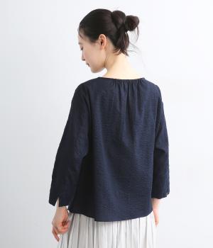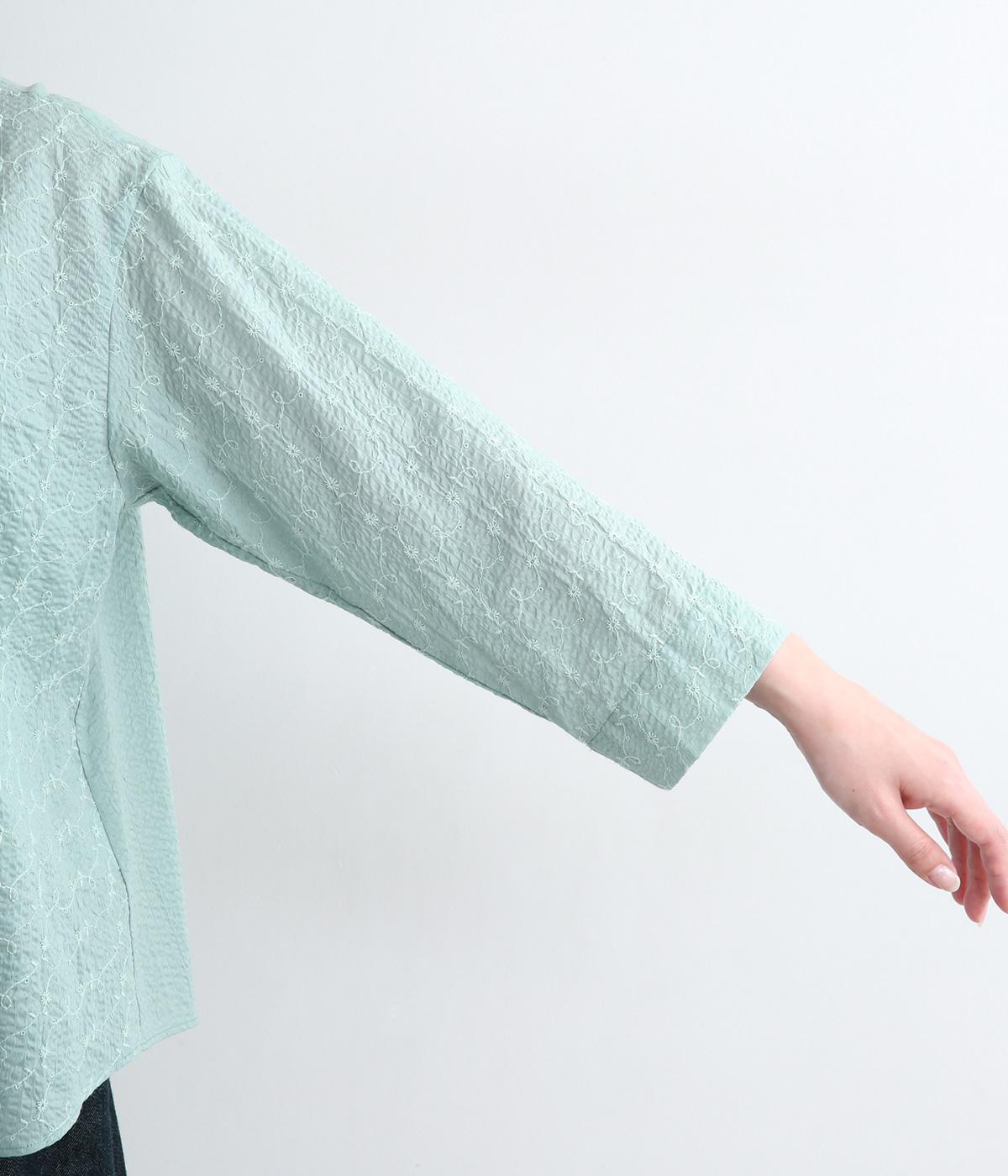 ポコポコとした自然な凹凸が特徴的なオリジナルのエンブロイダリー生地を使用。さらっとした質感で肌離れがよく、快適な着用感を得られます。