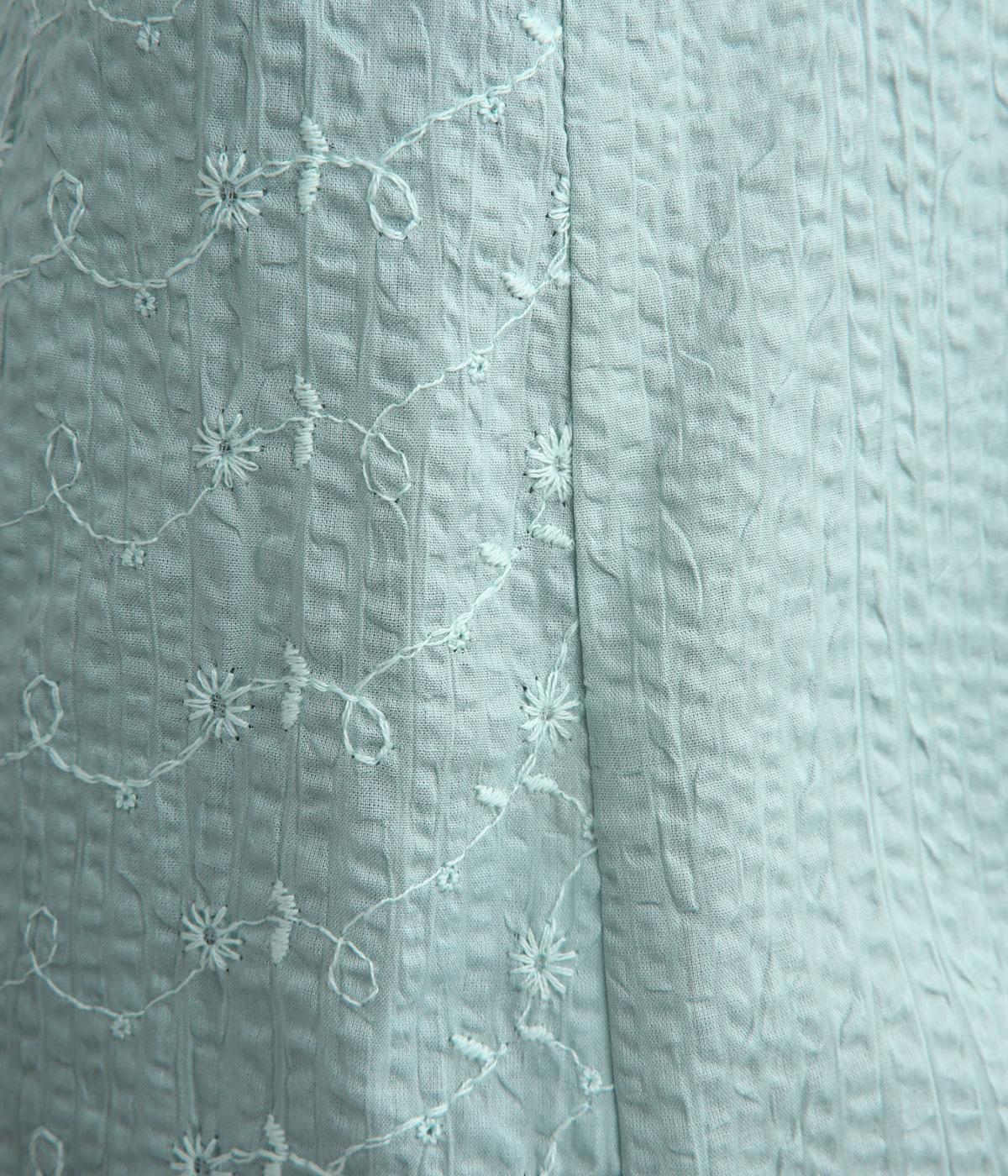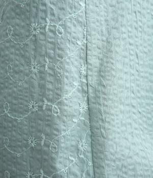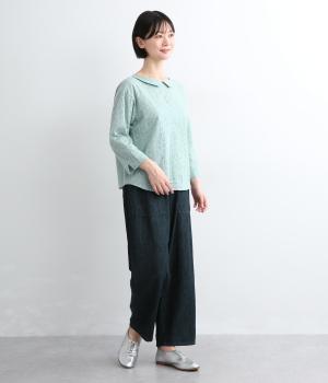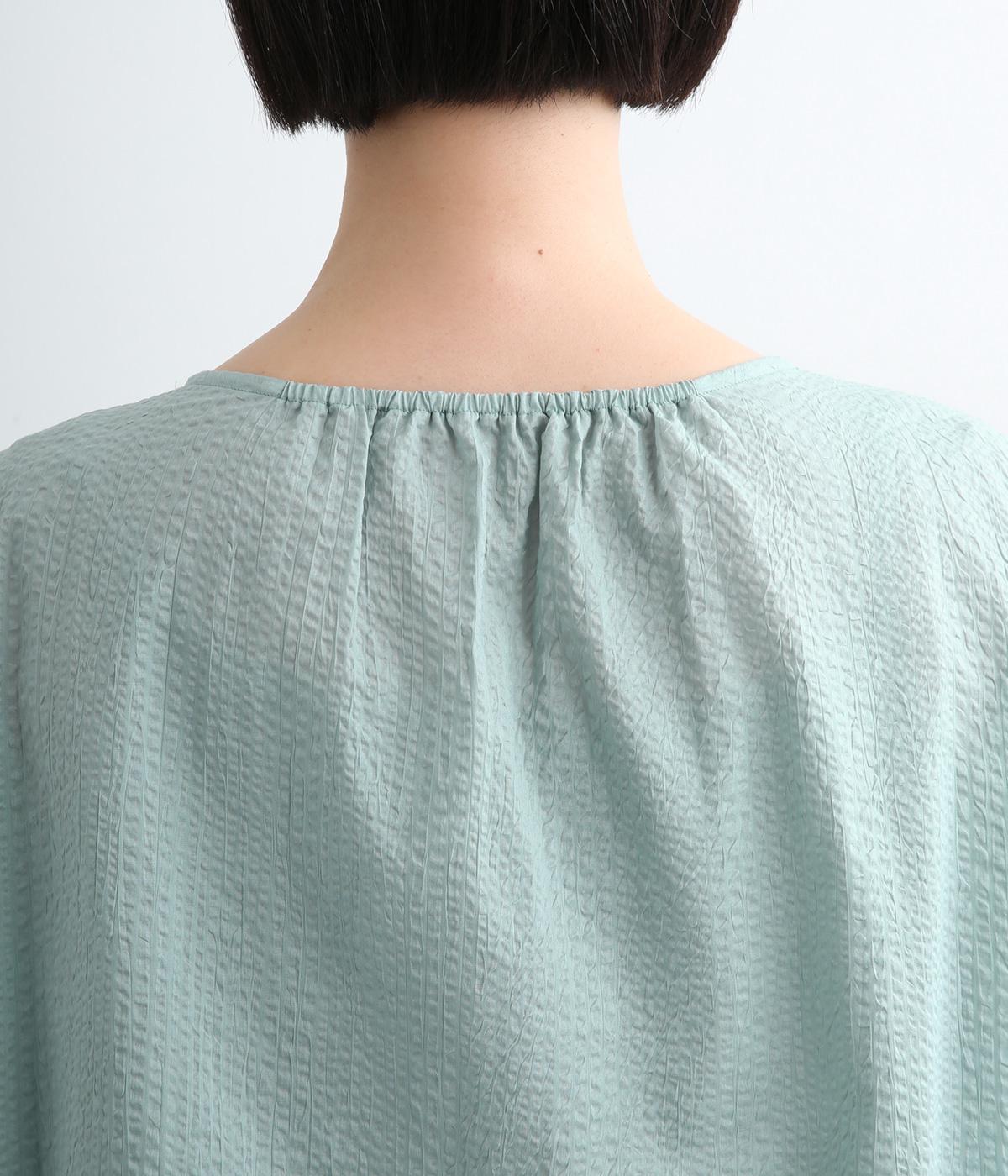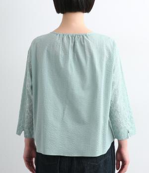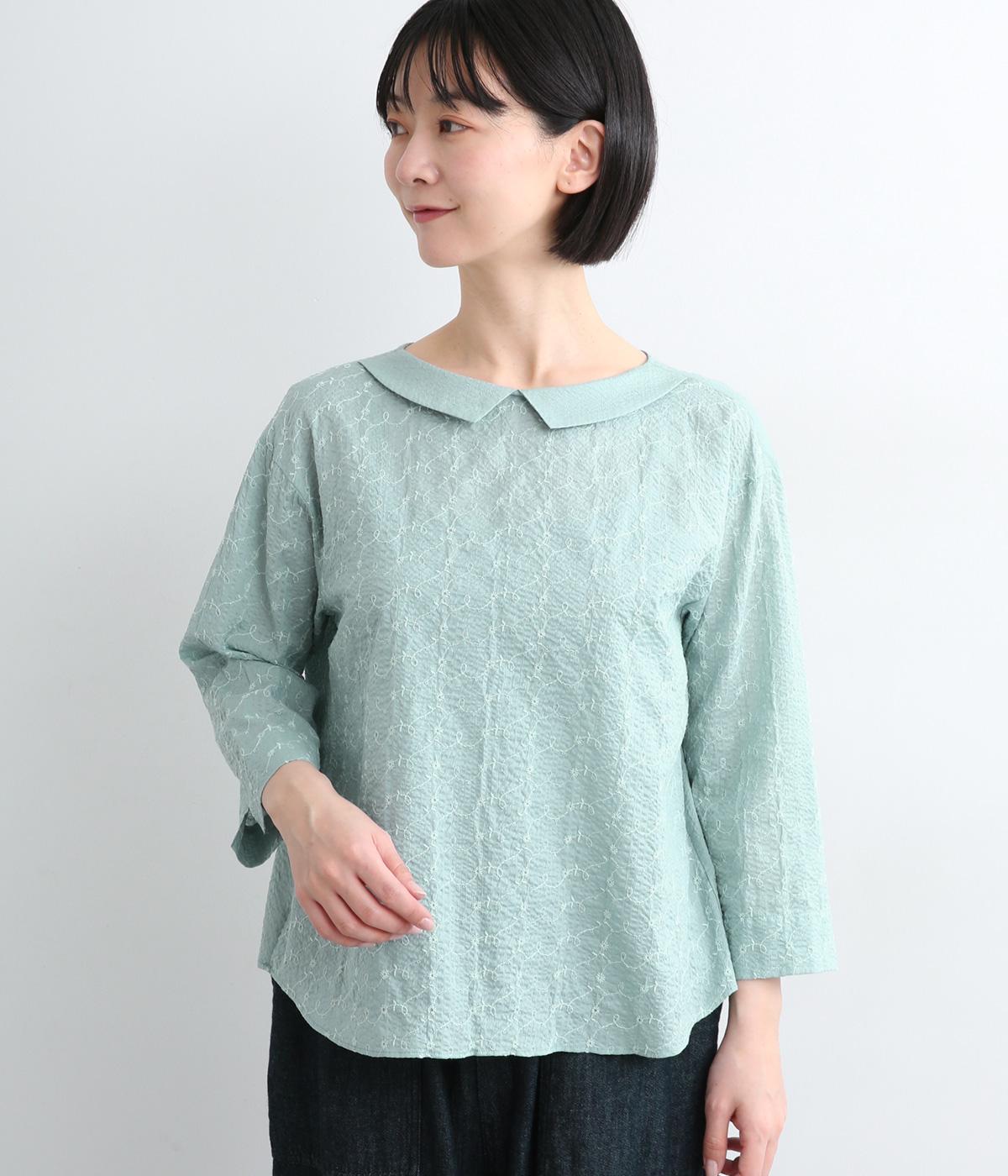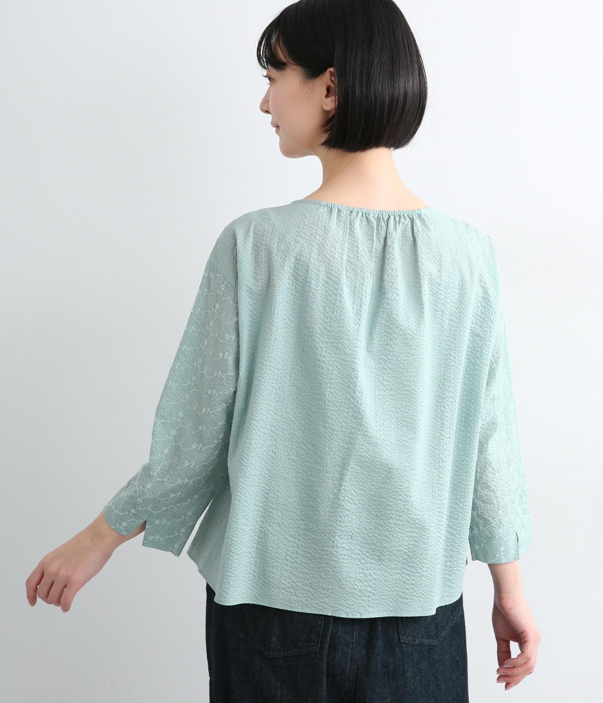ポコポコとした自然な凹凸が特徴的なオリジナルのエンブロイダリー生地を使用。さらっとした質感で肌離れがよく、快適な着用感を得られます。