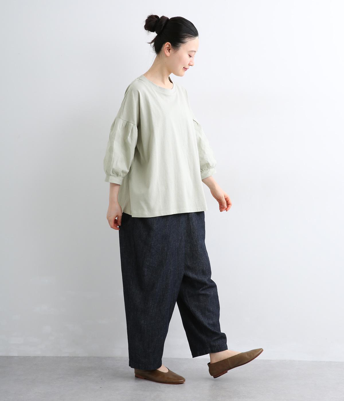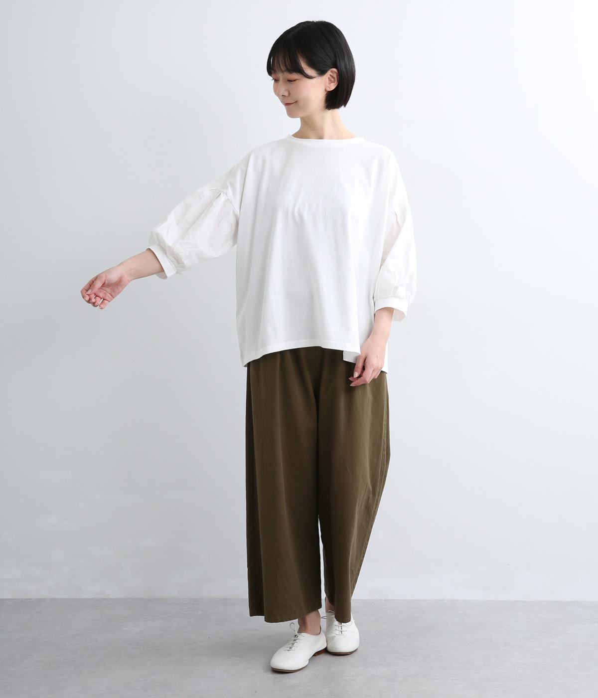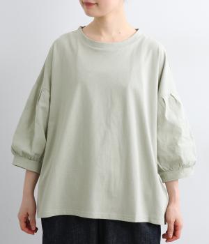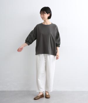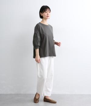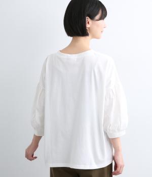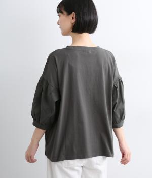 プレーディング天竺フラワージャカード布帛コンビギャザースリーブTシャツ