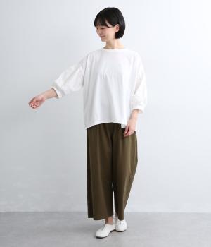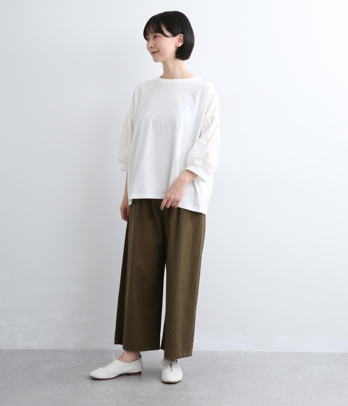 コットン天竺レーヨンMIX平織りギャザー布帛コンビTシャツ