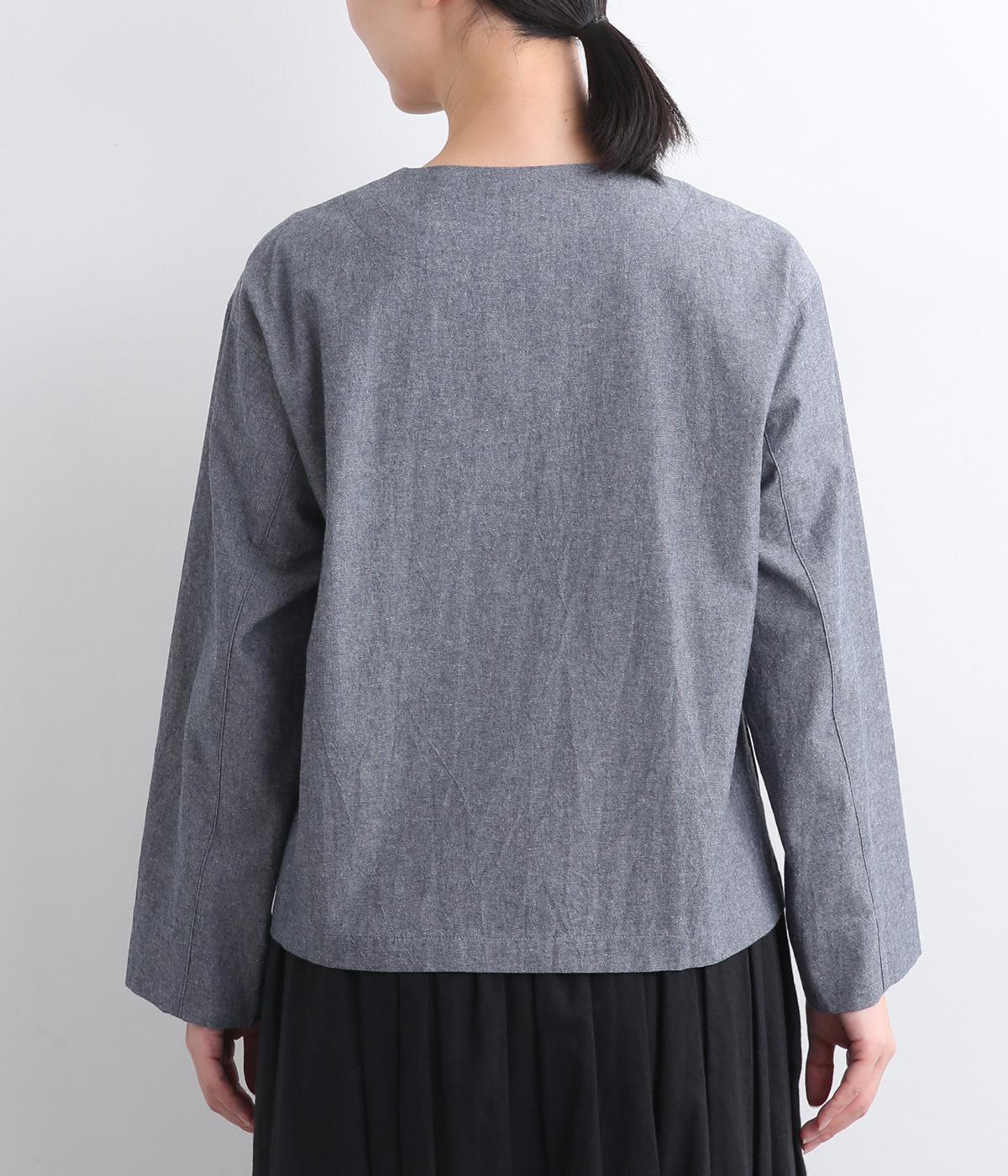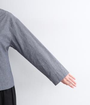 さわやかな風合いが特徴的なコットンシャンブレー生地です。丈夫で耐久性があるのでデイリー使いに最適で、通気性もいいので見た目だけでなく心地よい着用感も魅力。