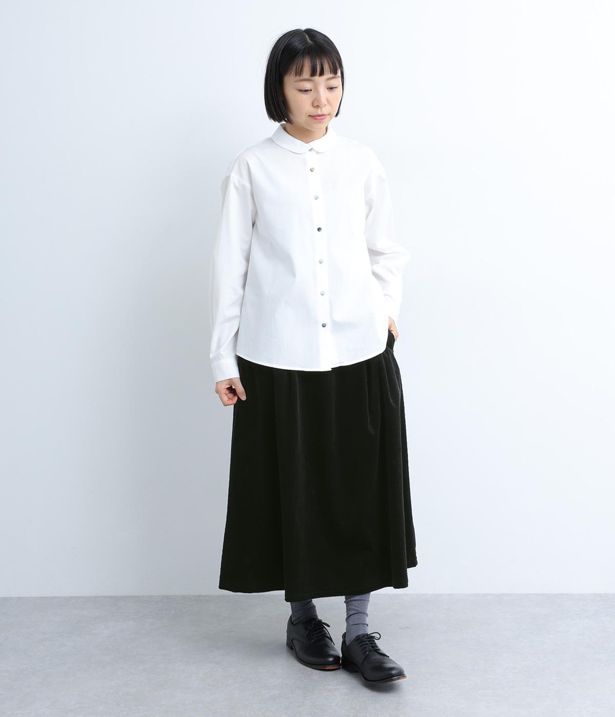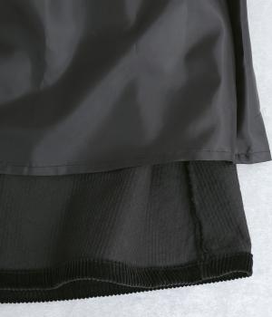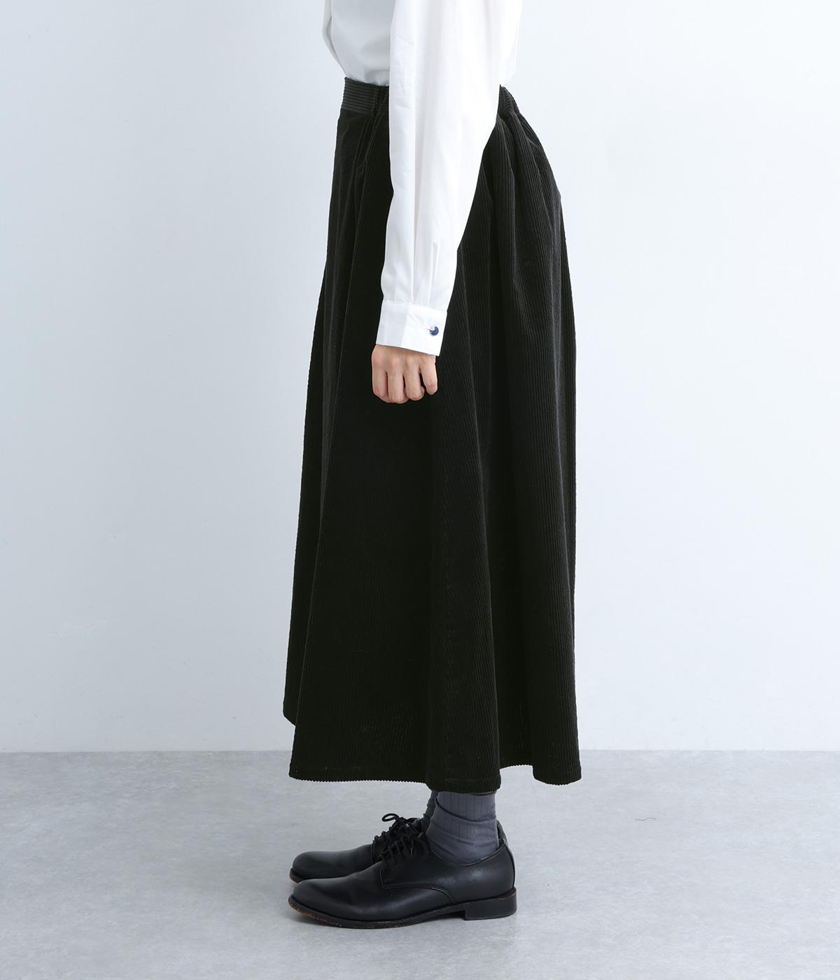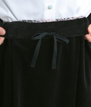 太めのコーデュロイで存在感のある生地です。ウエストの内側にはリバティパイピングをほどこしました。裏地もついて足さばきも安心です。