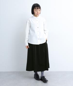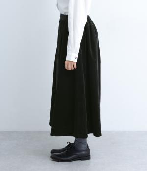 前面のタックギャザーが自然な落ち感で、美しいドレープをつくります。シャツをインしてもアウトでもサマになり、主役として活躍します。ウエスト内側のリバティパイピングなど、さりげない遊び心も◎。ウエストはゴム仕様で、紐で調整可能です。