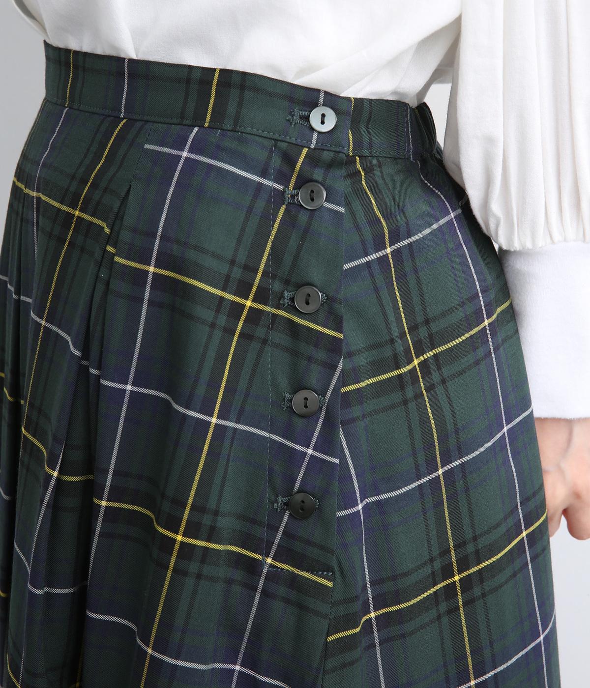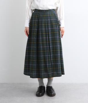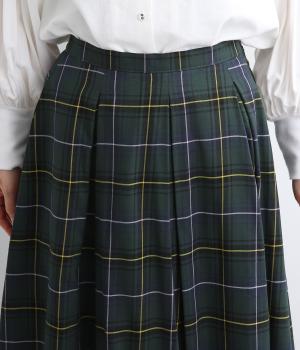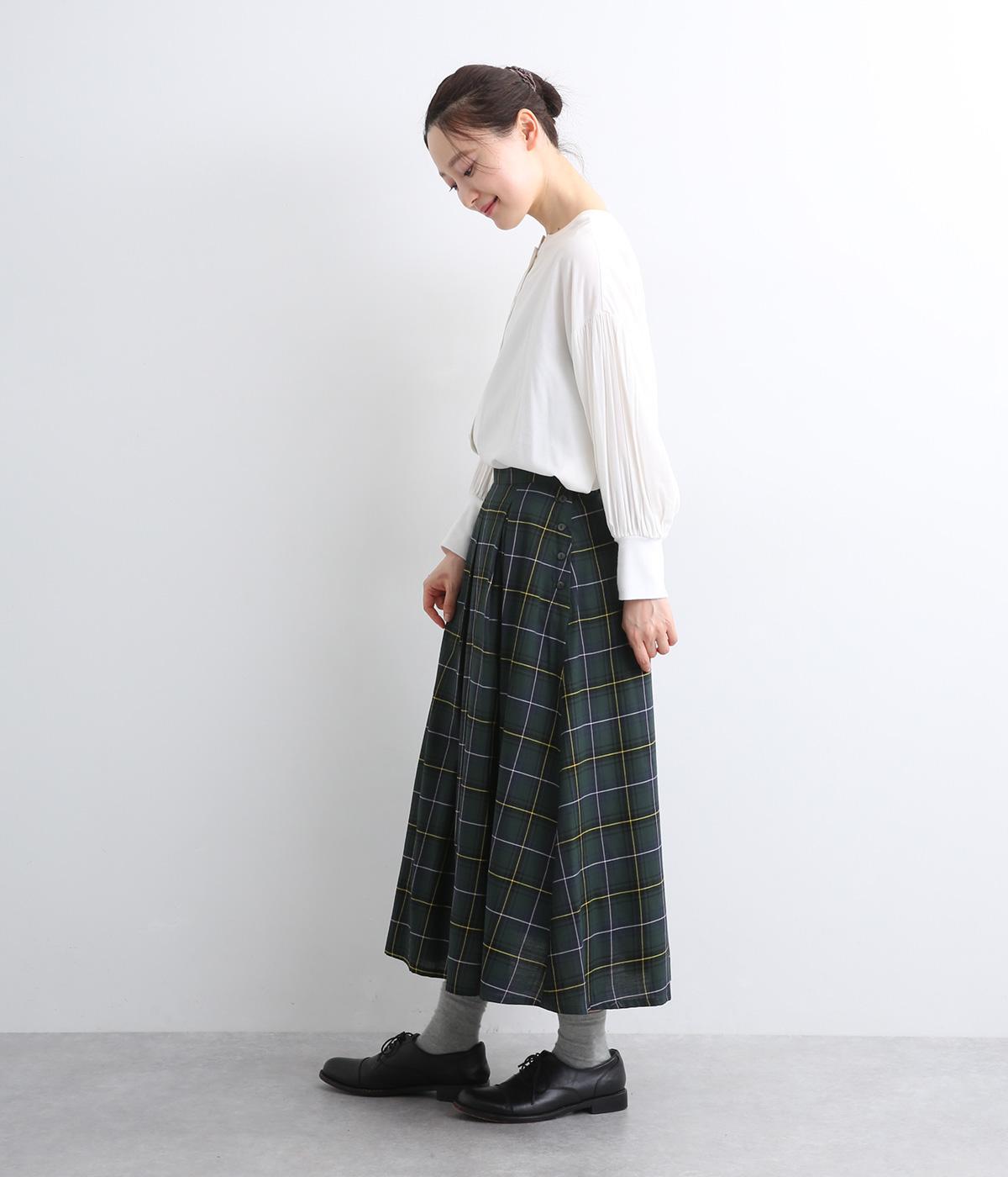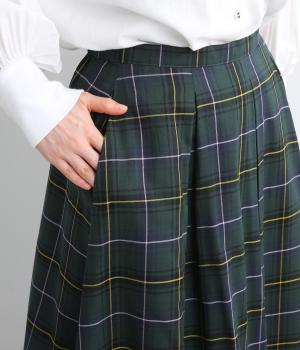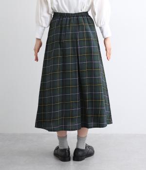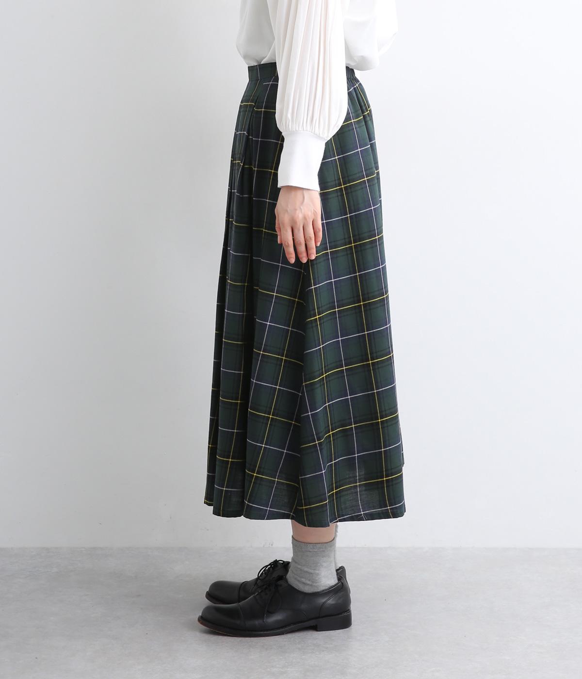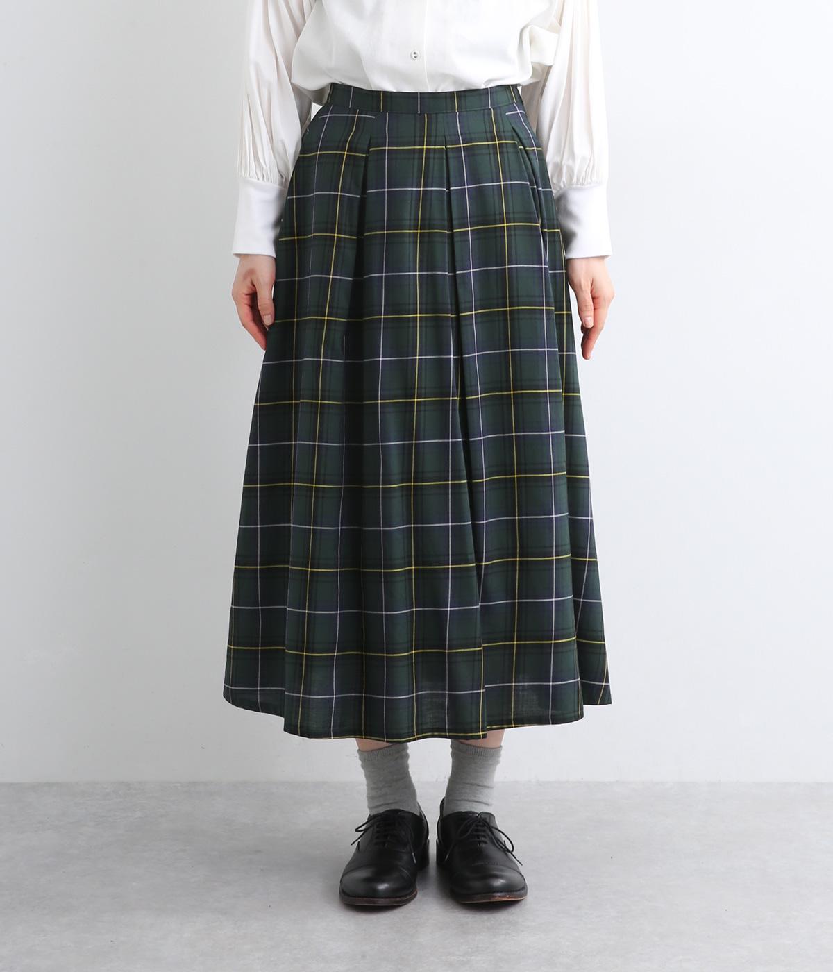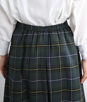 シーズンムード高まるチェック柄のロングスカートです。幅広タックでほどよく広がり、品良く着られます。ウエストはサイドボタンつき、後ろゴムですっきりした印象。足首が出る丈感なので、ソックスやシューズの組み合わせも楽しめます。