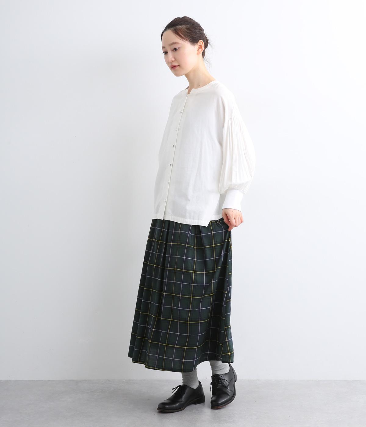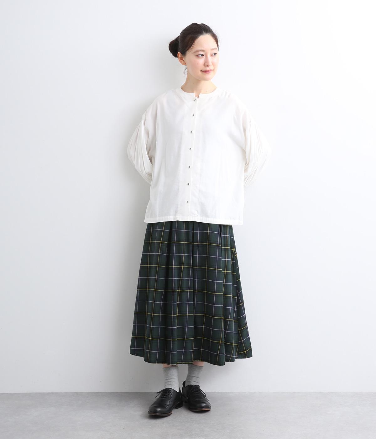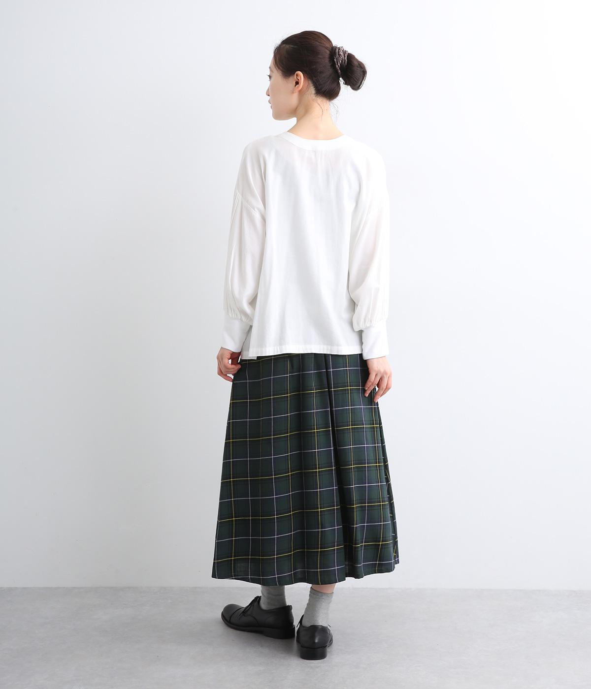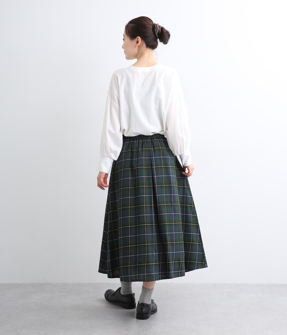 シーズンムード高まるチェック柄のロングスカートです。幅広タックでほどよく広がり、品良く着られます。ウエストはサイドボタンつき、後ろゴムですっきりした印象。足首が出る丈感なので、ソックスやシューズの組み合わせも楽しめます。