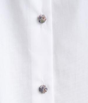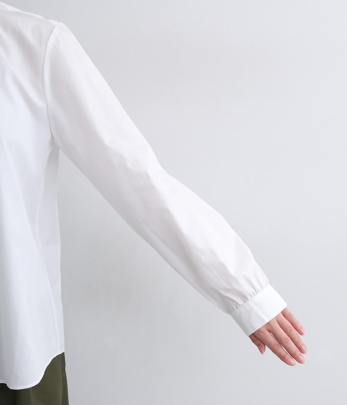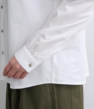 さらりとした肌触りに心地よいハリ感がきちんとした印象を与えてくれるコットン生地を採用。薄手ながらも適度なふくらみでシルエットをきれいに描いてくれます。