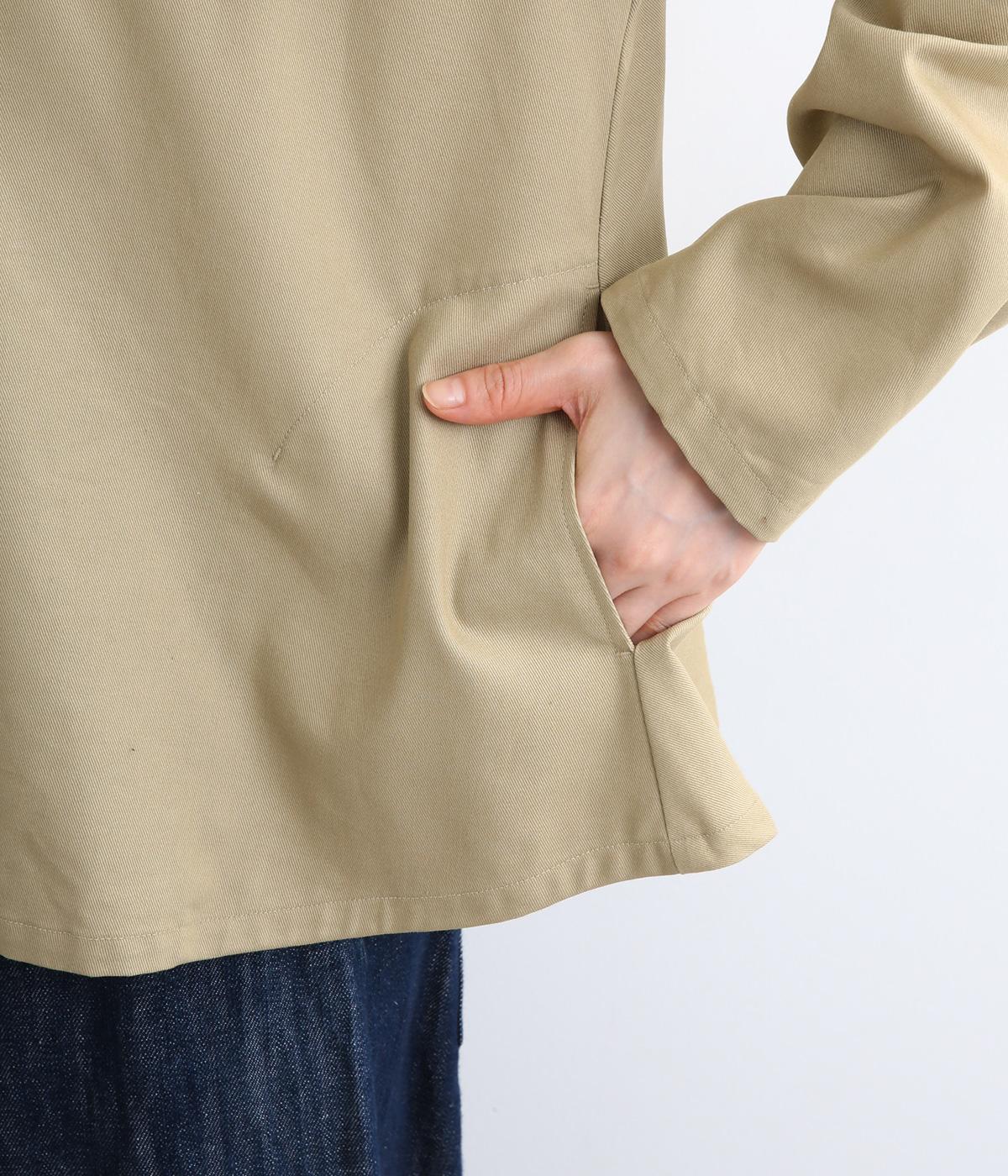コットンとポリエステルをミックスさせた、タフな仕上がりの混紡生地を採用しています。適度なハリ感に光沢のある表情が特徴的です。