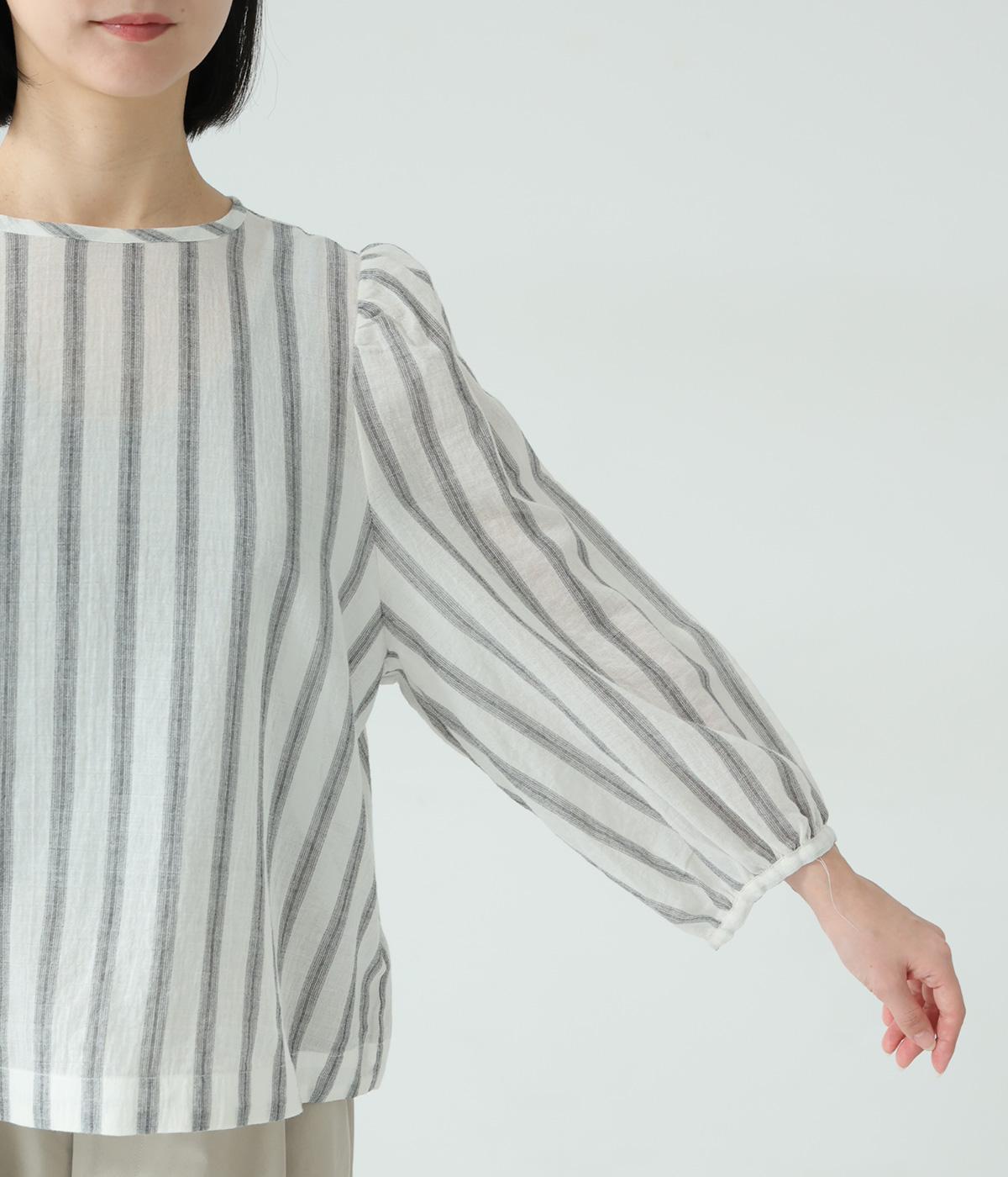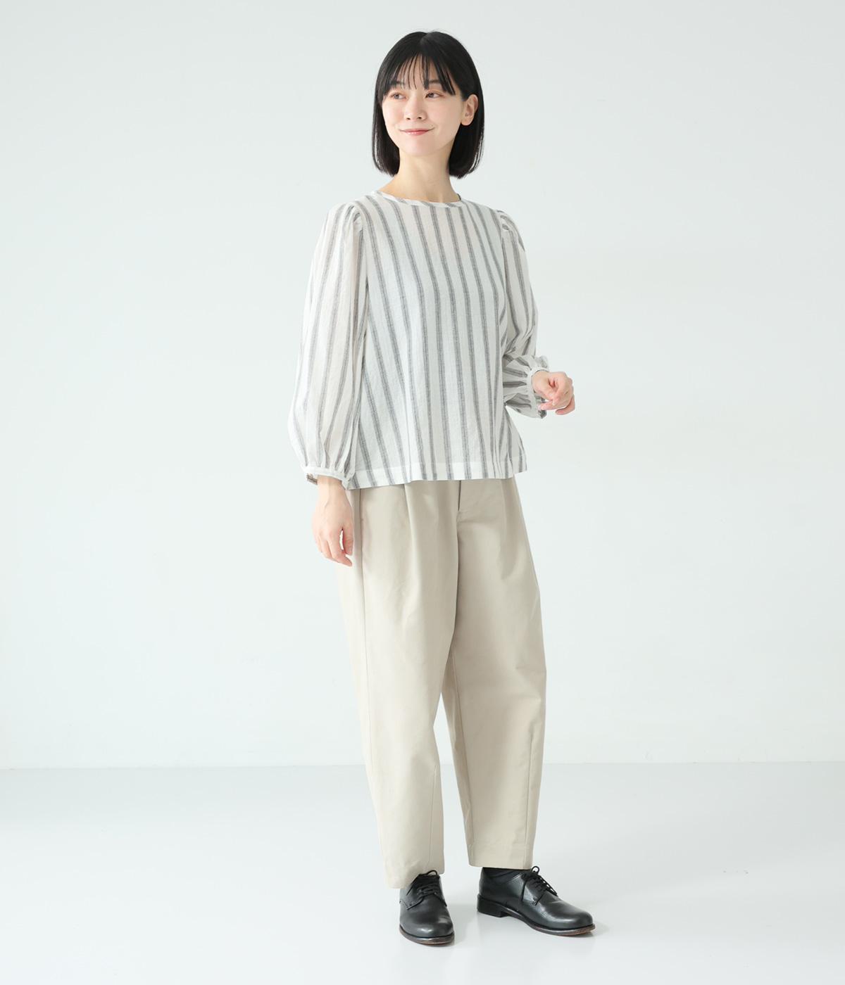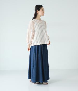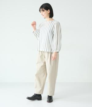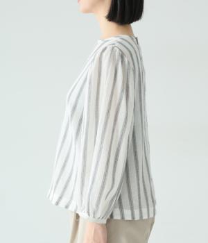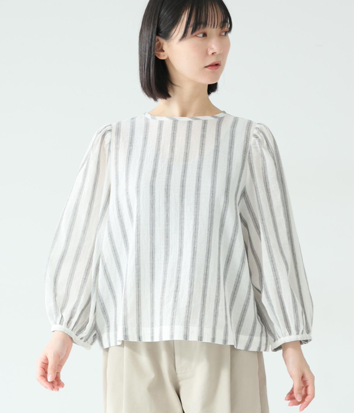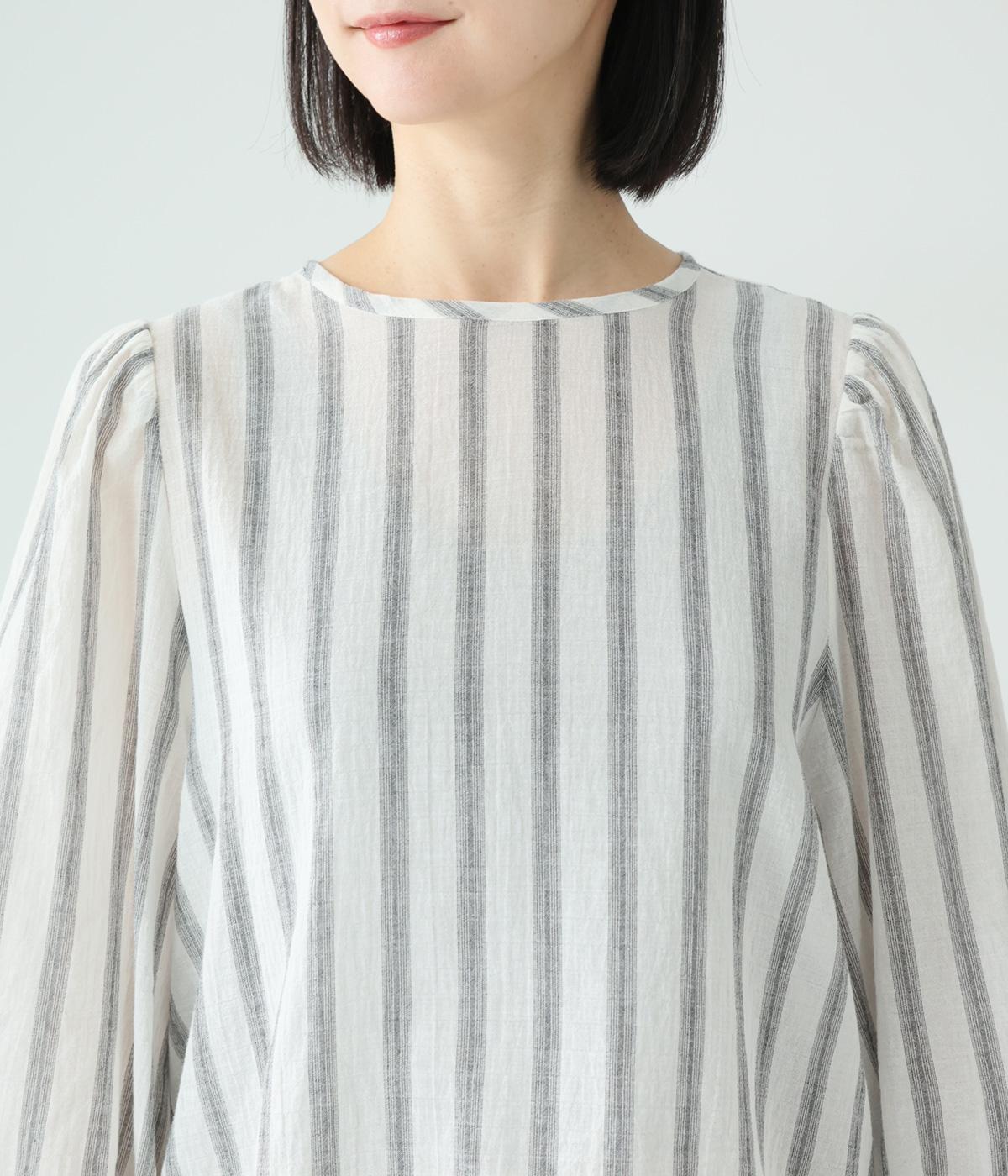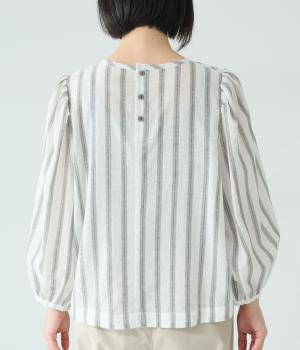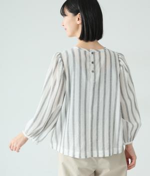 軽やかな生地にさわやかなストライプをのせ、やわらかな雰囲気に仕上げました。ふんわりとした袖のシルエットが女性らしさをプラス。パンツにもスカートにもなじむほどよい丈感で、幅広いスタイリングが楽しめます。