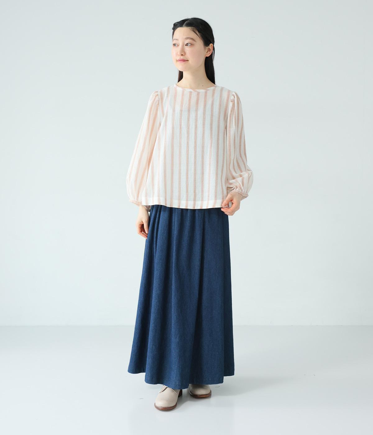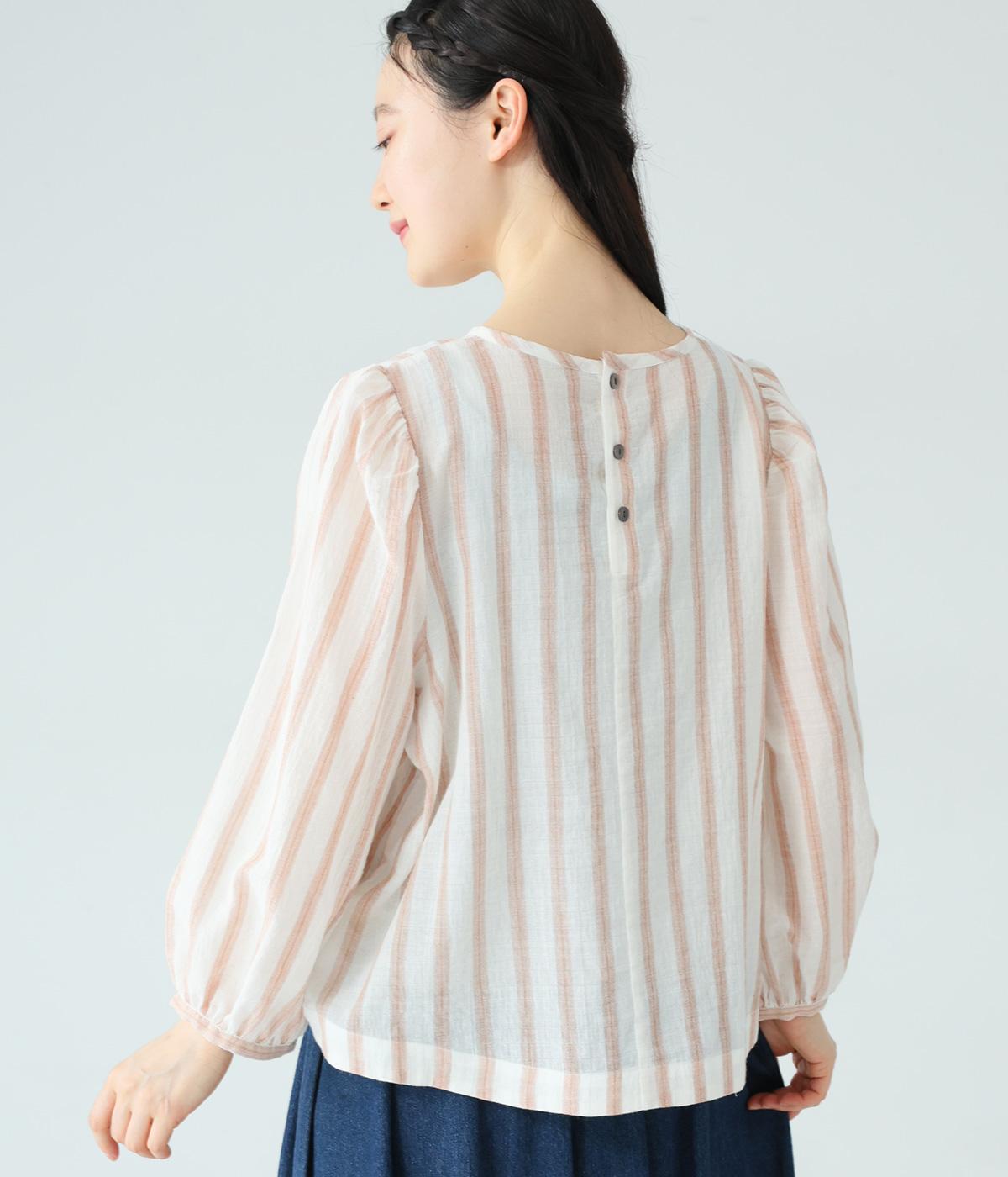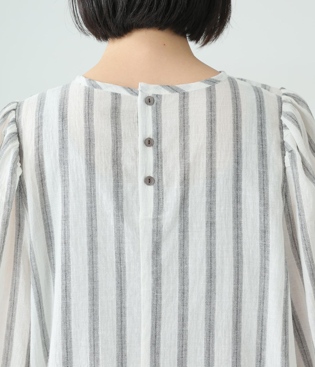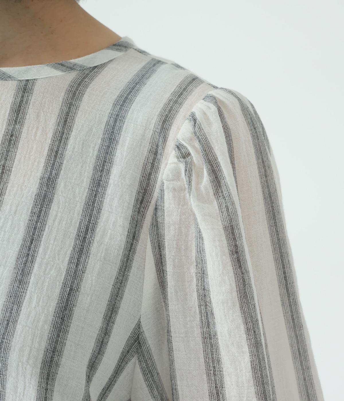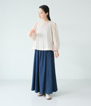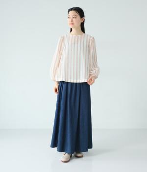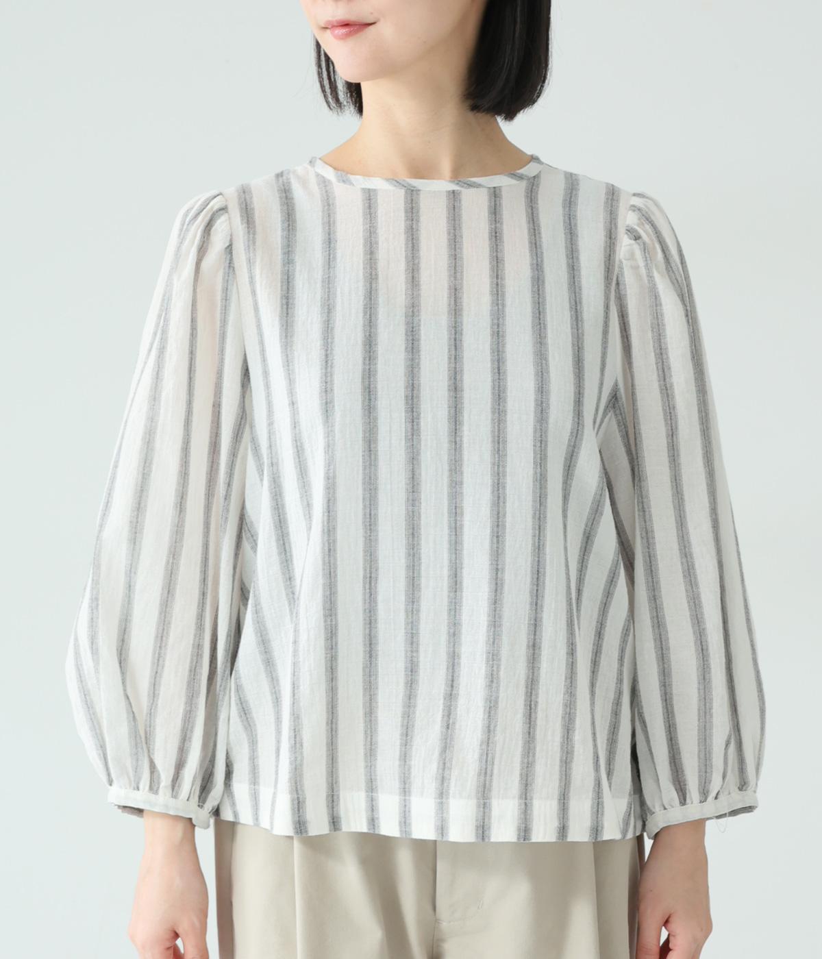 軽やかな生地にさわやかなストライプをのせ、やわらかな雰囲気に仕上げました。ふんわりとした袖のシルエットが女性らしさをプラス。パンツにもスカートにもなじむほどよい丈感で、幅広いスタイリングが楽しめます。