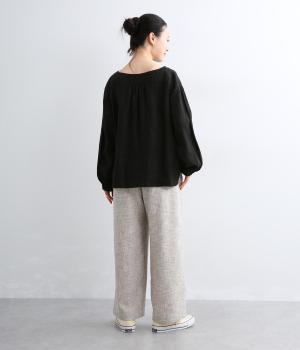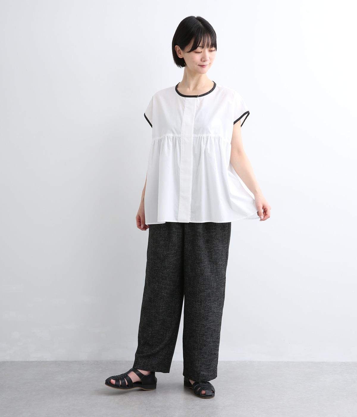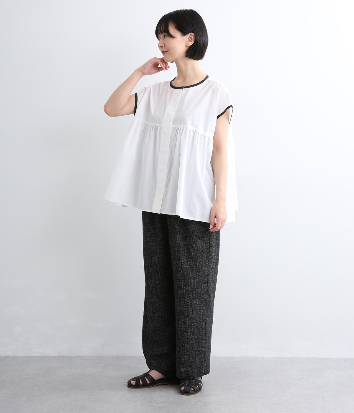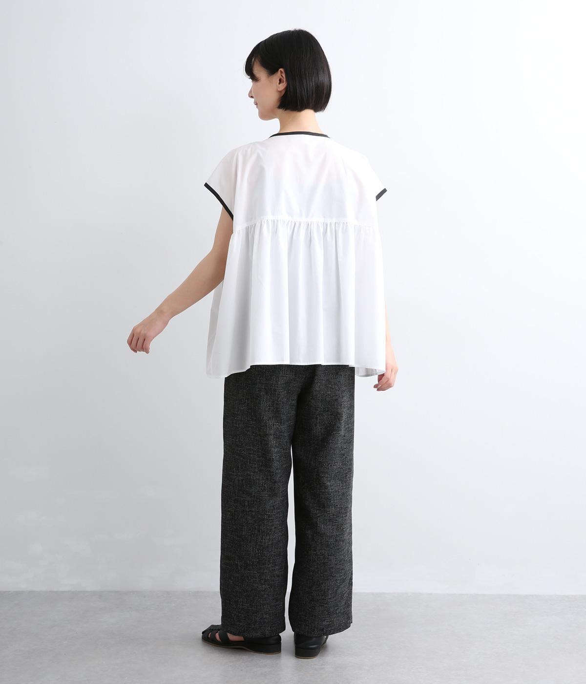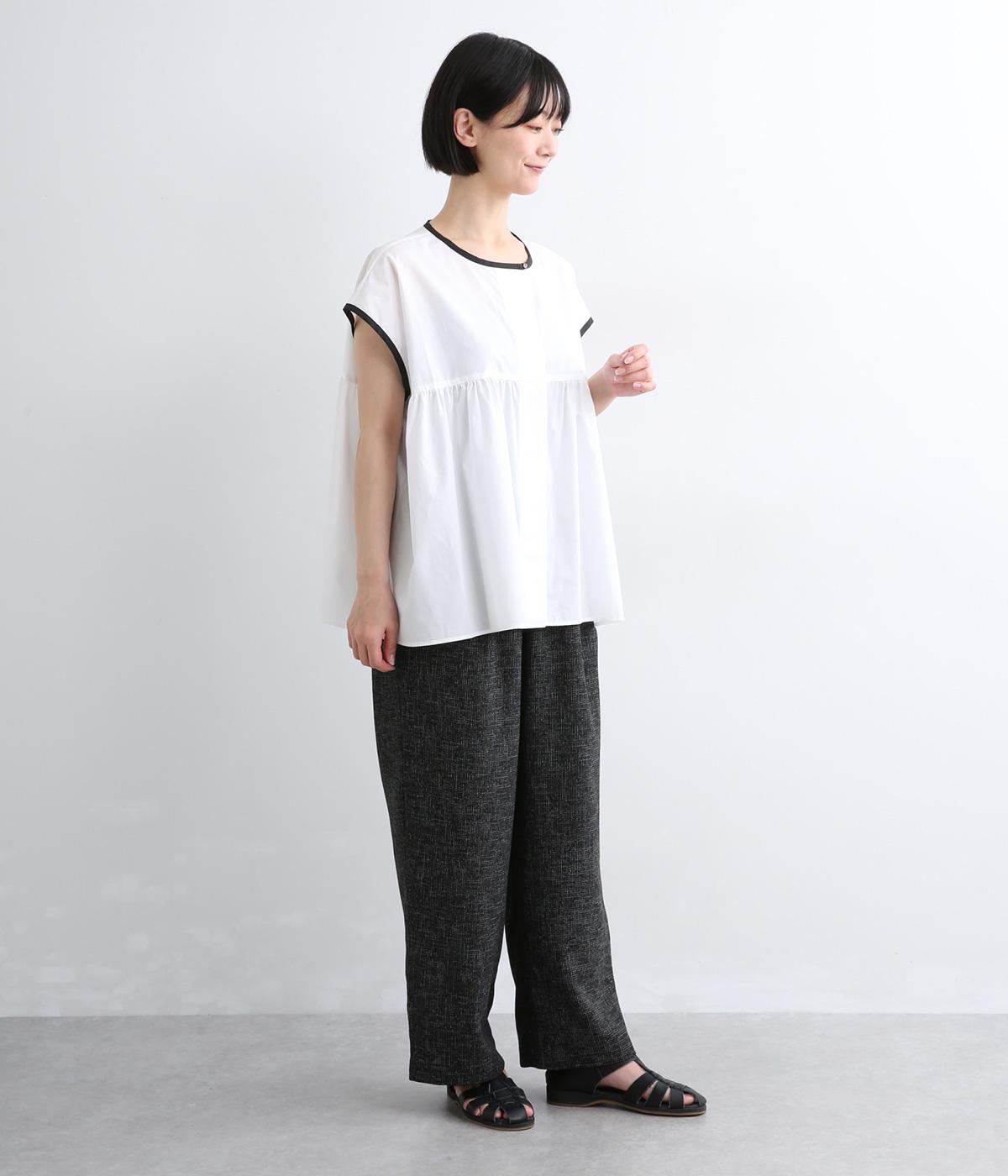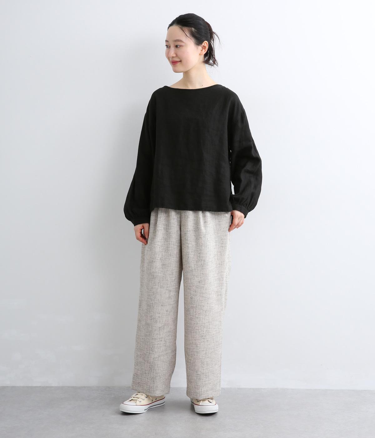 ツイード風のクラシカルな表情と軽やかさを併せ持ったパンツは、きちんと感のある装いにもラフなデイリースタイルにも活躍。タックを入れて腰まわりはゆとりを、裾はすっきりとテーパードシルエットに。ウエストは総ゴム&内紐のイージー仕様。