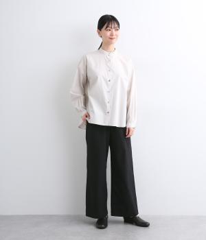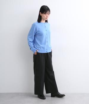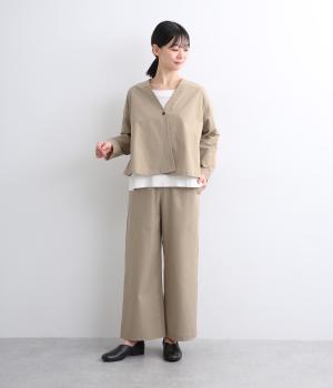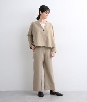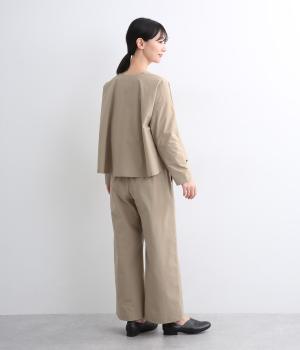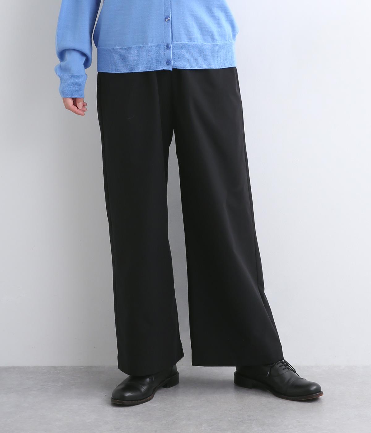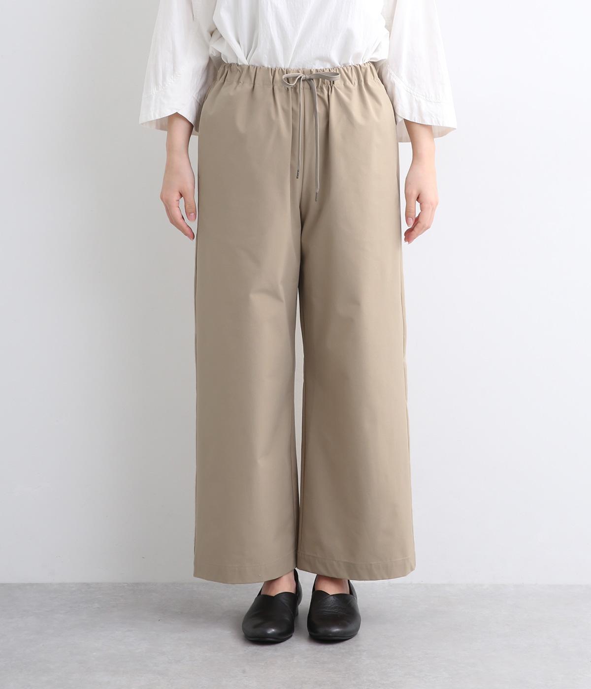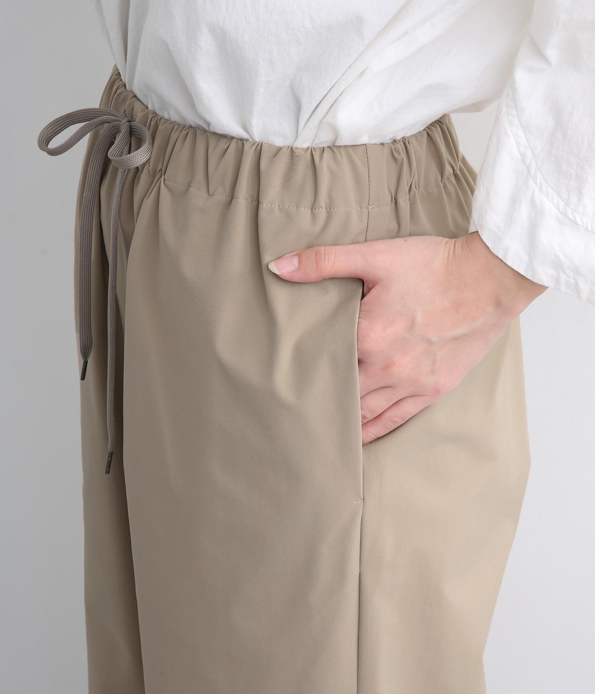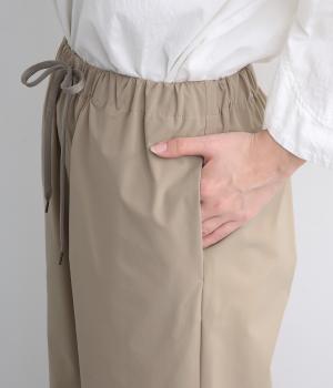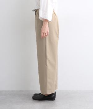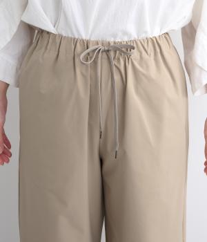 体のラインを拾いにくくすっきりとしたシルエットがきれい見えを叶えてくれるパンツ。ウエストオールゴムのイージー仕様で、フィット感や腰位置を調整できるアウト紐はデザインポイントにも。ジャケット合わせでオフィシャルシーンにも活躍します。