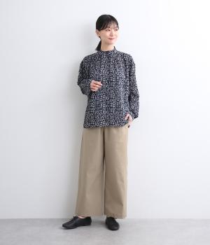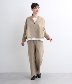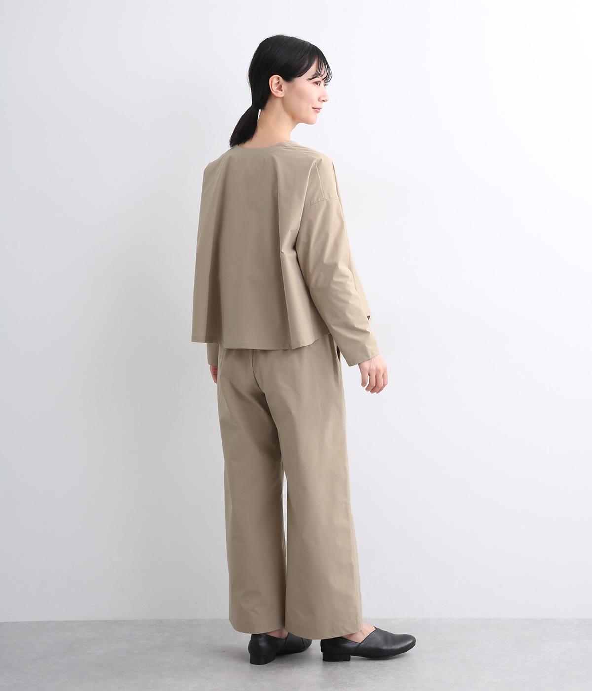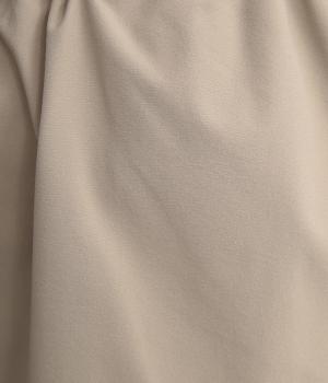 ちりめんのような細かなシボ感におだやかな光沢感がきれいめな印象を醸すポリエステル生地を採用。薄手ながらハリ感があり、撥水加工をほどこしたストレッチ生地で機能性も◎です。