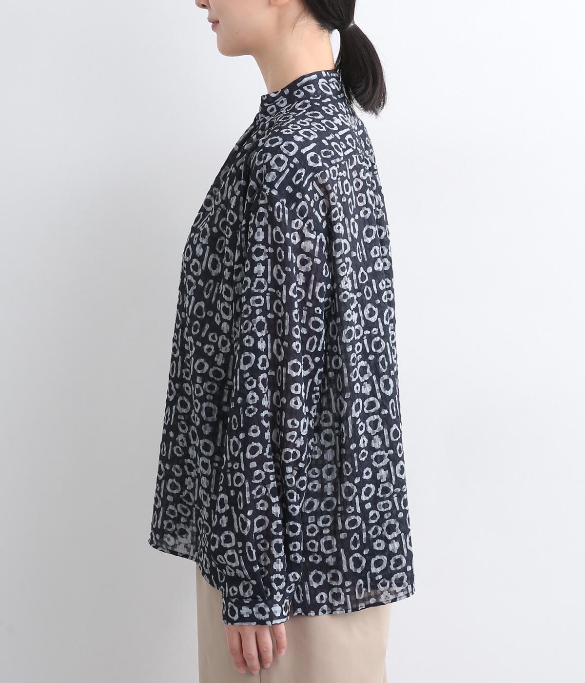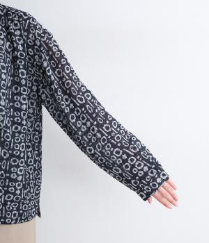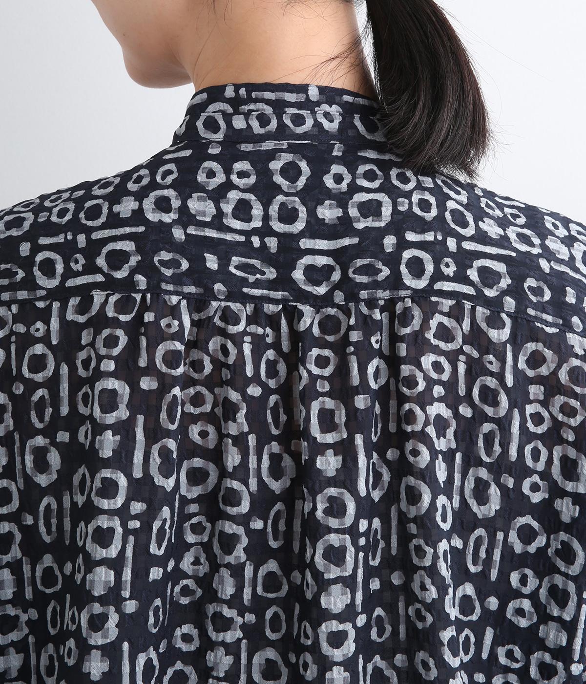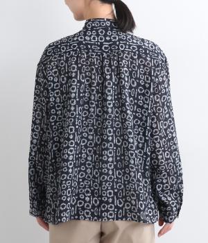 耐久性や速乾性に優れ、シワにもなりにくいのでデイリー使いに適しているポリエステル生地をセレクト。薄手のシアー素材が総柄でもうるさすぎず涼感のある仕上がりになっています。