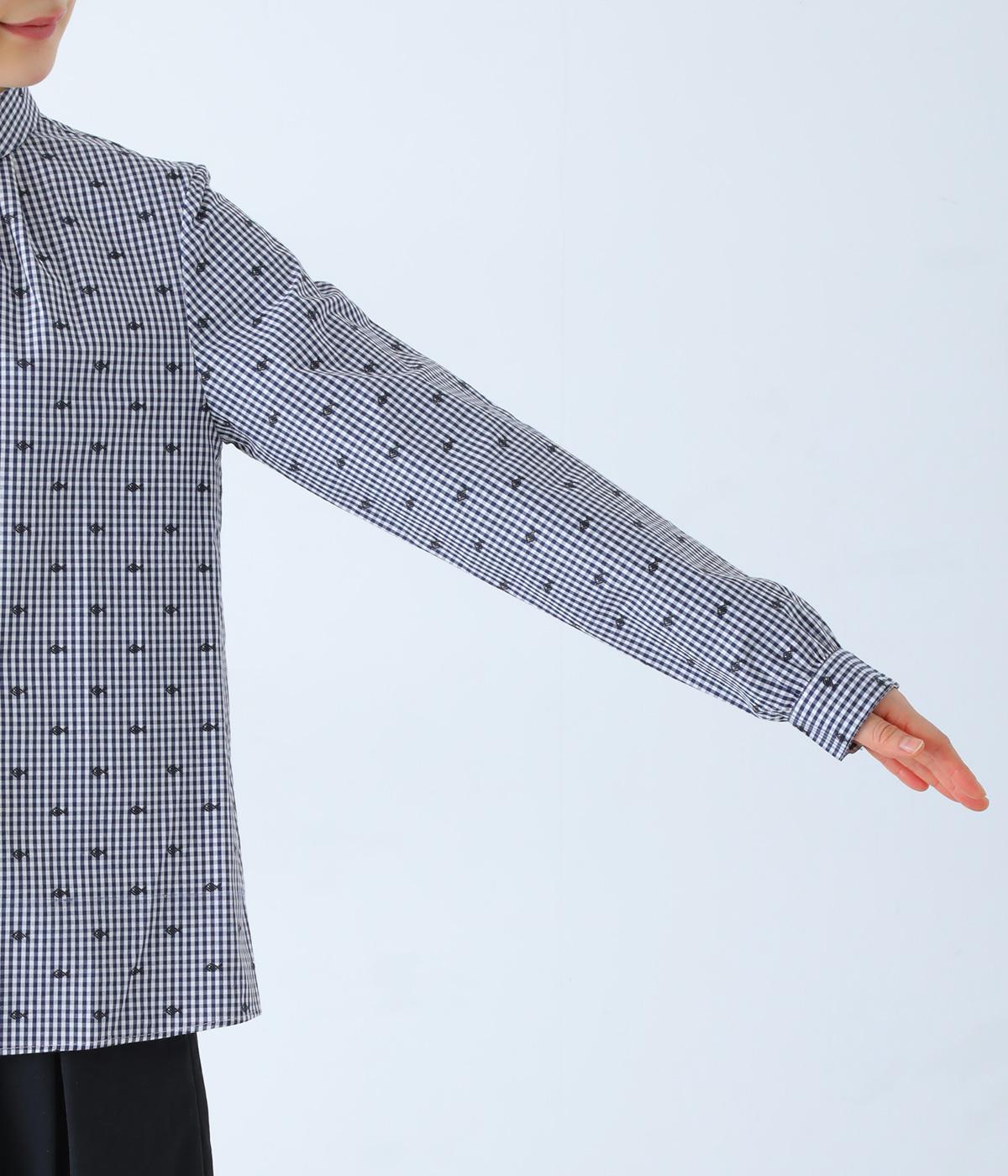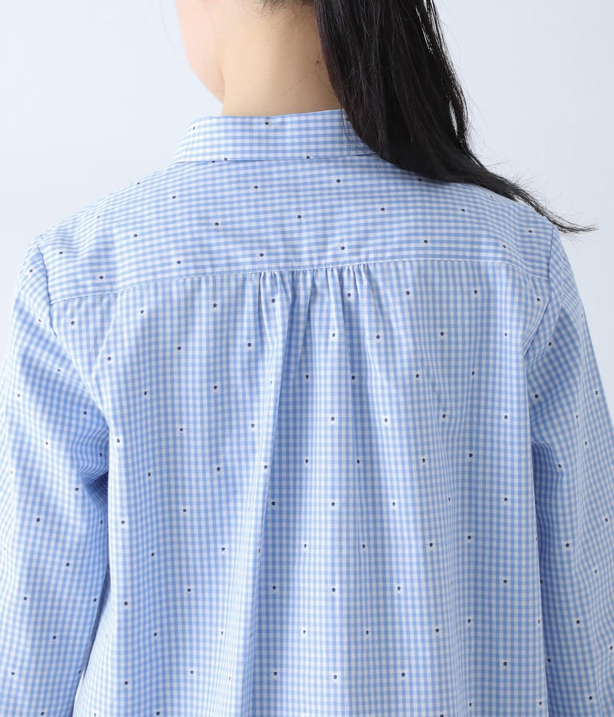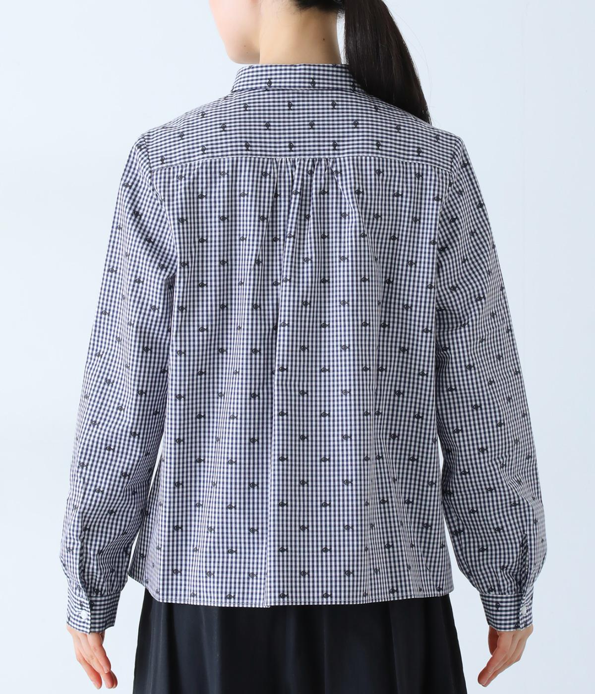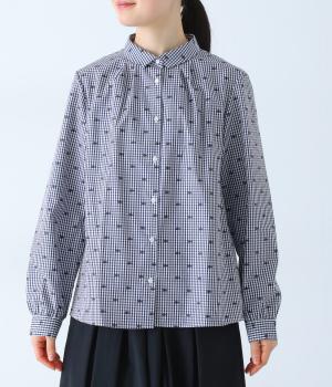 柄刺しゅうが奥行きのある表情を演出するブラウスです。スタンダードな型にところどころギャザーをほどこし、ふんわりとした立体感を描きます。カジュアルななかに華やかなアクセントを添えた、スタイリングのポイントになる一枚です。