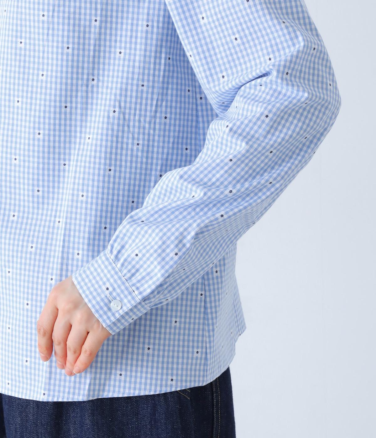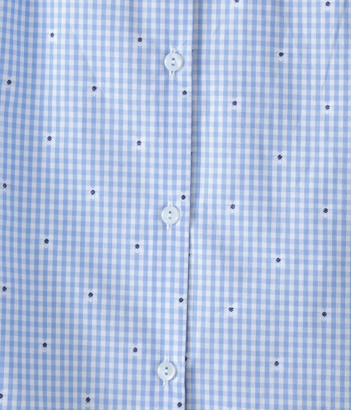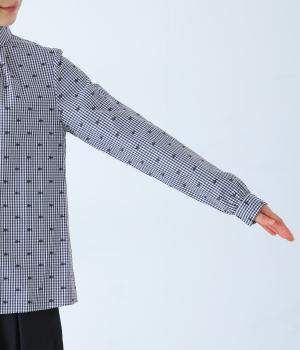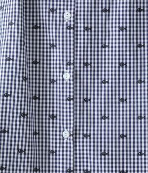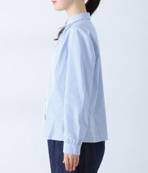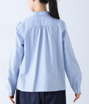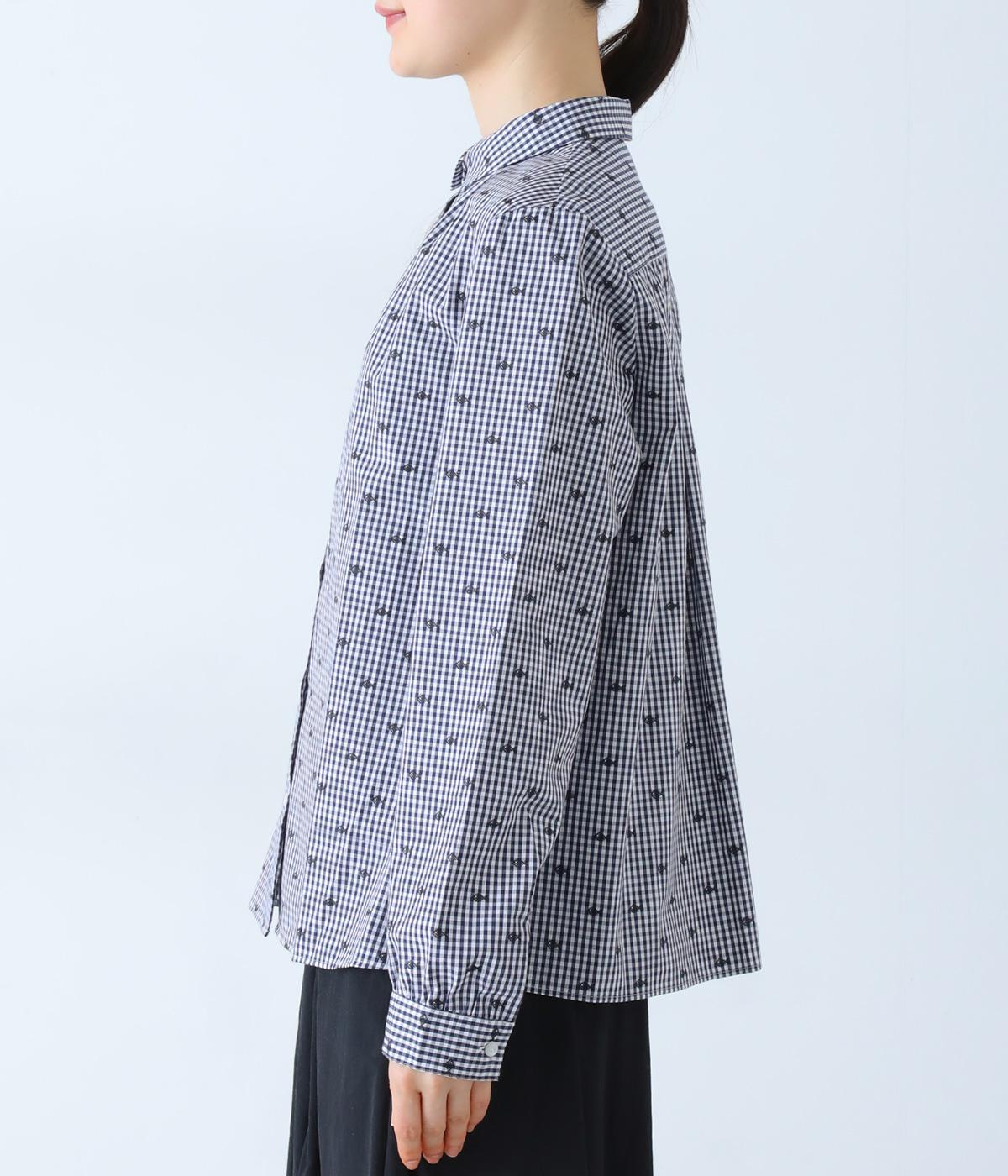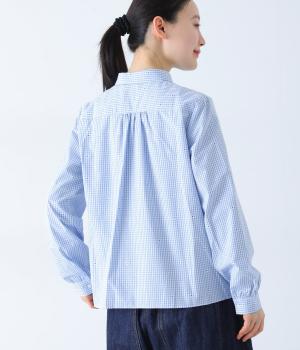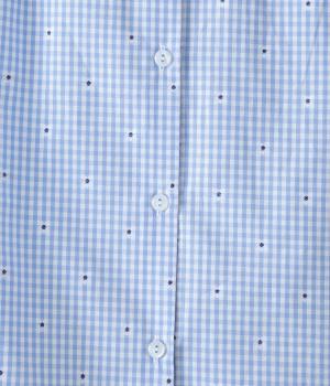 しなやかなハリがシルエットをきれいに表現するコットンブロード生地を使用しました。ギンガムチェック地に刺しゅうで柄をほどこしています。さらりと心地よい肌ざわりの素材感です。