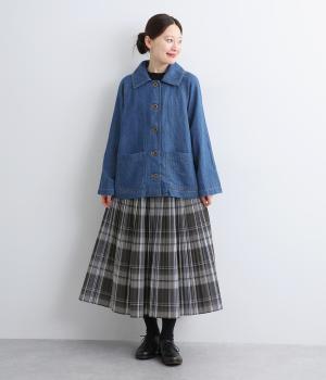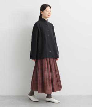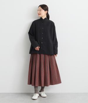 さらりとした心地よい肌ざわりが魅力の軽やかなコットン混生地で仕立てています。適度な厚みで季節を問わずに着まわしやすいのがグッド。細かなチェック柄を全体にあしらっています。