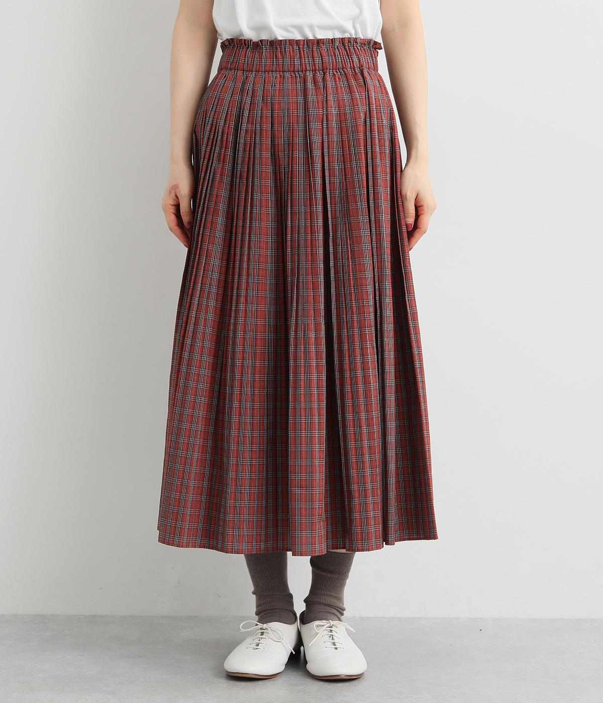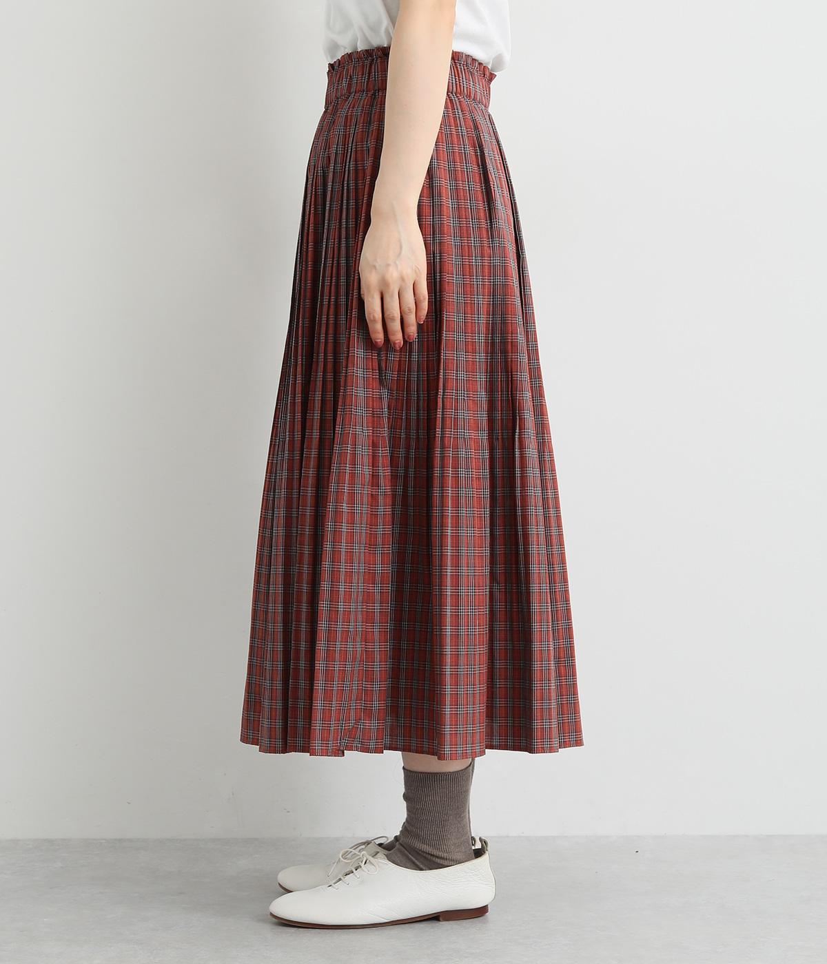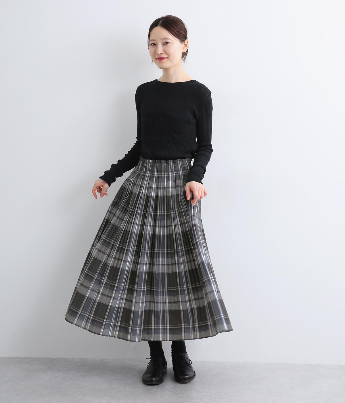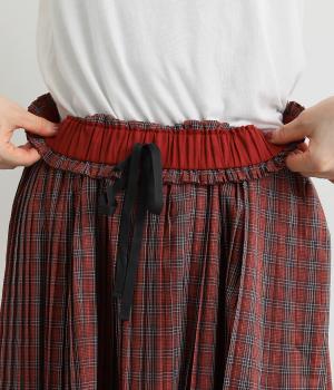 裾に向かってひだを無くした、きれいに広がるAラインシルエットの消しプリーツスカート。歩くたびに生地が揺れる女性らしい佇まいが素敵です。子どもっぽくなりにくいシックなチェック柄も◎。ぐるりとゴム仕様のウエスト内側に紐を通してフィット感を高めています。