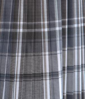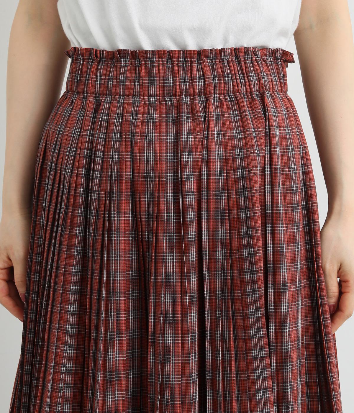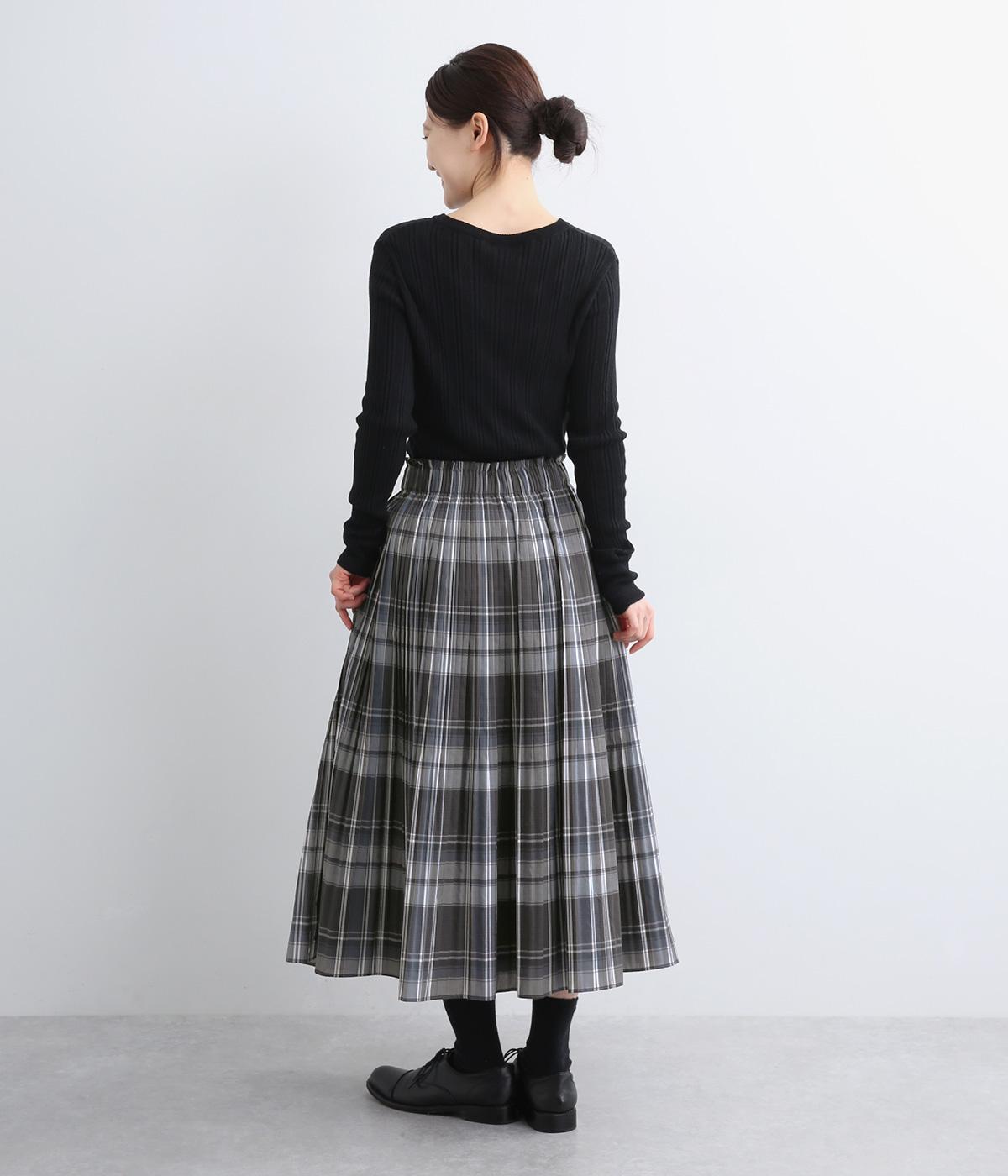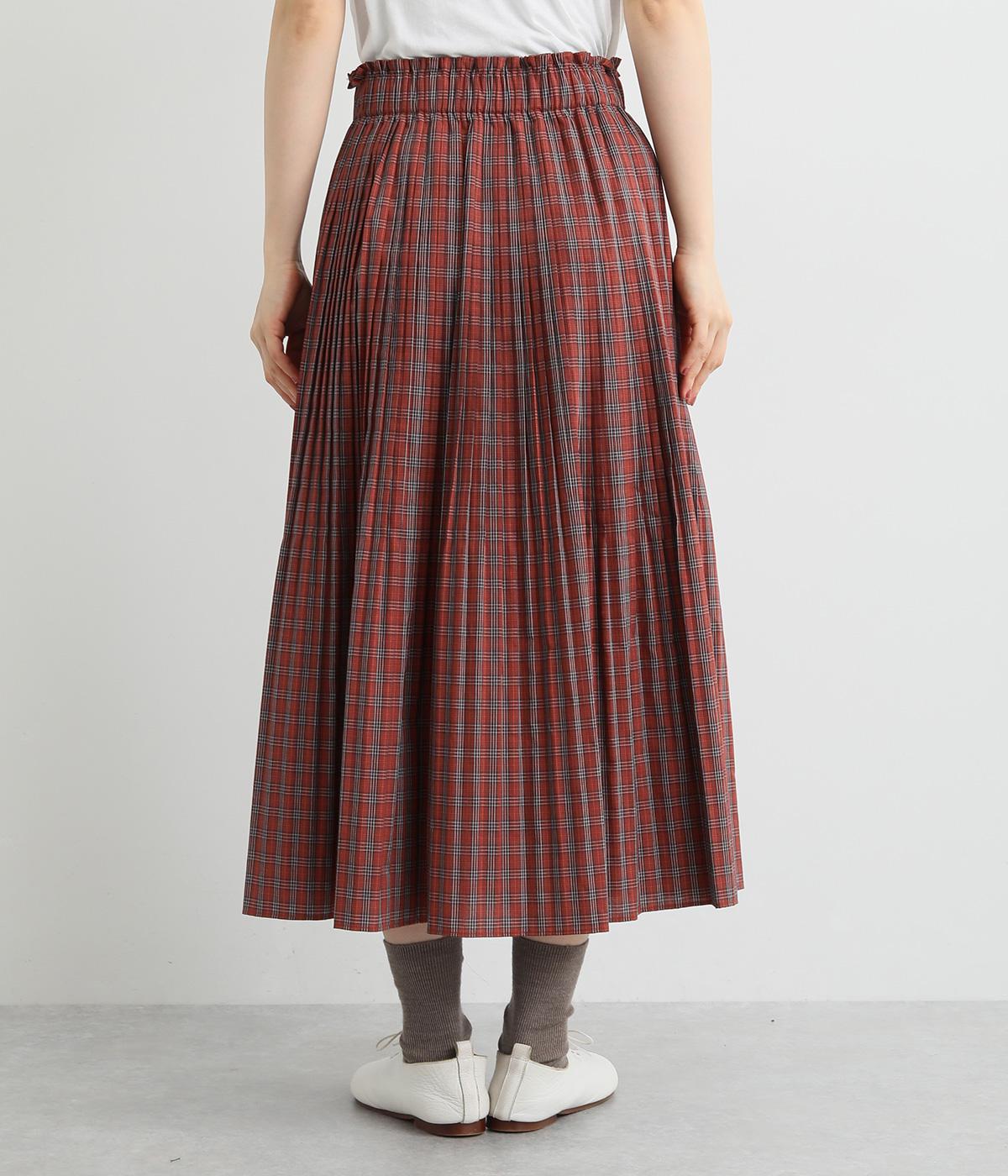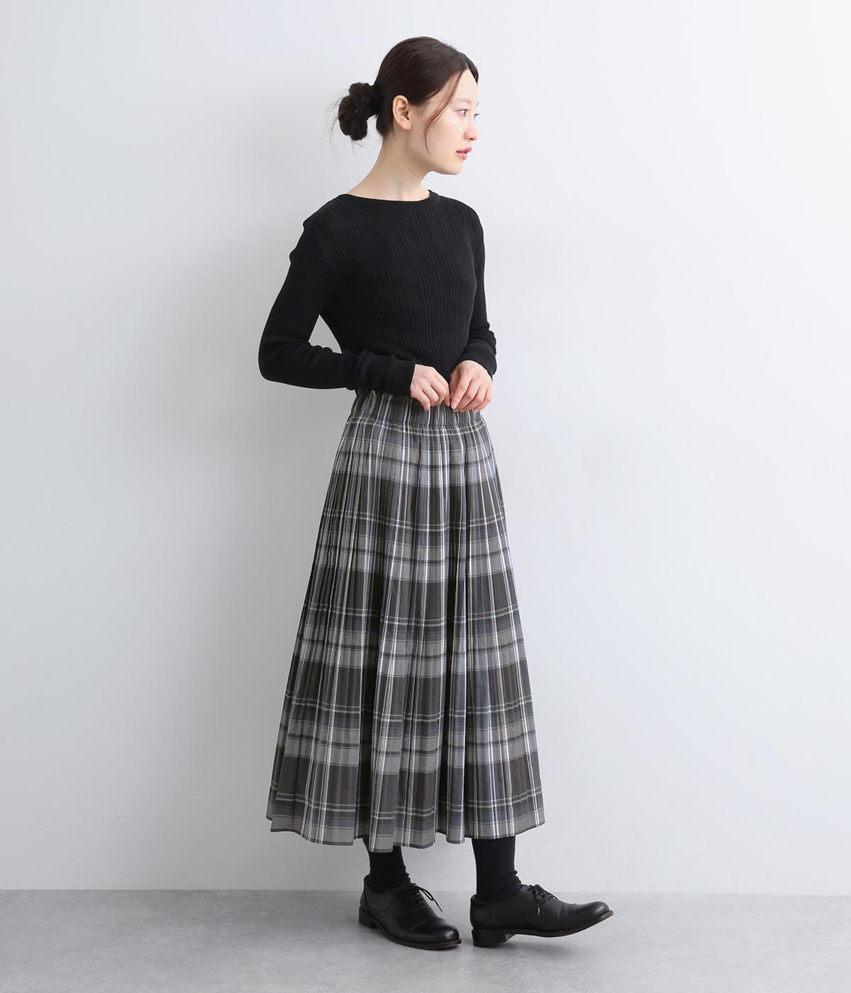 裾に向かってひだを無くした、きれいに広がるAラインシルエットの消しプリーツスカート。歩くたびに生地が揺れる女性らしい佇まいが素敵です。子どもっぽくなりにくいシックなチェック柄も◎。ぐるりとゴム仕様のウエスト内側に紐を通してフィット感を高めています。