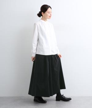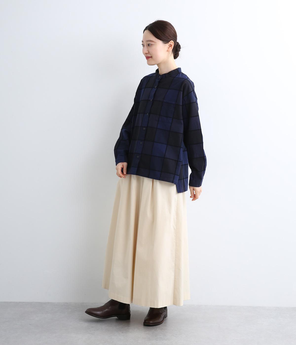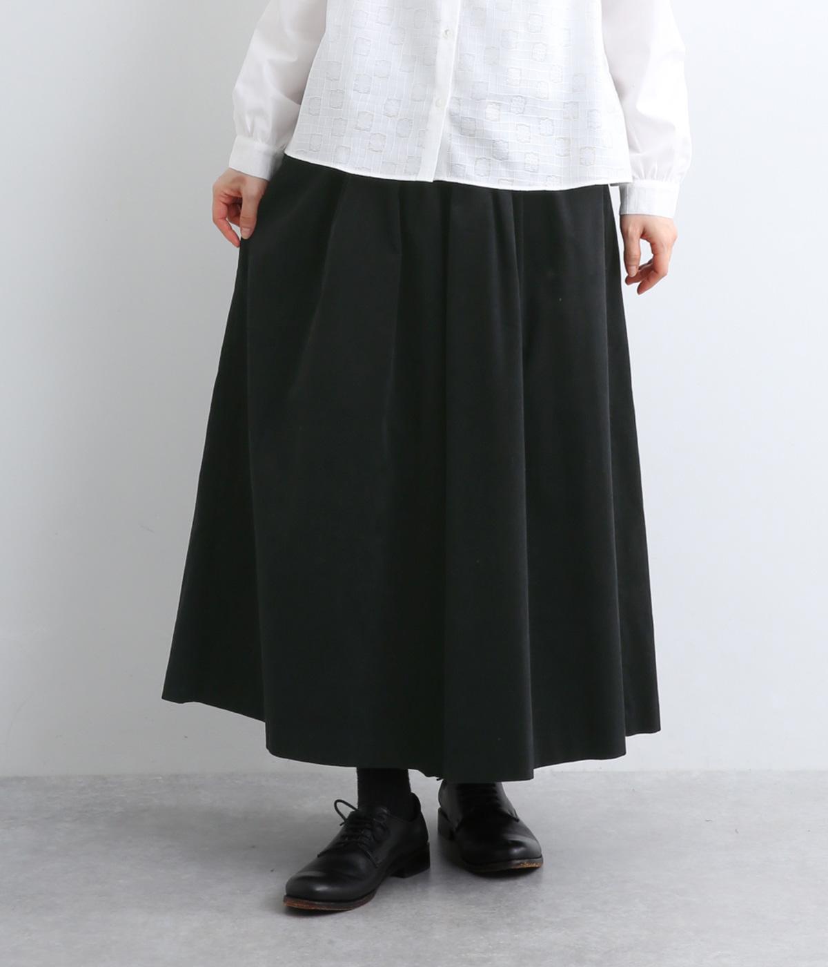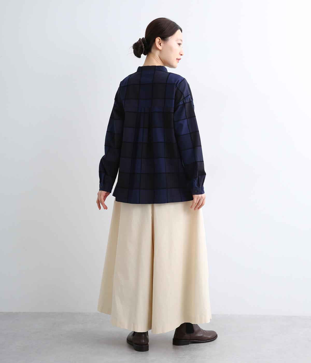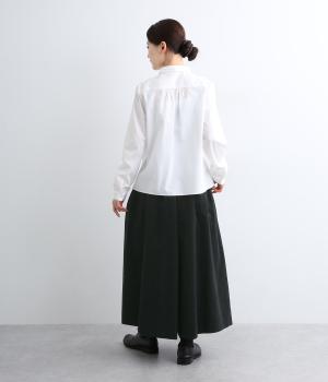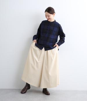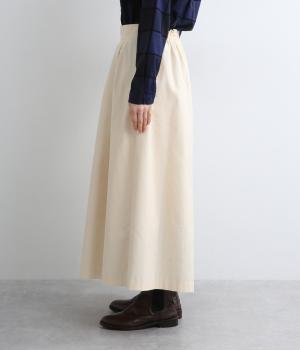 スカート見えする、タック入りのキュロットパンツです。たっぷりとしたシルエットにロング丈で存在感があり、パンツ仕立てなので動きやすさも◎。ウエストは後ろのみゴムを入れているので、前だけインしたきれいめな着こなしもおすすめ。