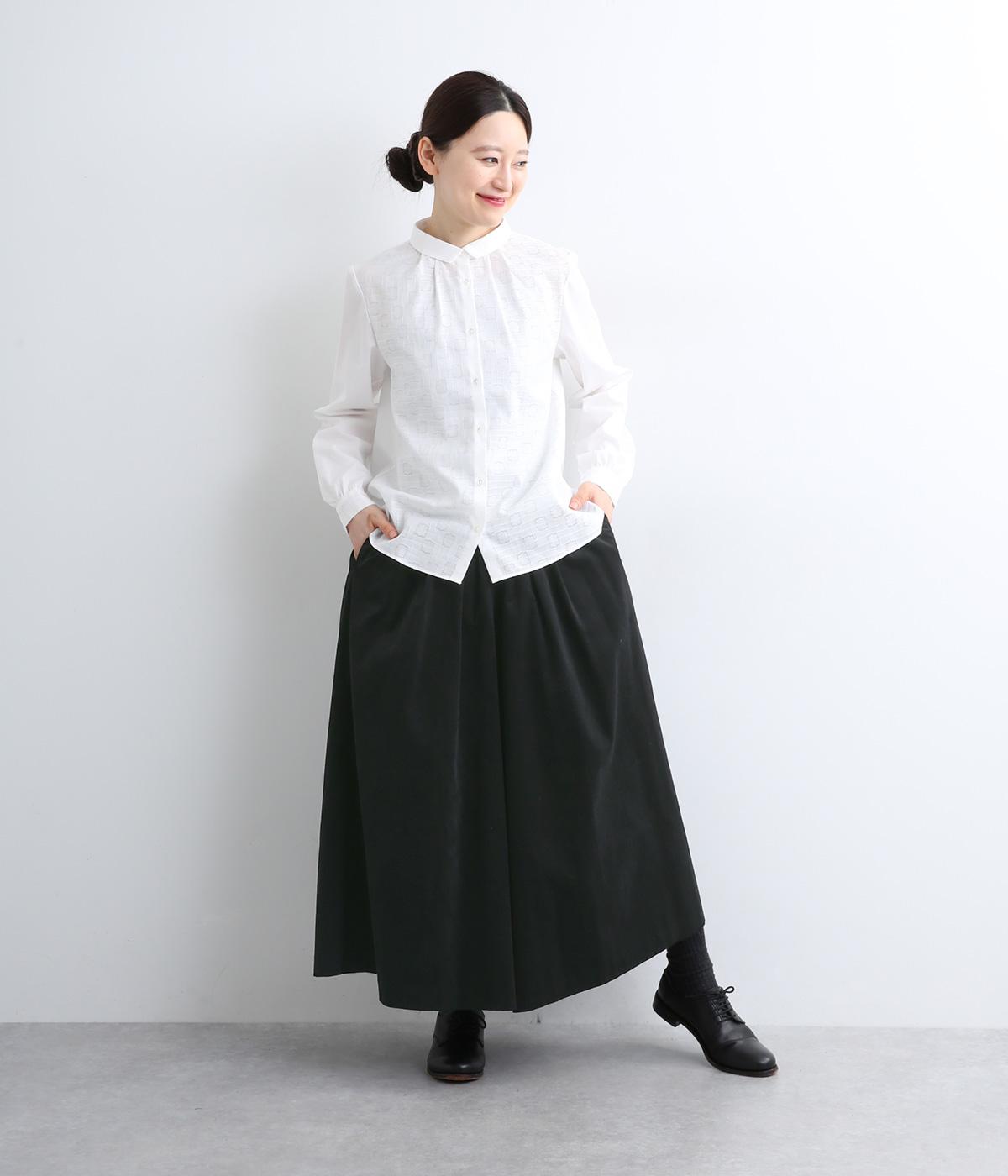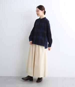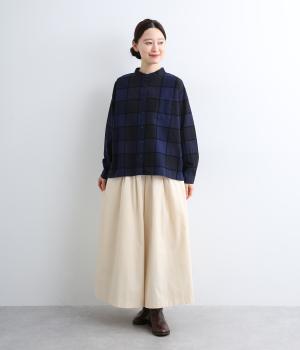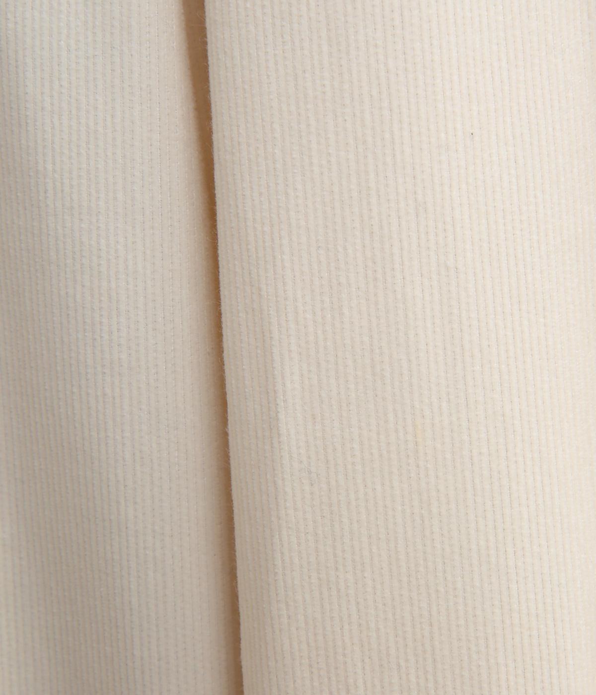 タテ方向に畝のあるコール天生地を使用しています。独特のあたたかみのある表情や光沢感が特徴で、生地自体は扱いやすいやや薄めの仕上がり。すべりのいい裏地つきで肌あたりも◎。
