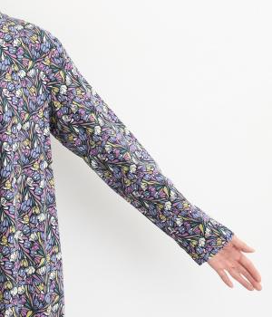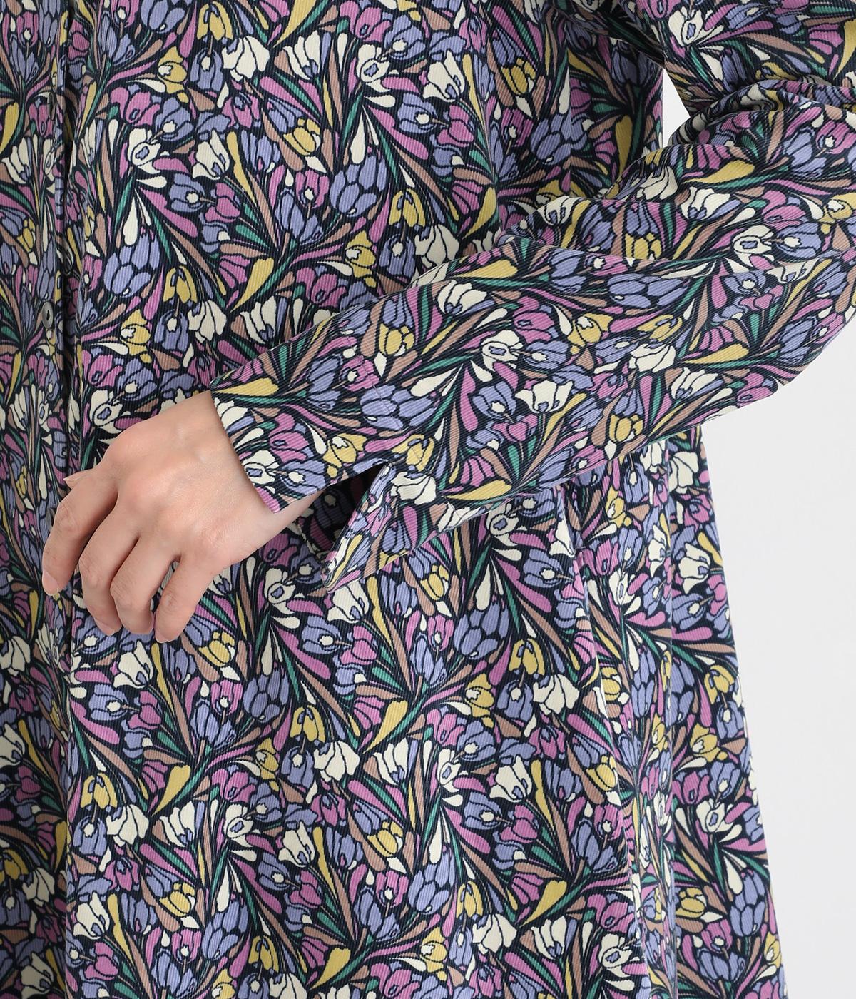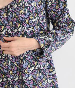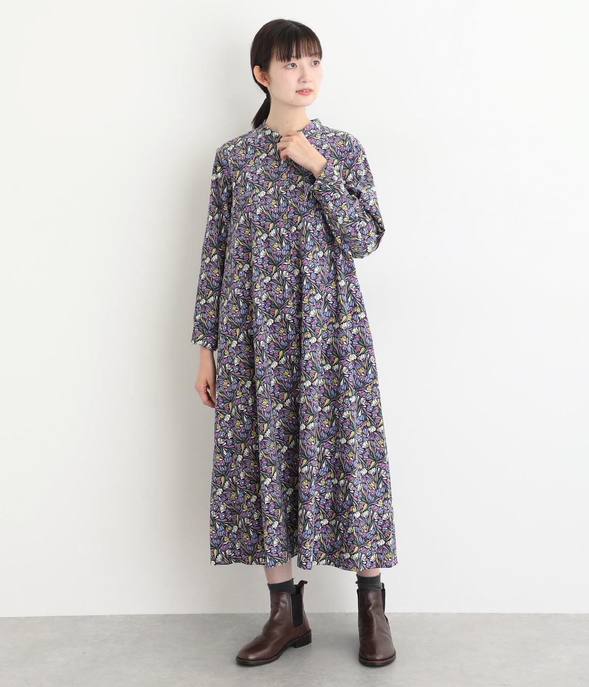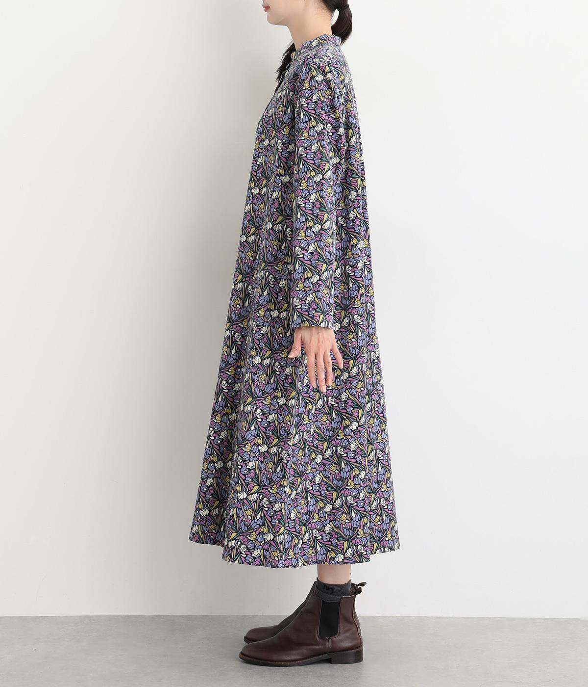華やかなリバティプリントが映える前開きワンピース。秋冬の装いに彩りを添えてくれます。ふんわりと広がるAラインが上品で女性らしい佇まいを演出。一枚でさらりと着るのはもちろん、レイヤードにサッと羽織っても活躍します。