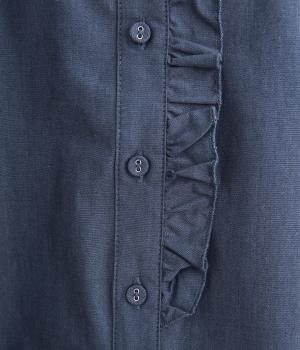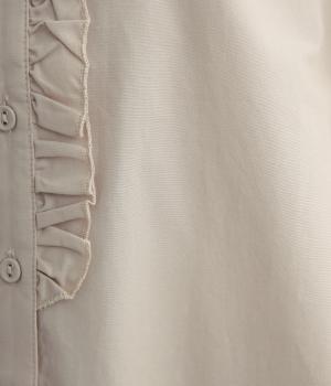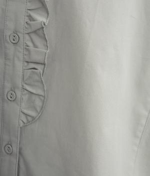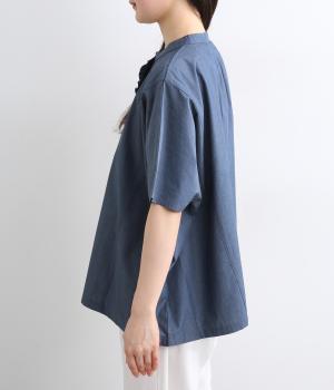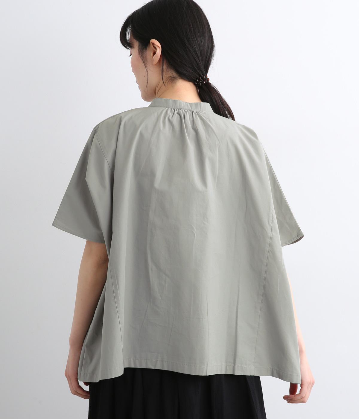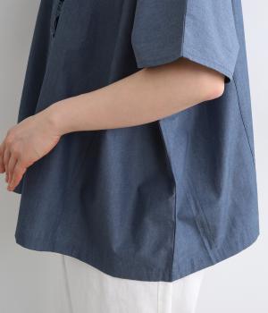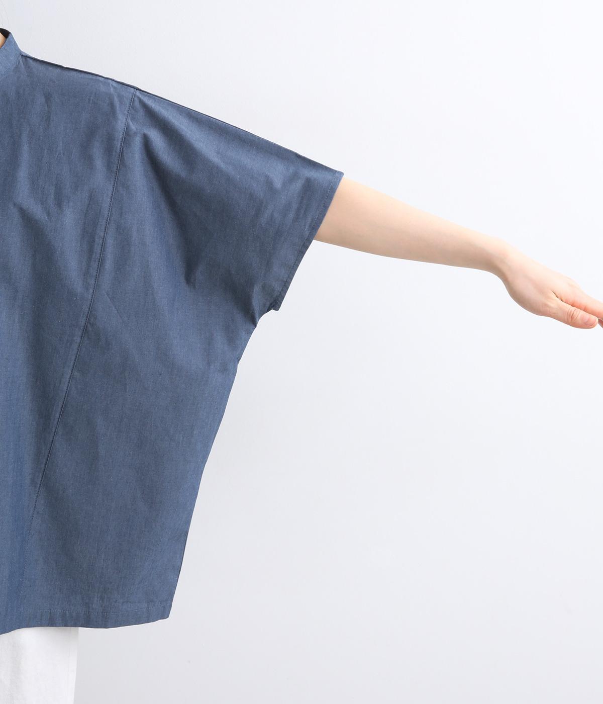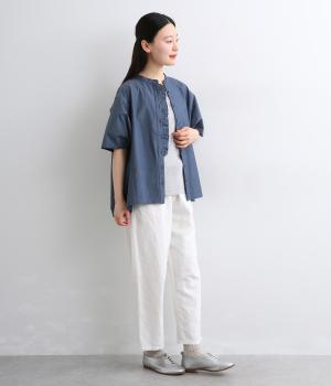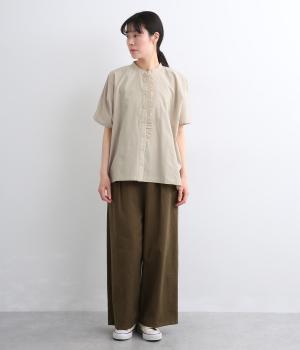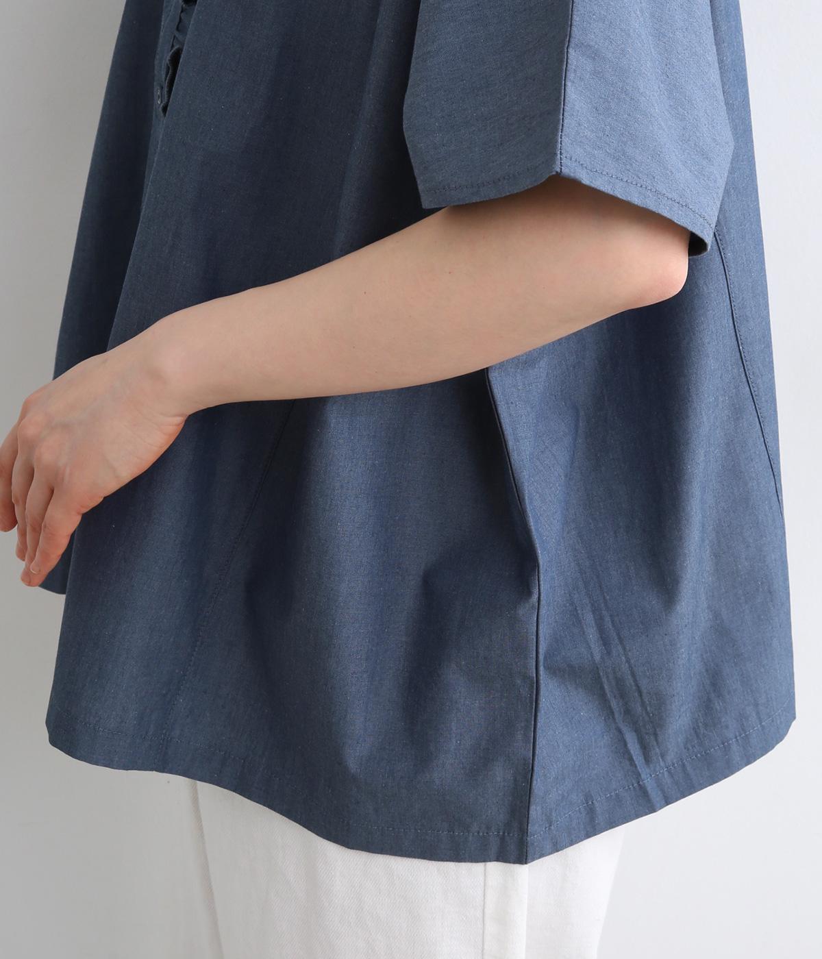 胸元のフリルがさりげない華やぎを添えるブラウス。体のラインを拾いにくいゆったりとしたシルエットで風が通り、暑い季節も心地よく着用できます。前後の縦切り替えがシルエットにほどよいアクセントを加えます。