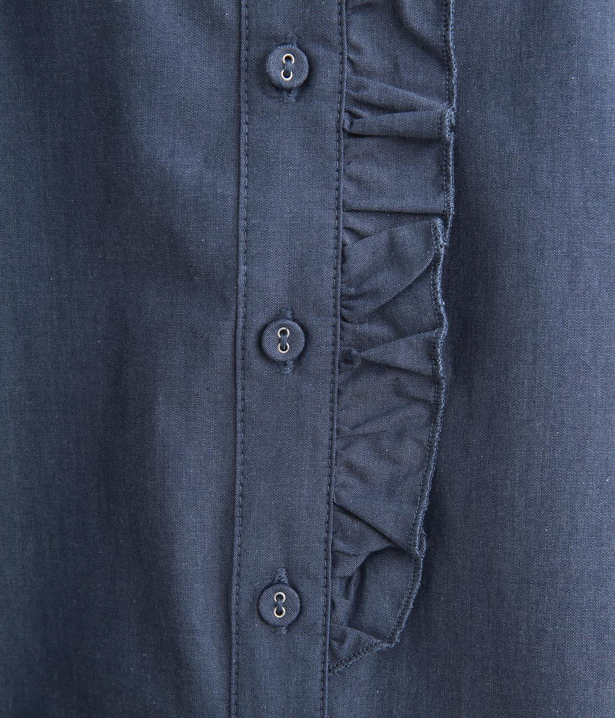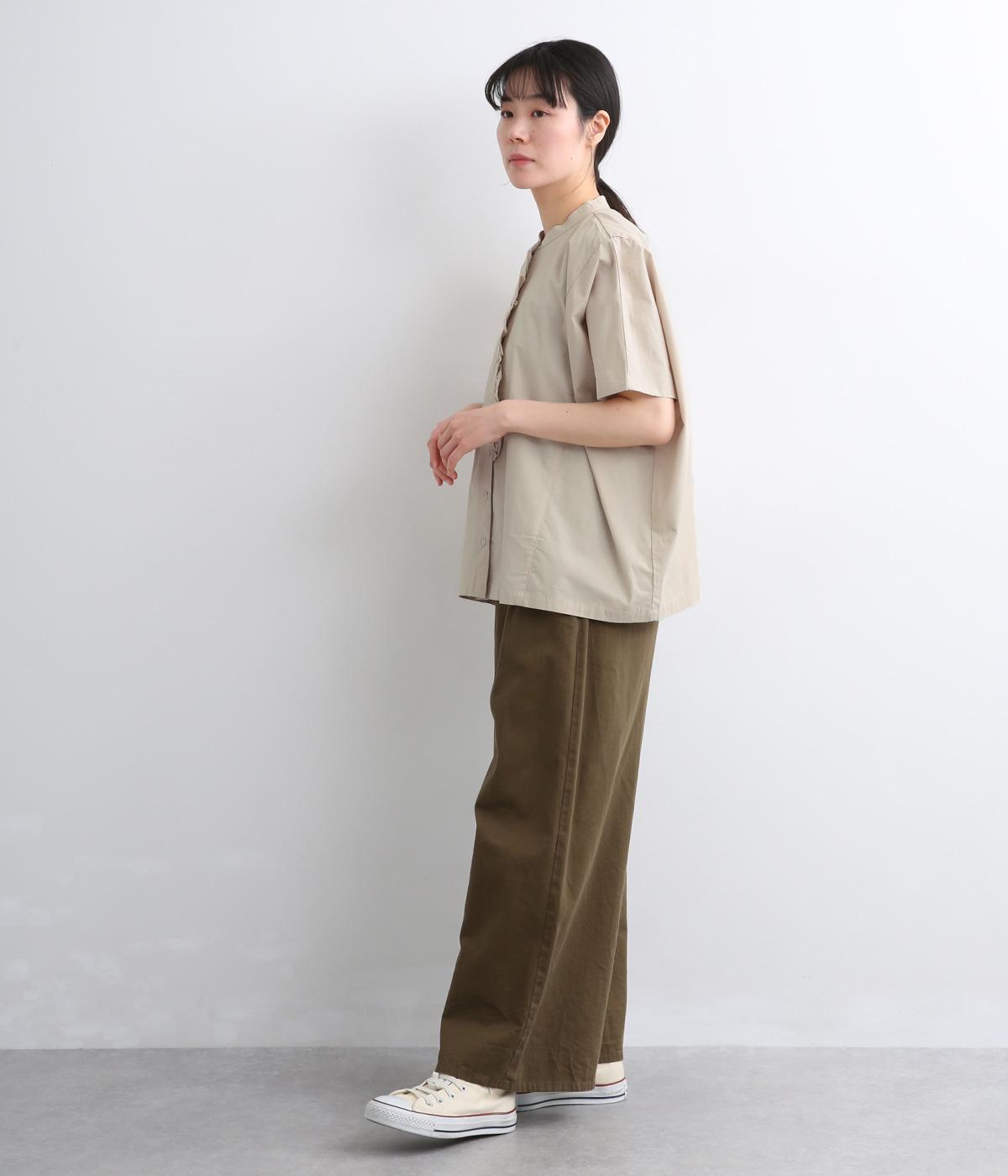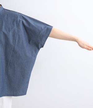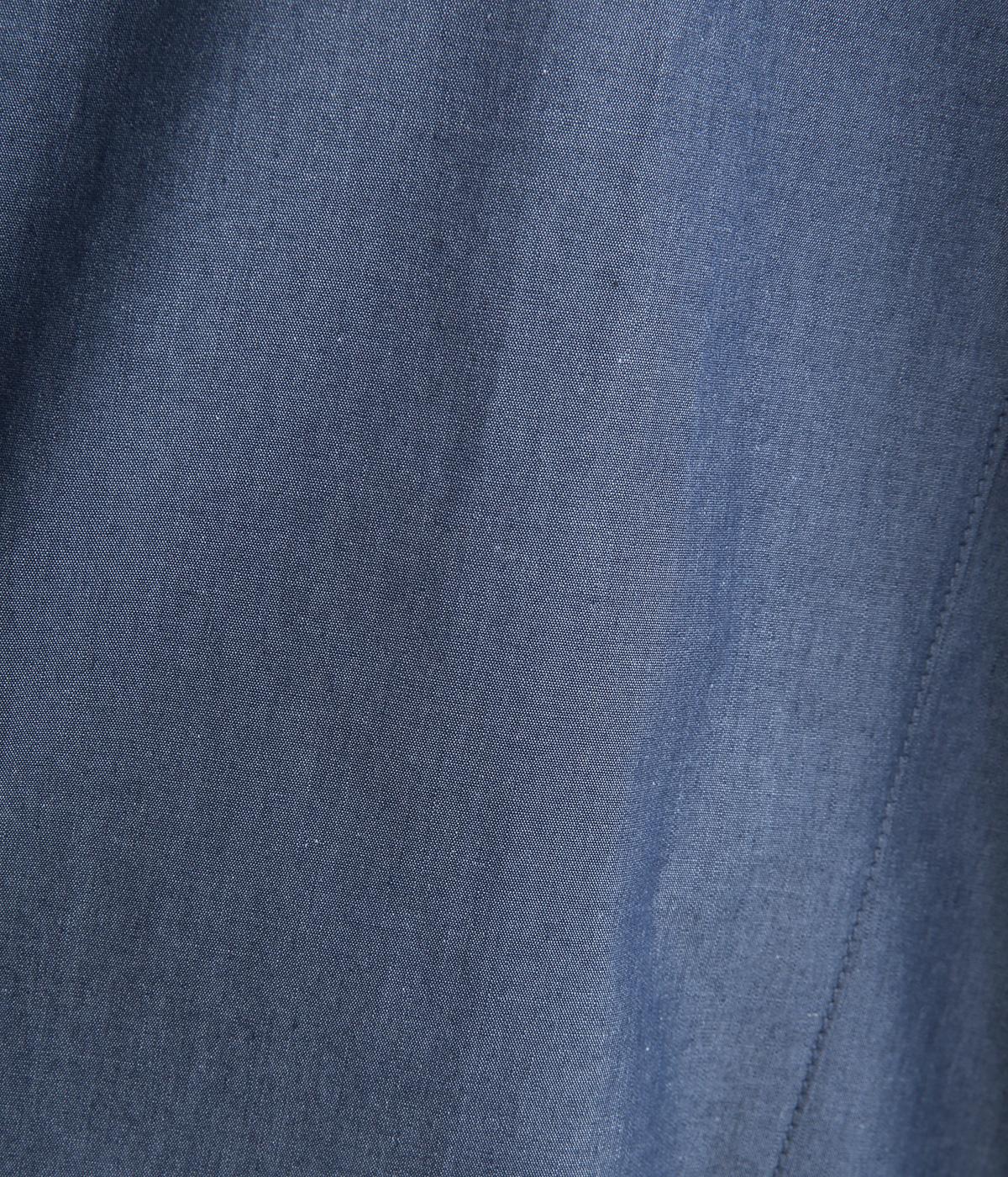 かたさの少ないさらりとしたコットンデニム生地を使用しています。ほどよいハリがシルエットをきれいにキープし、上品な印象の素材感です。