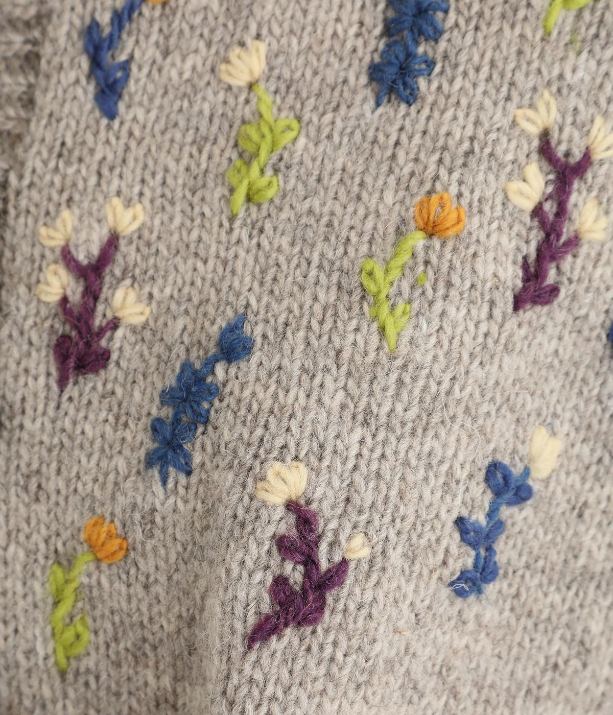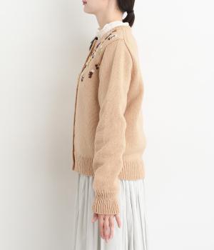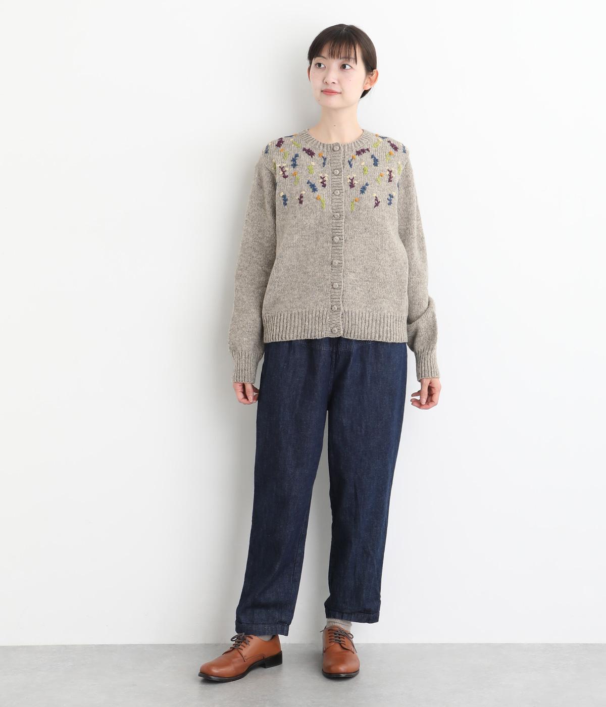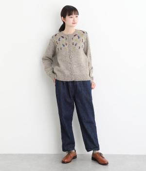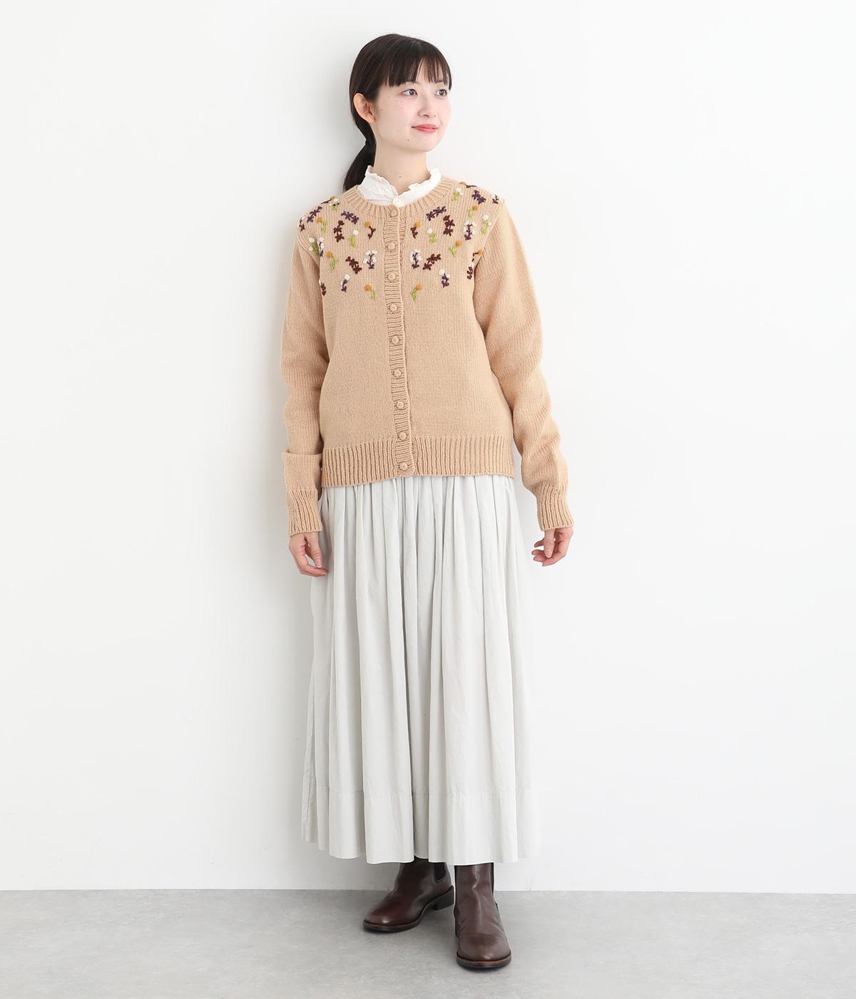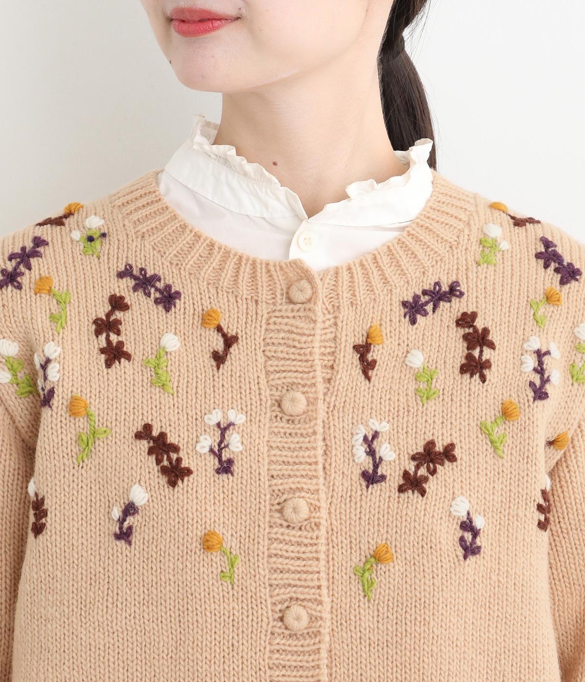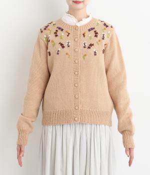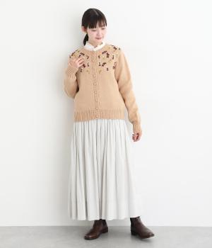 立体的な花柄刺しゅうがどこかレトロで愛らしい印象のカーディガン。ころんとしたボタンがさりげないアクセントに。リブ編みの縁まわりがカジュアルなニュアンスを添え、ほっこりとした雰囲気をすっきりとまとめています。