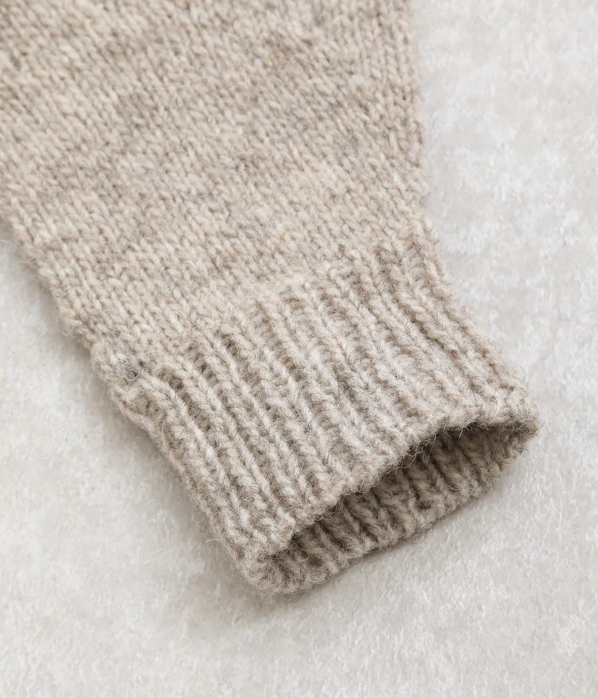 細番手のウール糸を、ペルーの職人がていねいに編み上げた、手しごとのぬくもりを感じる仕上がり。ほどよい密度でふんわりとあたたかく、寒い季節のお出かけに心強い素材感です。