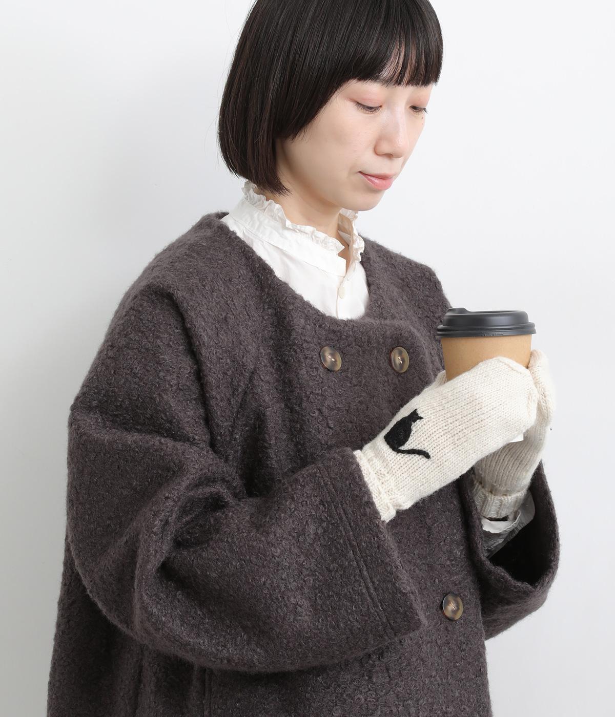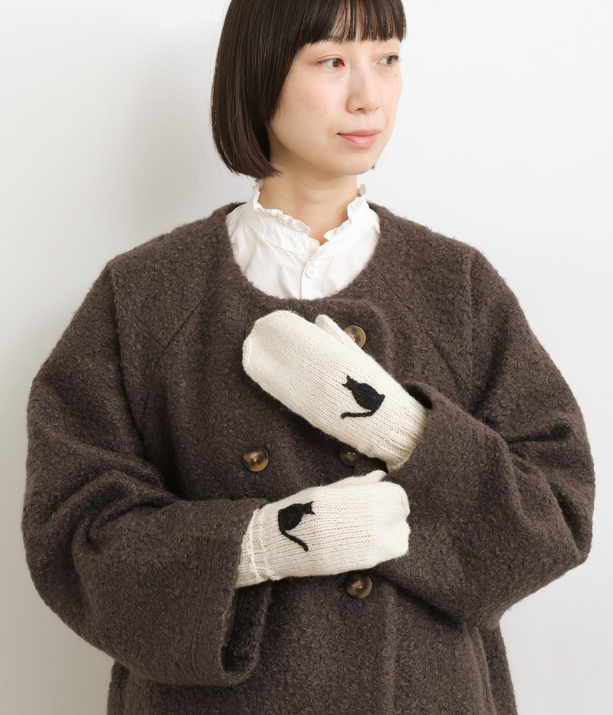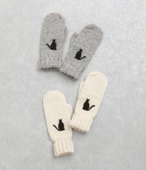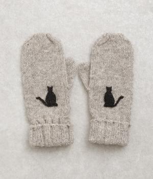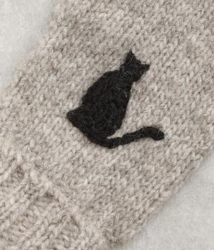 かわいらしいネコの姿を刺しゅうで表現した、やさしい雰囲気をまとうミトンです。手しごとのぬくもりを感じられる立体感が魅力。手首部分は折り返しリブでさりげなくボリュームを添え、メリハリをつくりました。コーディネートに季節の表情をプラスするアイテムです。