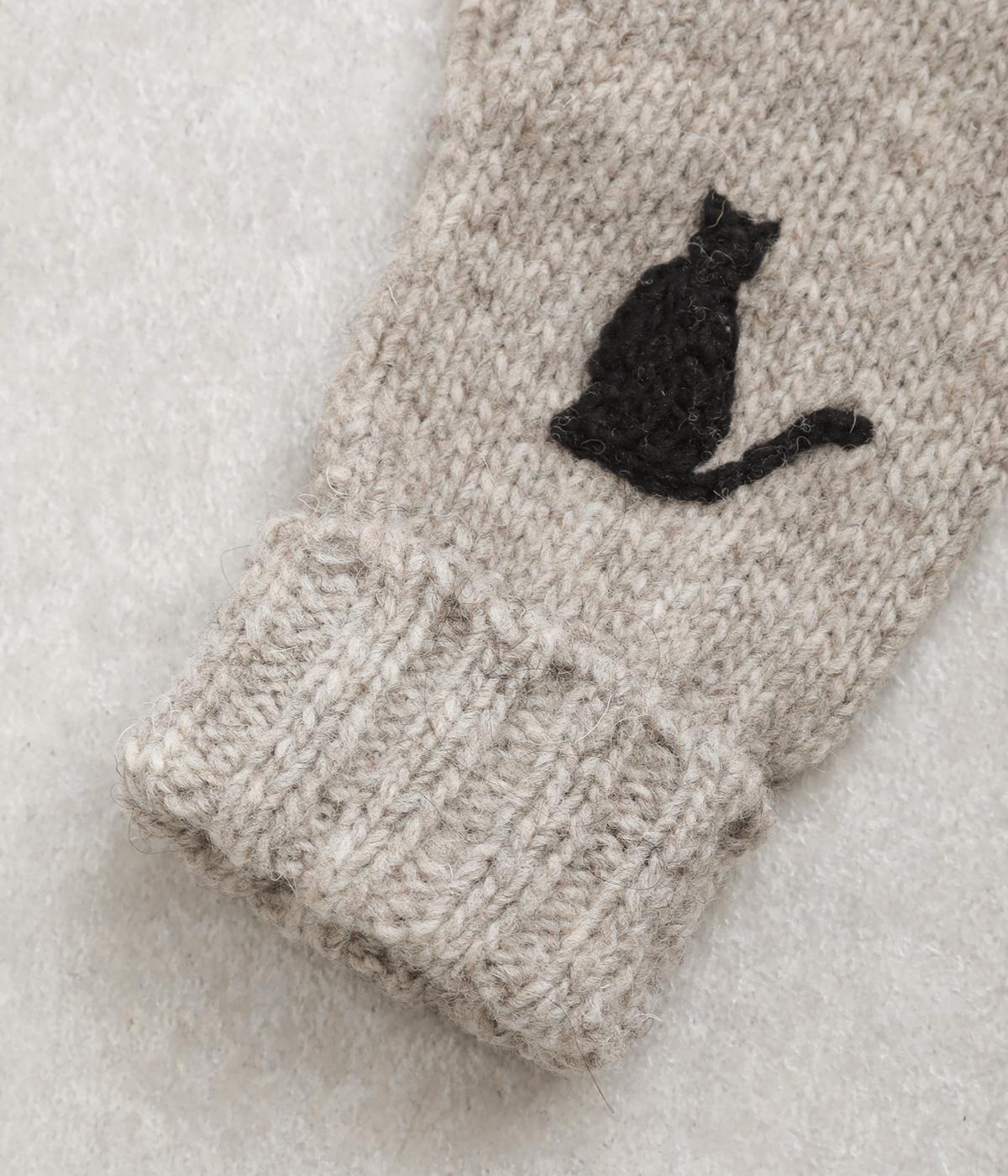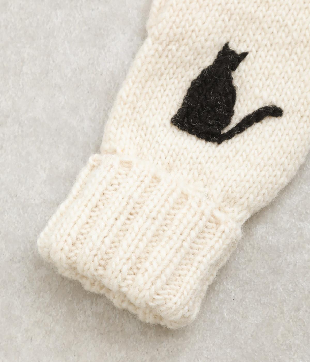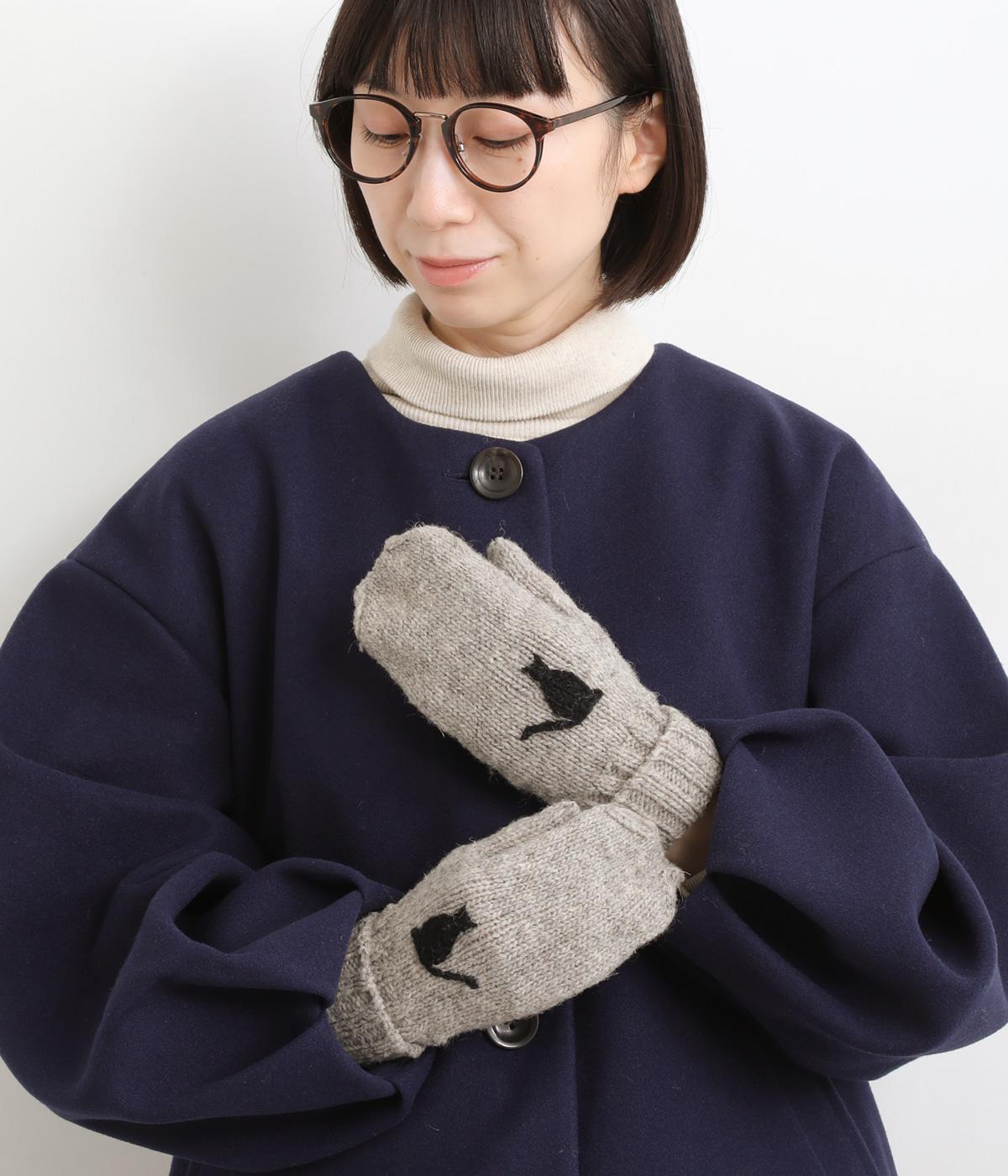 かわいらしいネコの姿を刺しゅうで表現した、やさしい雰囲気をまとうミトンです。手しごとのぬくもりを感じられる立体感が魅力。手首部分は折り返しリブでさりげなくボリュームを添え、メリハリをつくりました。コーディネートに季節の表情をプラスするアイテムです。