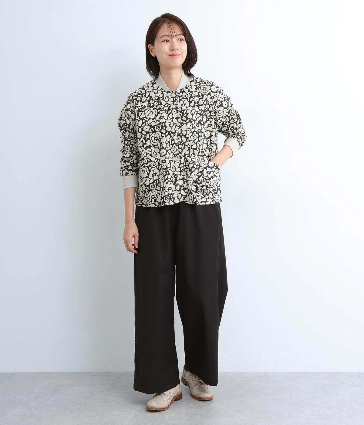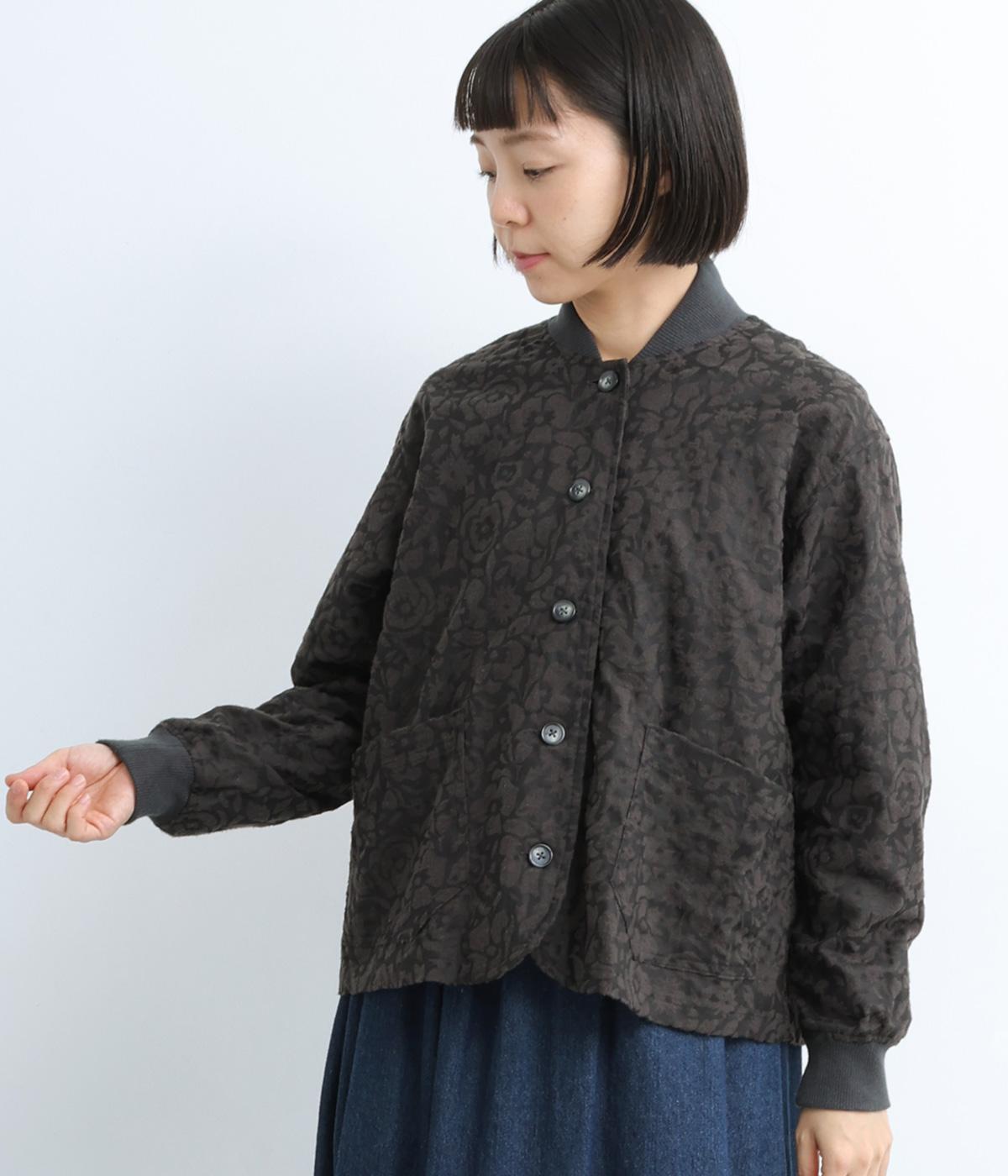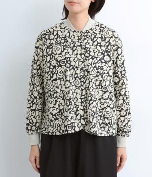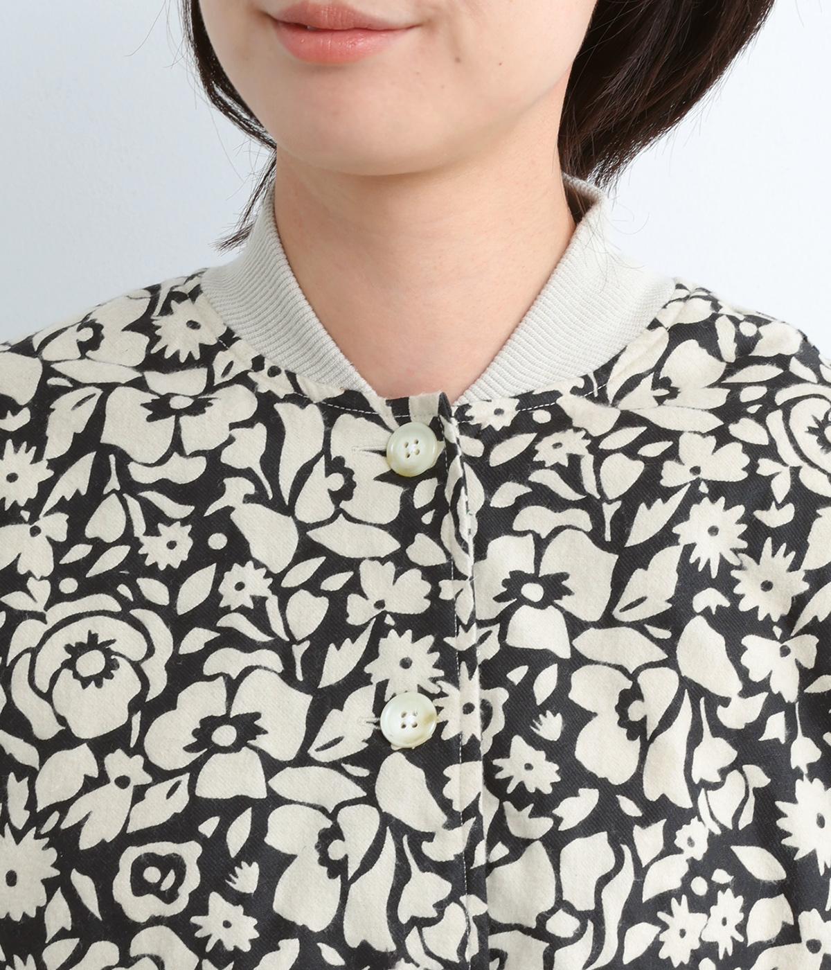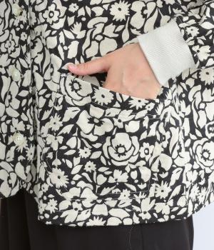 シックな雰囲気の花柄プリントが目をひくワークジャケットです。首元・袖口のリブや前面のポケットがカジュアル感を演出し、ほどよい抜け感をプラス。短めの丈でどんなボトムとも相性がよく、幅広いコーディネートに活躍します。