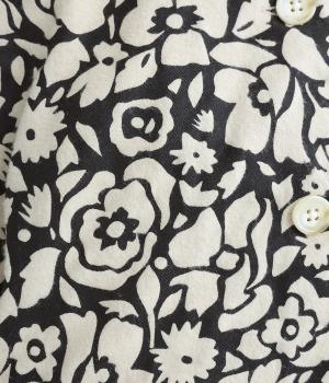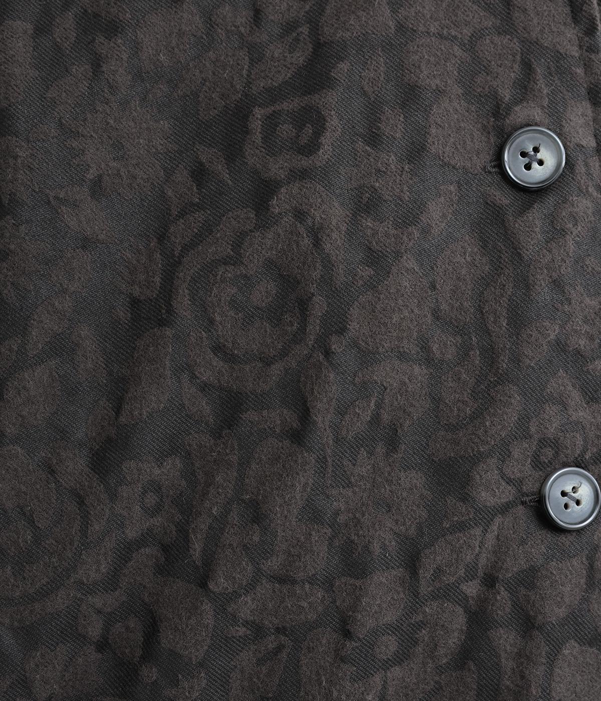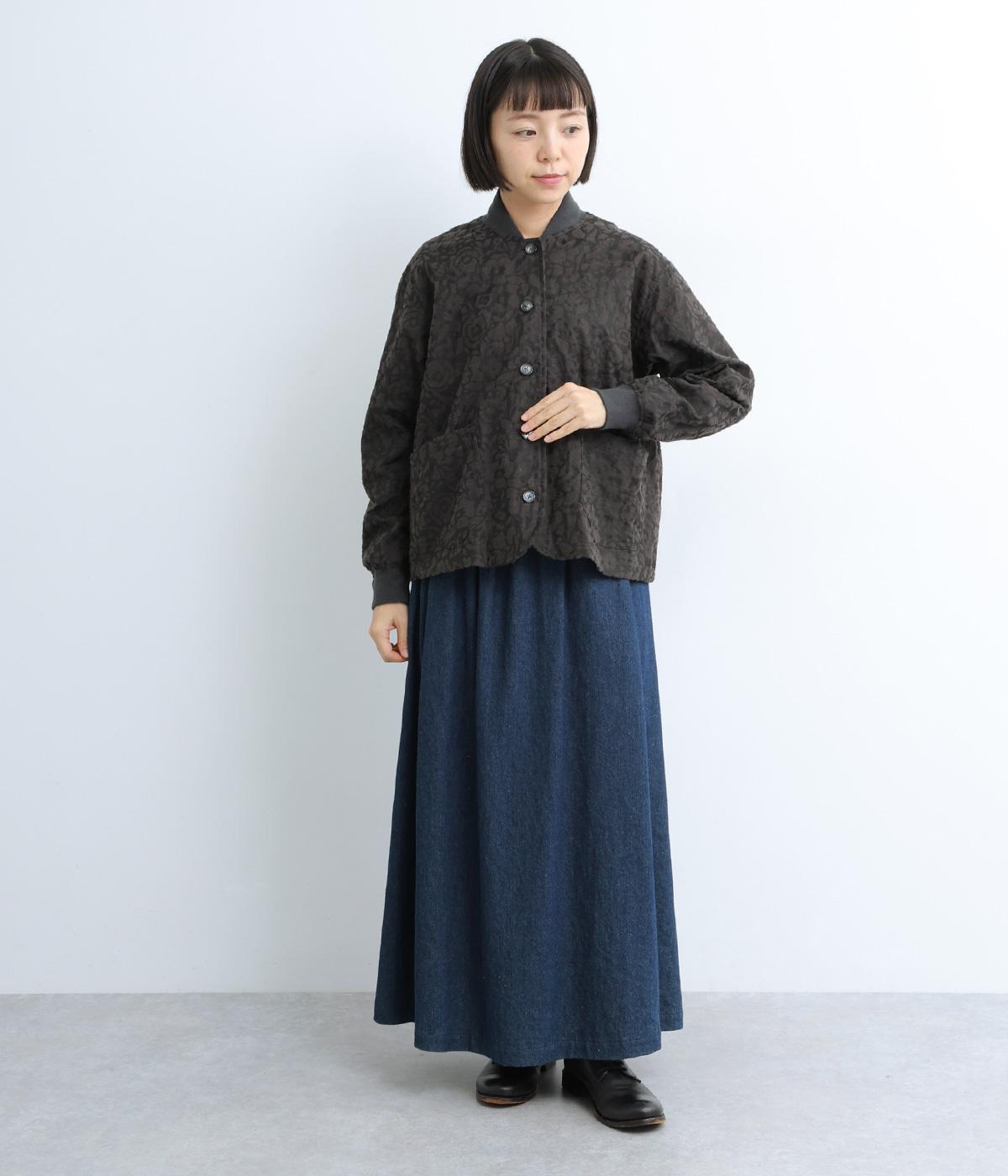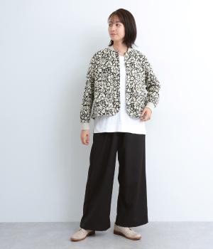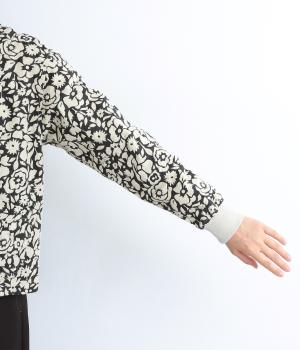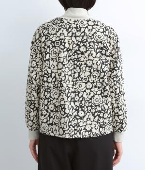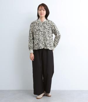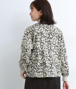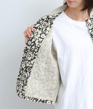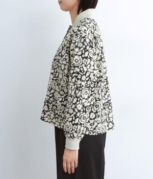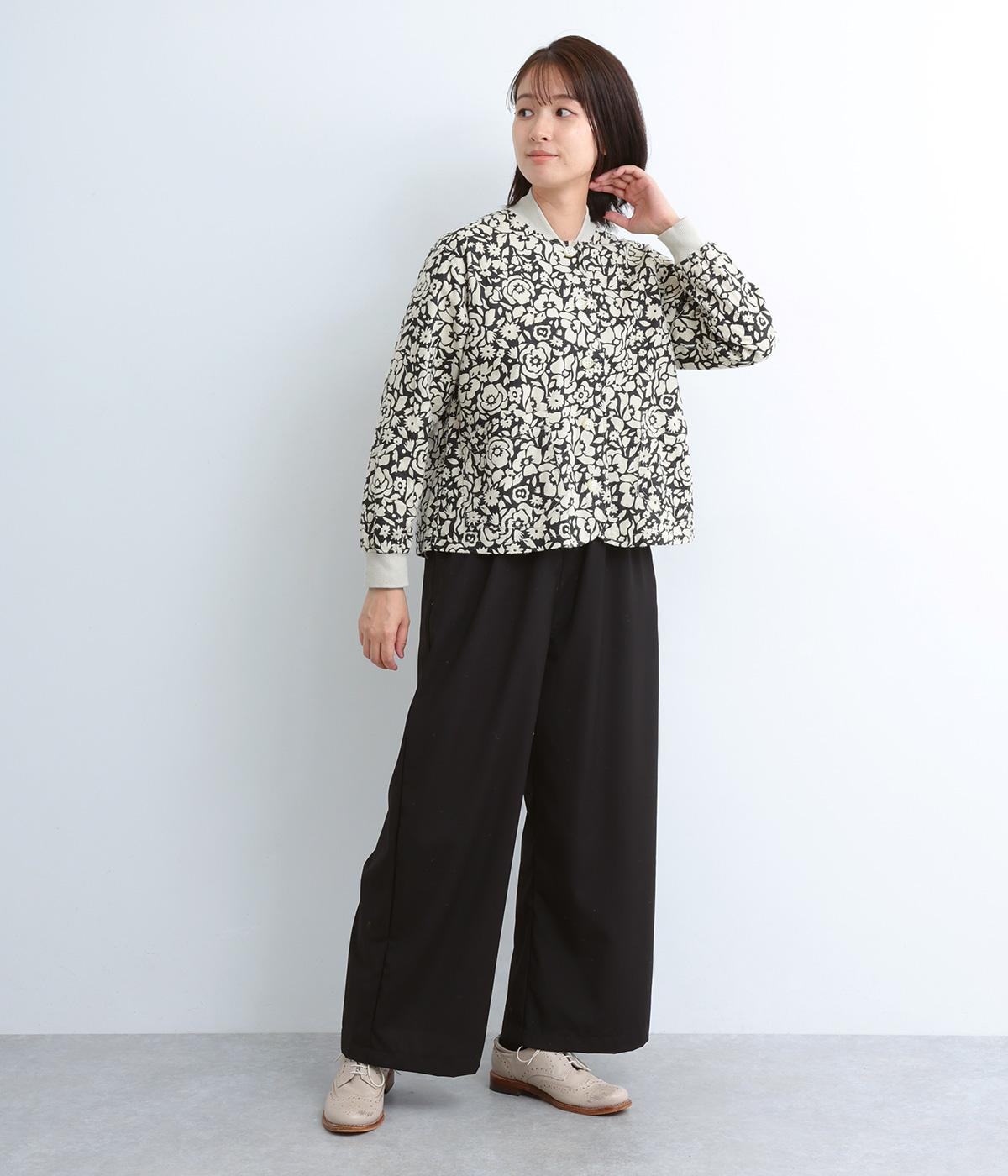 シックな雰囲気の花柄プリントが目をひくワークジャケットです。首元・袖口のリブや前面のポケットがカジュアル感を演出し、ほどよい抜け感をプラス。短めの丈でどんなボトムとも相性がよく、幅広いコーディネートに活躍します。