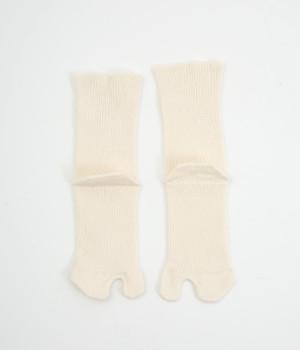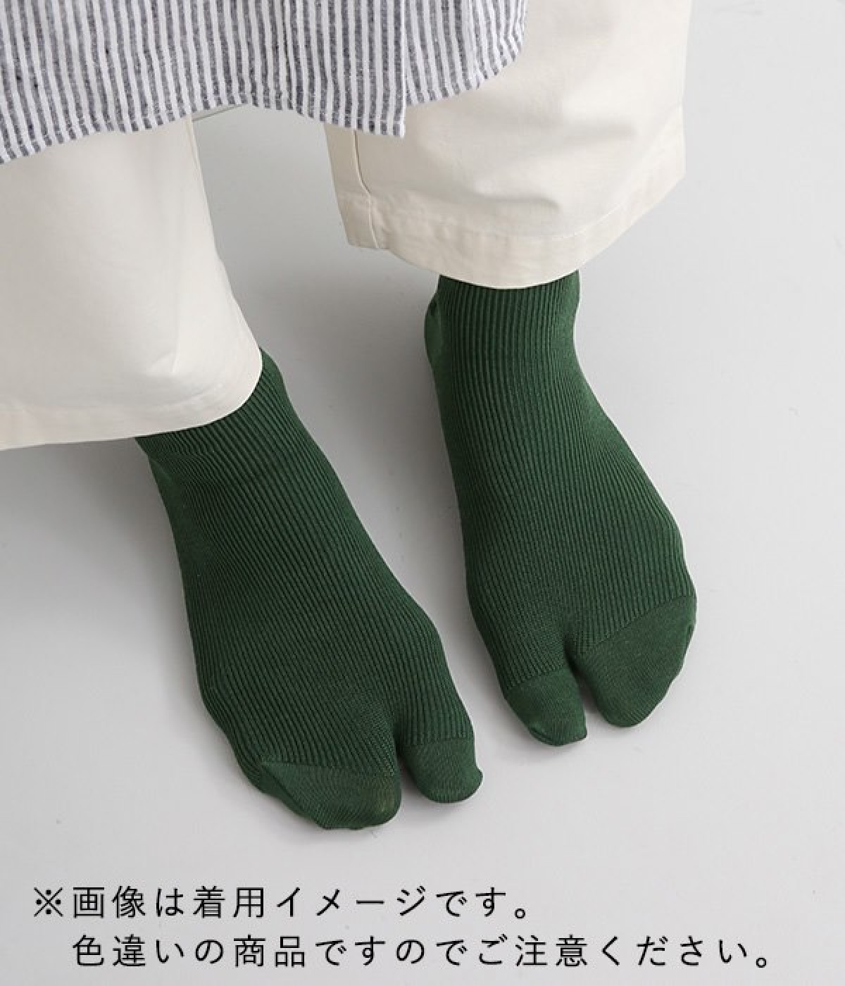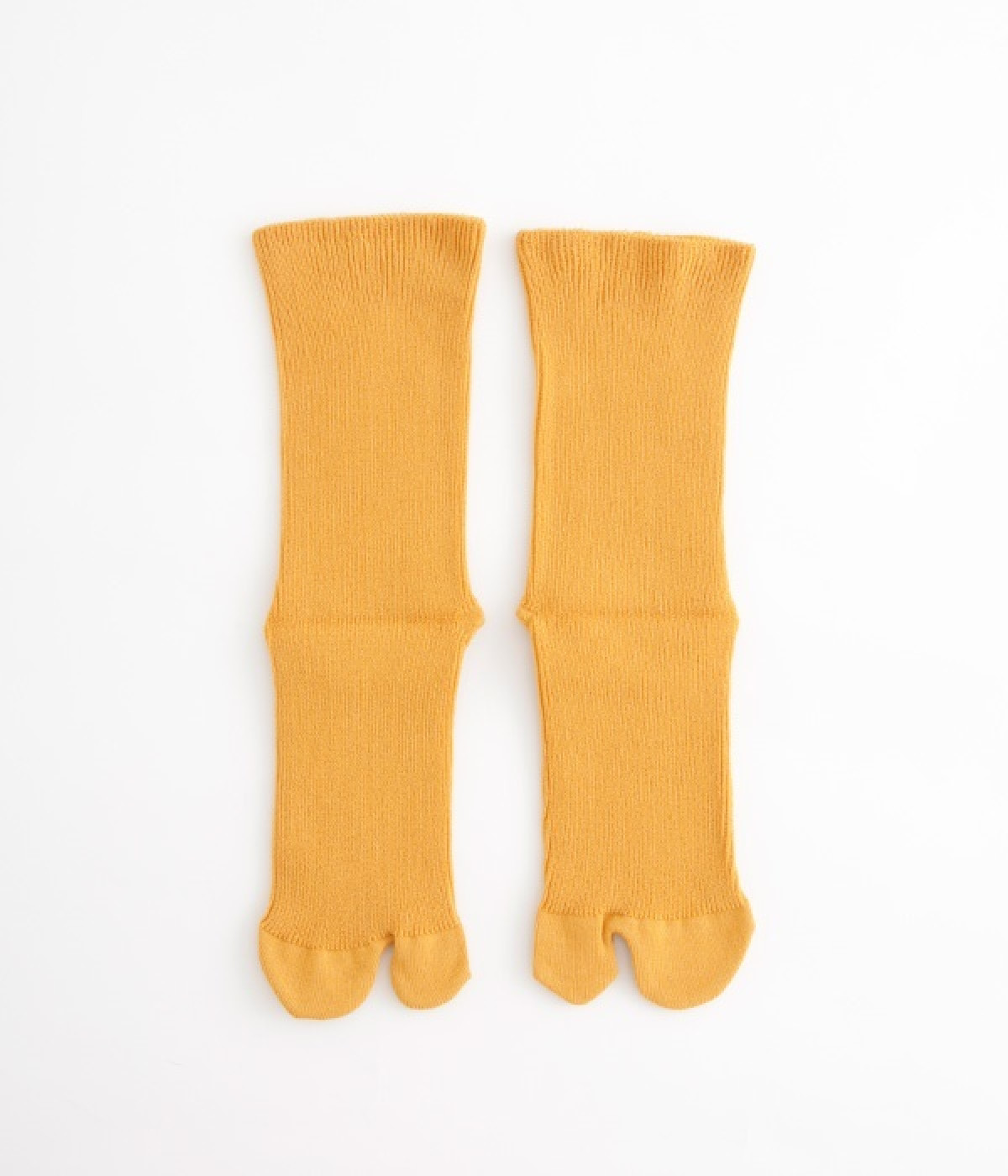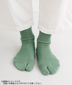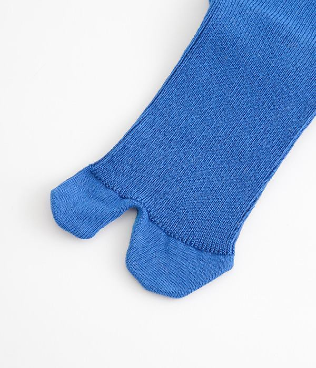 伸縮性があってフィット感も抜群、シャリのある爽やかな履き心地が特徴のギザコットンを使用したリブ編みソックスです。親指と他4本の指に分かれた足袋ソックスは、歩く時に地面をしっかりと踏むことで血行が促され、冷え性改善にも繋がります。また外反母趾や扁平足の対策にも最適で、ムレにくい特性もあります。履き口は切り替えのないフラットな形状なので、足元をスッキリと見せてくれるのも嬉しいポイントです。
