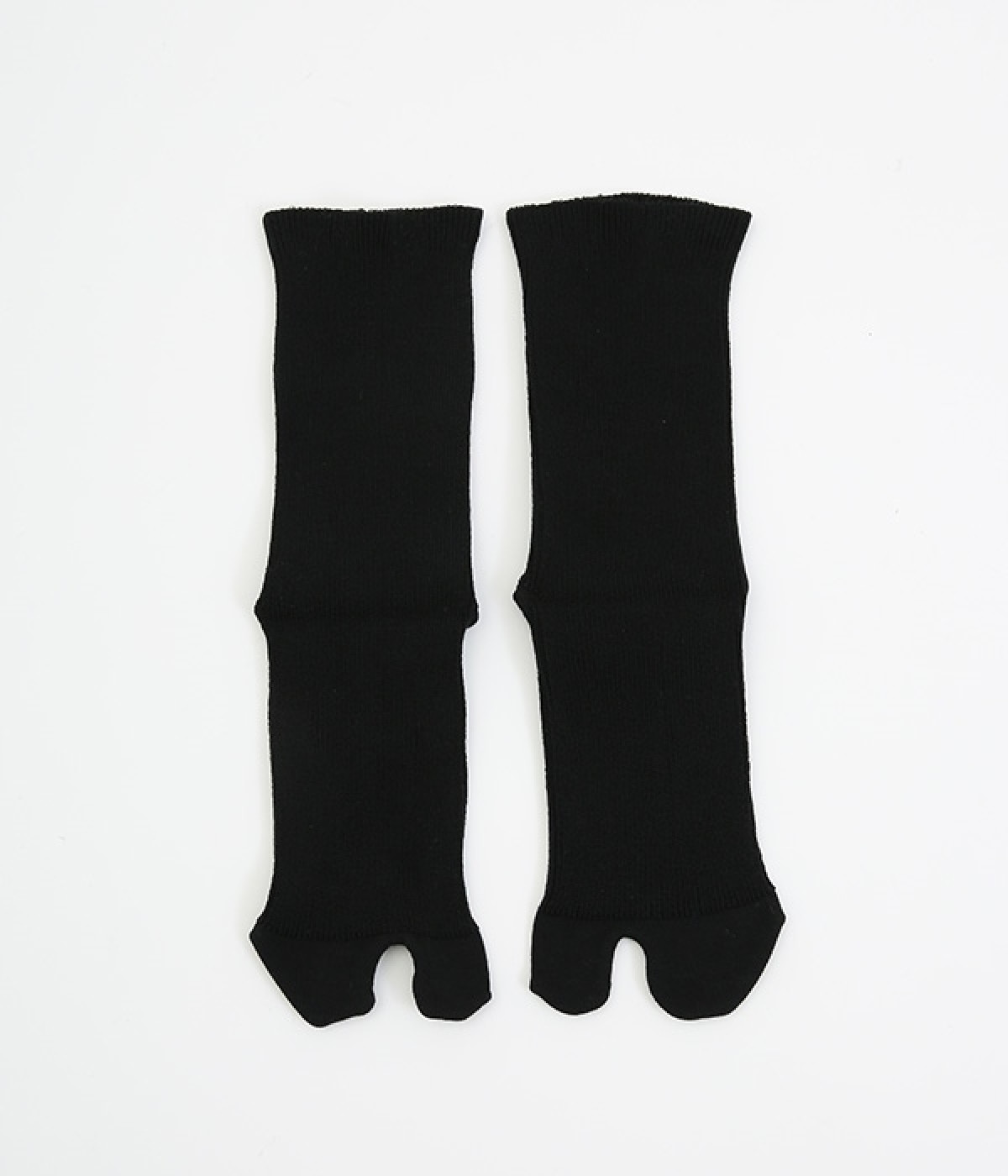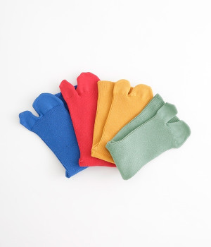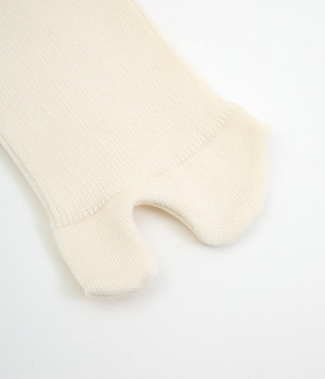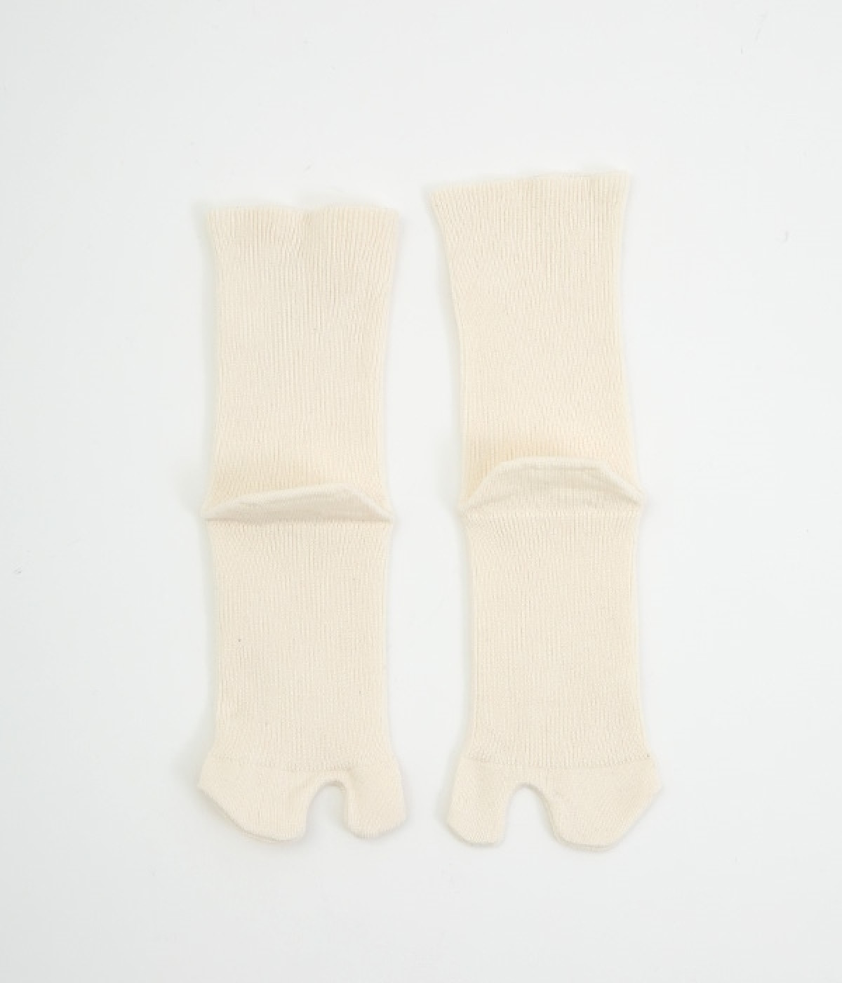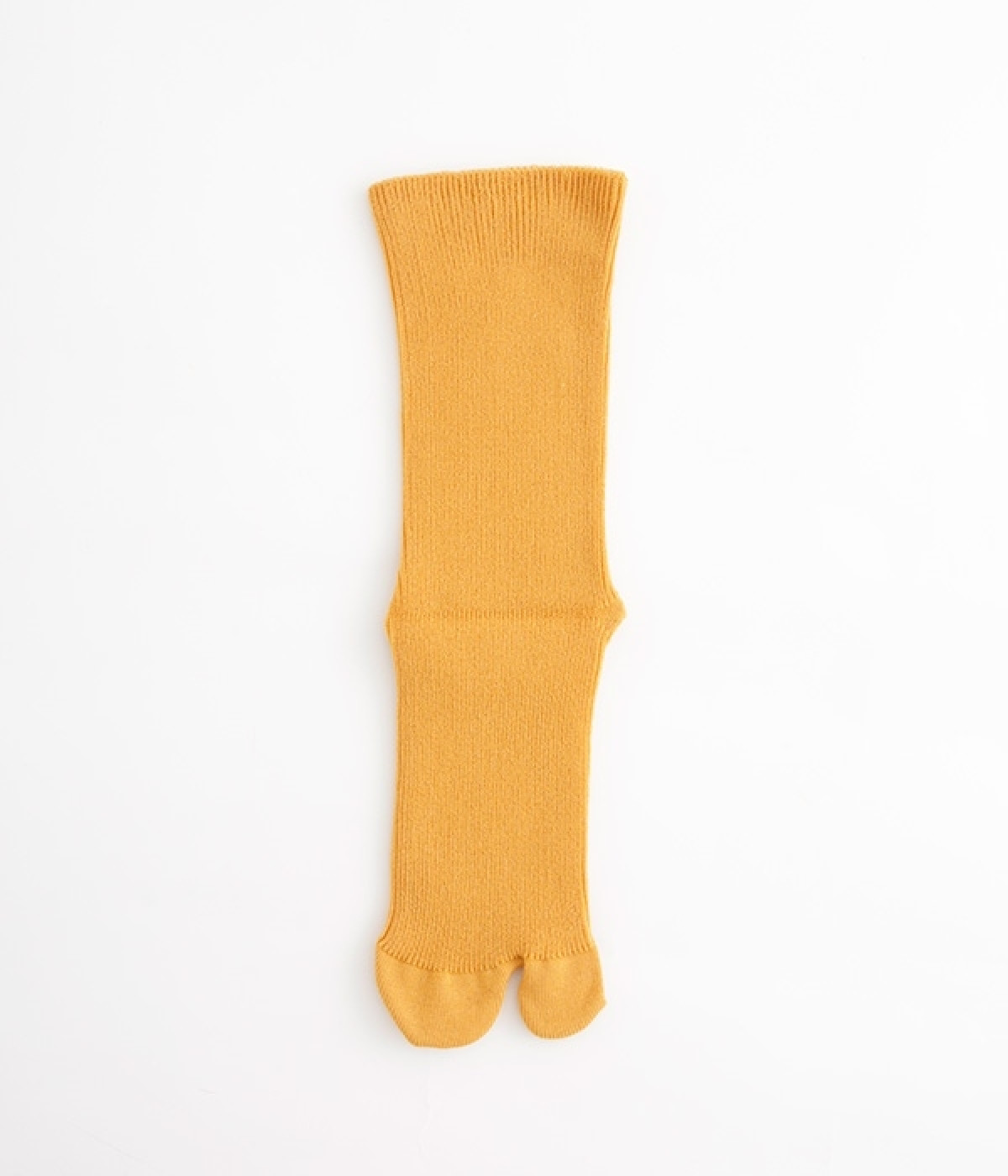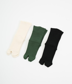 伸縮性があってフィット感も抜群、シャリのある爽やかな履き心地が特徴のギザコットンを使用したリブ編みソックスです。親指と他4本の指に分かれた足袋ソックスは、歩く時に地面をしっかりと踏むことで血行が促され、冷え性改善にも繋がります。また外反母趾や扁平足の対策にも最適で、ムレにくい特性もあります。履き口は切り替えのないフラットな形状なので、足元をスッキリと見せてくれるのも嬉しいポイントです。