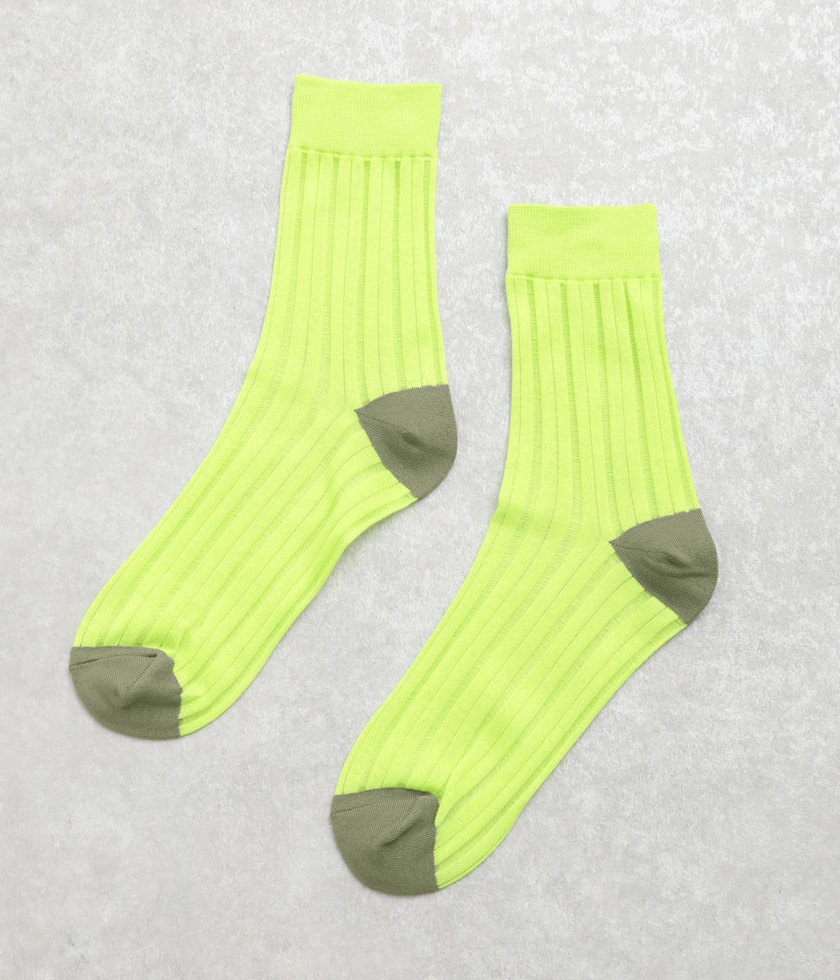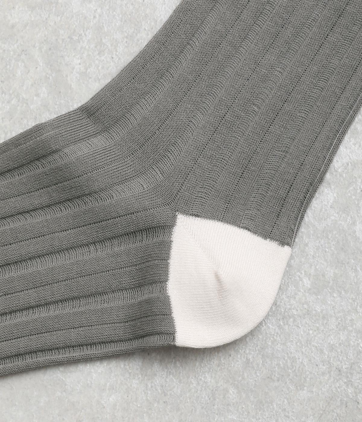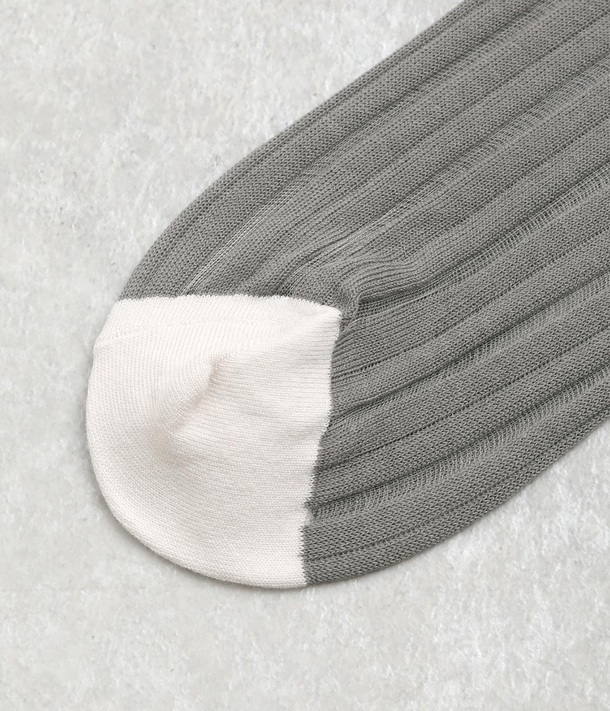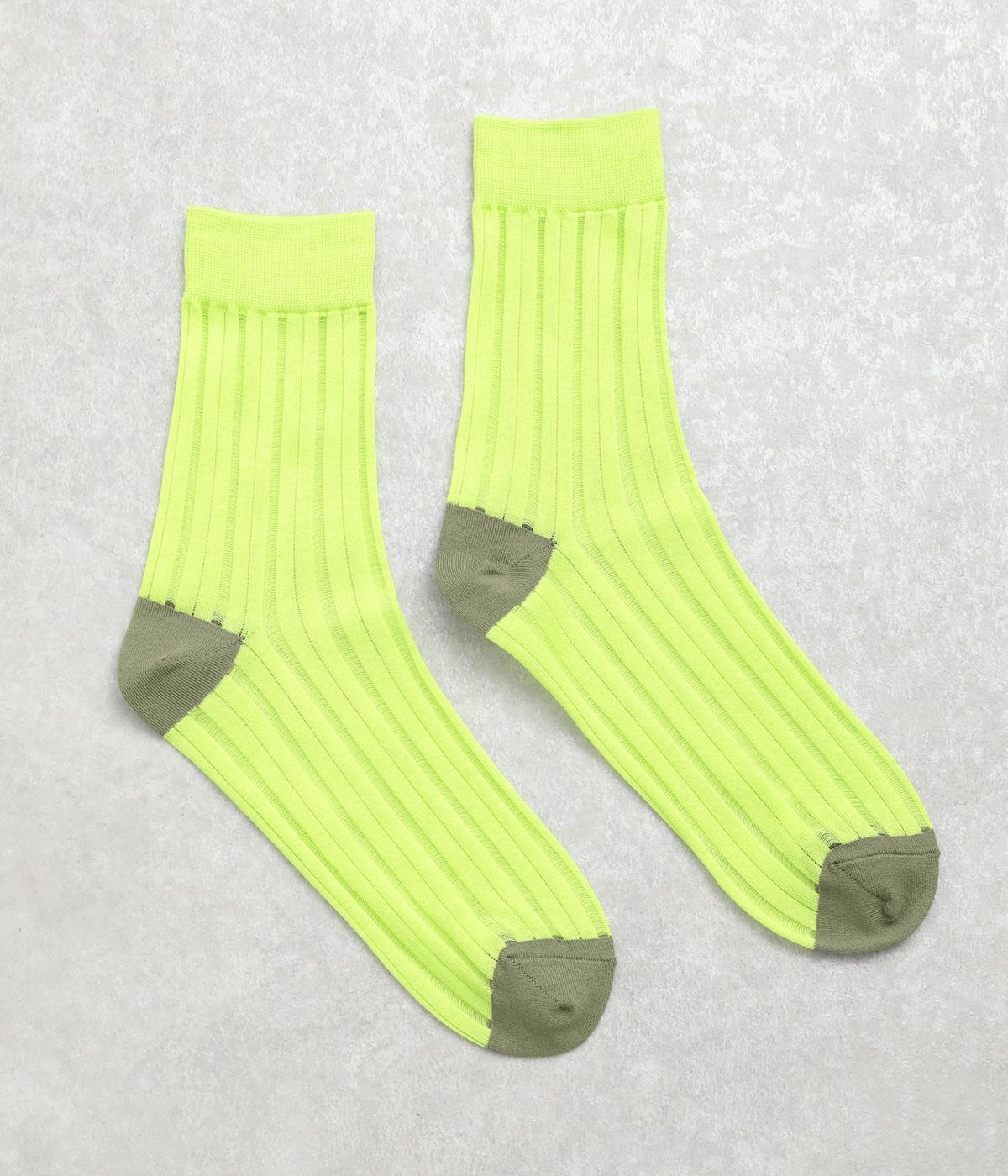 透け感のあるストライプ柄が大人のカジュアルスタイルを盛り上げる上質なソックス。つま先とかかとをバイカラーにして、さり気なくアクセントをきかせています。デイリースタイルに取り入れやすくもワンランクアップした上品な装いに。