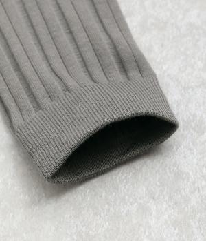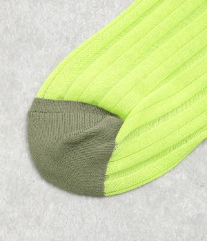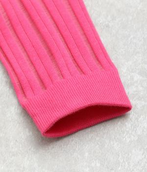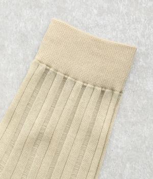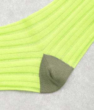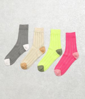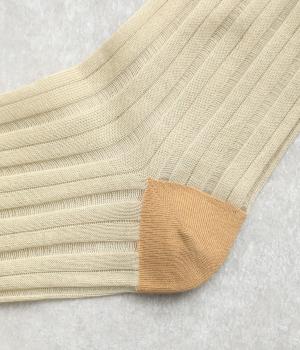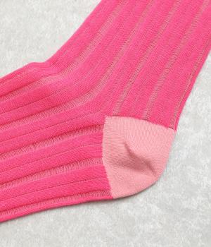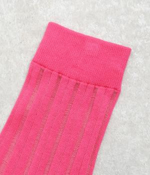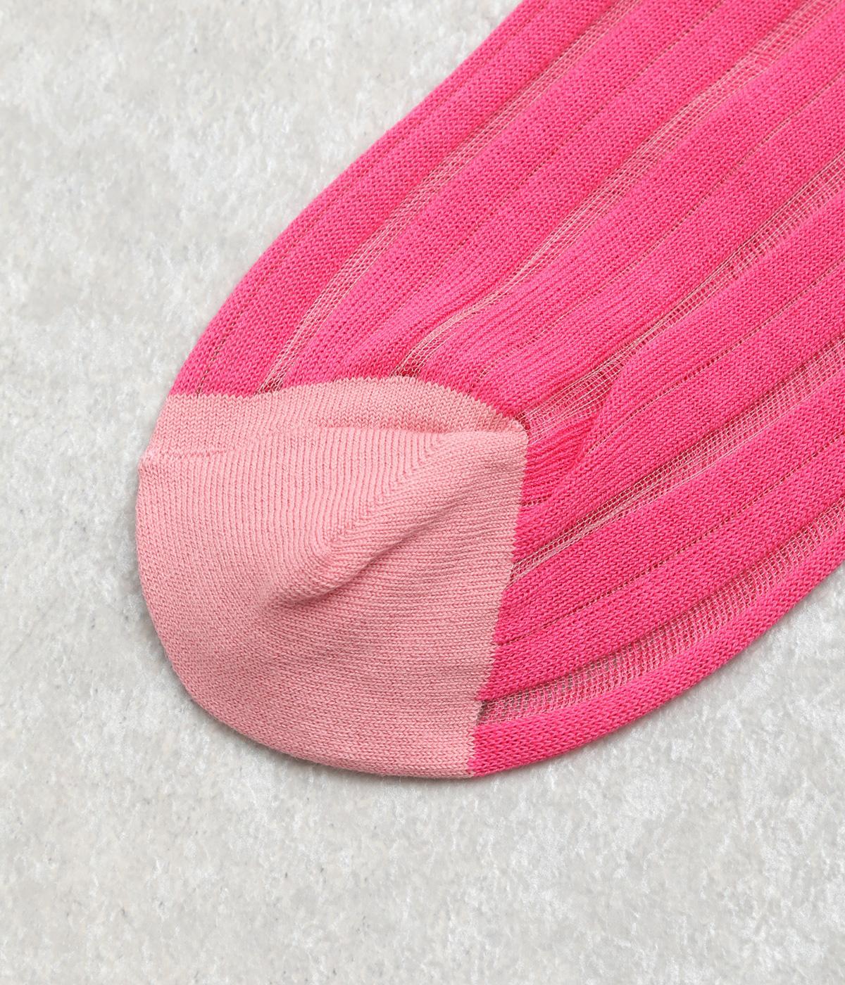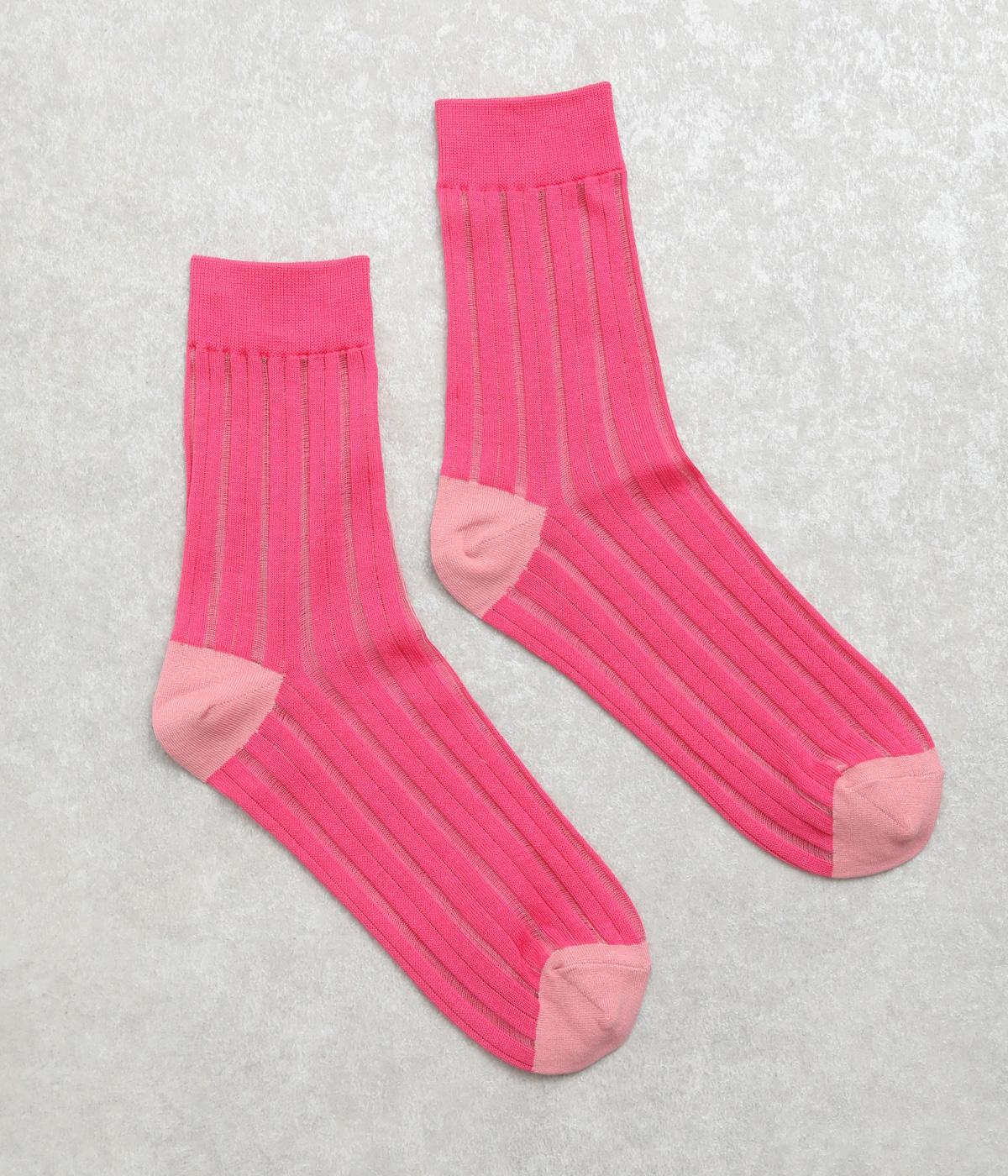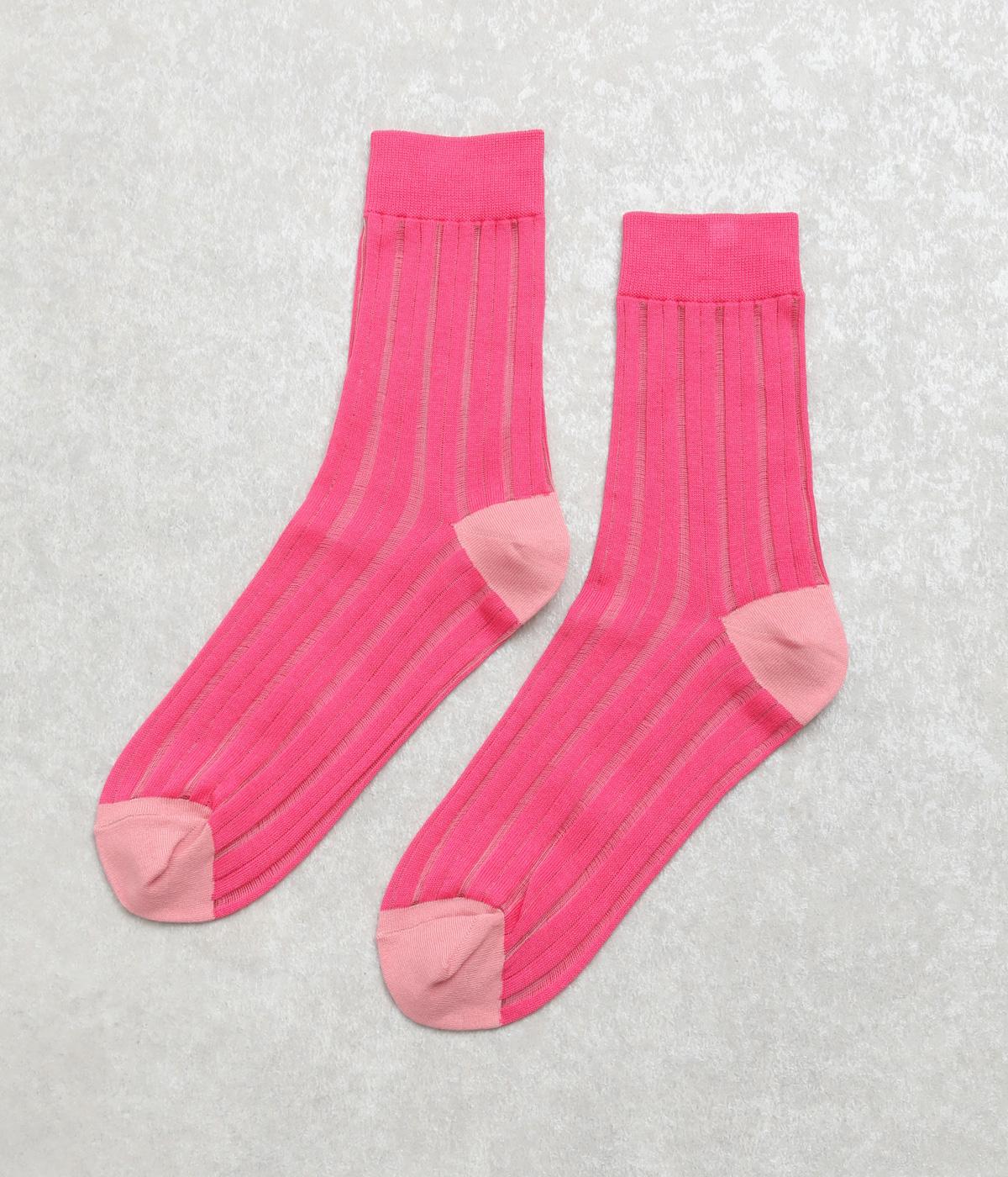 透け感のあるストライプ柄が大人のカジュアルスタイルを盛り上げる上質なソックス。つま先とかかとをバイカラーにして、さり気なくアクセントをきかせています。デイリースタイルに取り入れやすくもワンランクアップした上品な装いに。