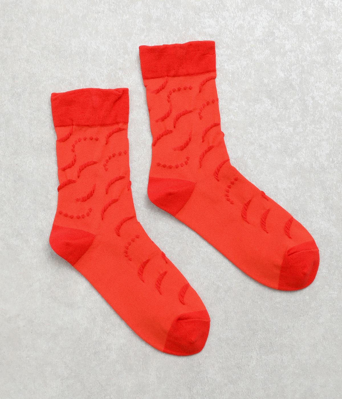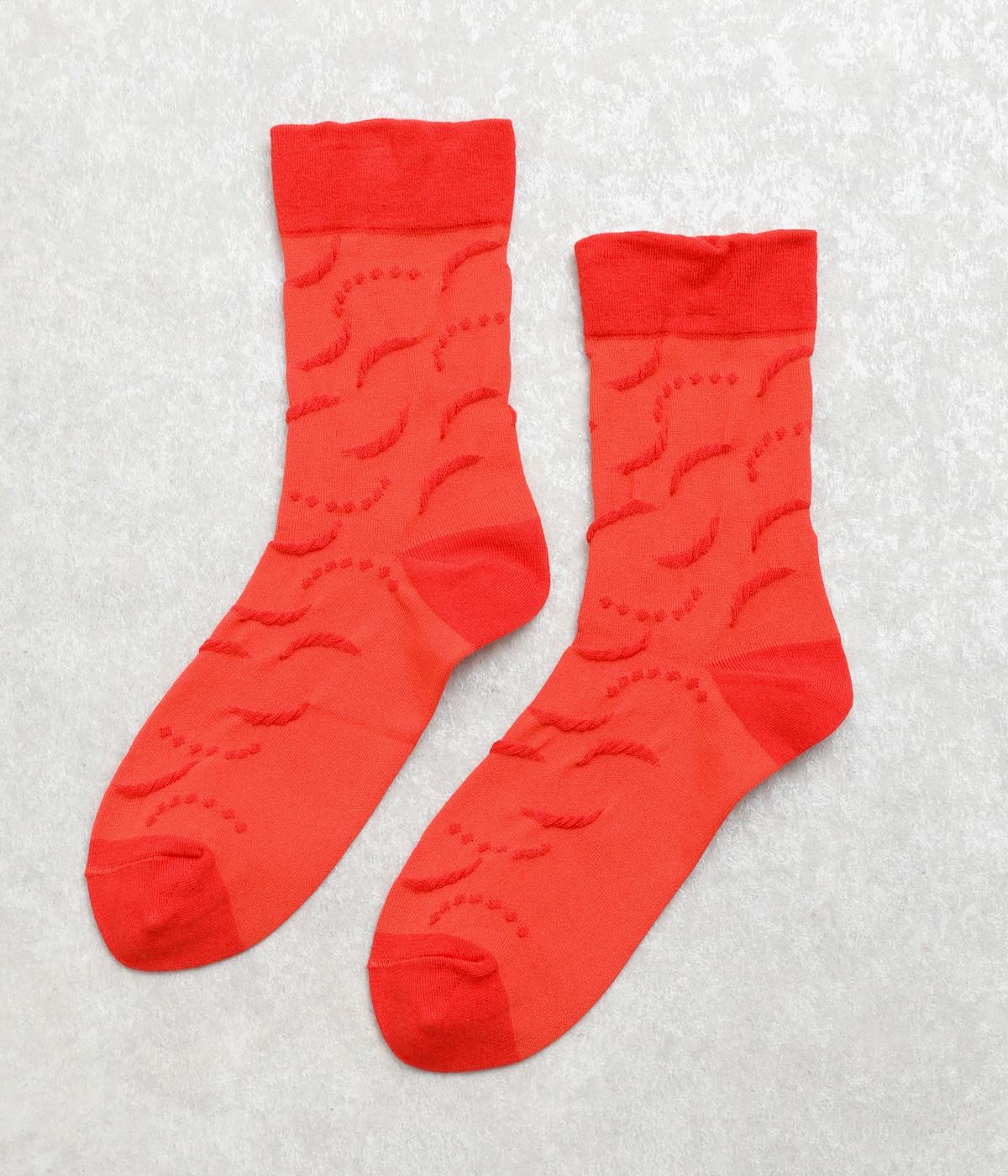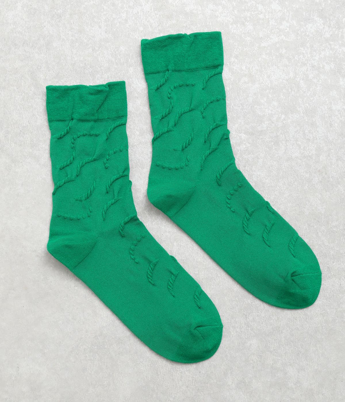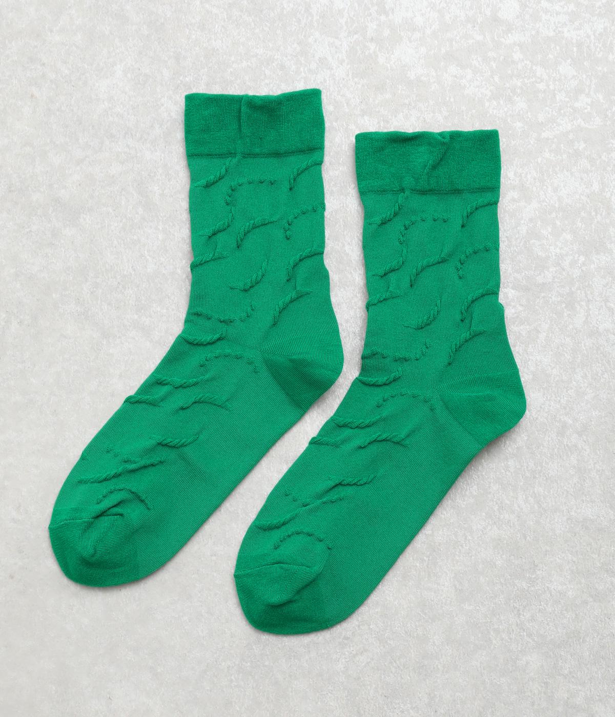 フロート編み手法で浮き出る柄を上品に表現した、足元からコーディネートを組み立てたくなるソックス。毎日はきたい心地よい肌触りに、スタイリングのポイントになるカラー使いで、色ちがいで揃えるのもおすすめ。